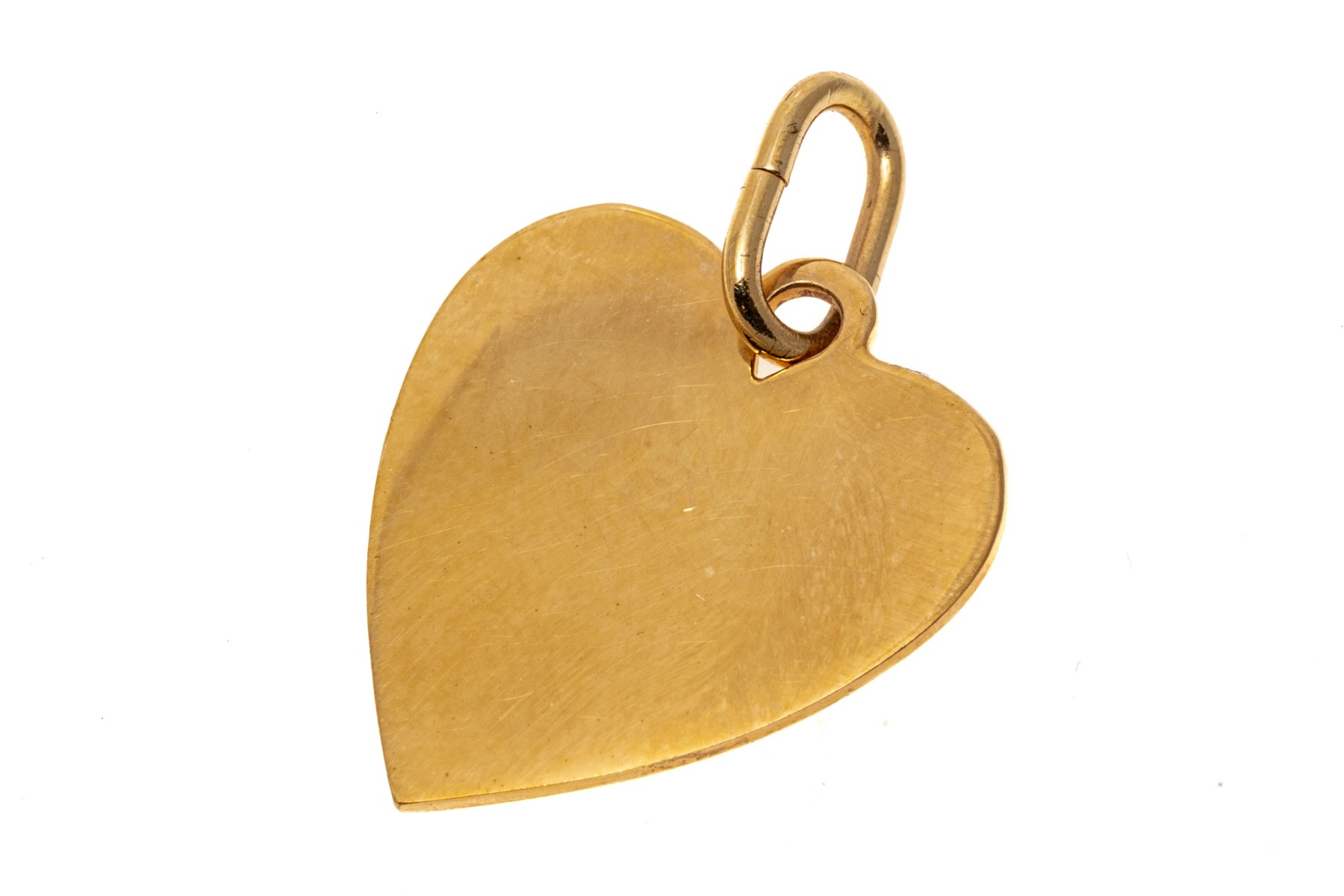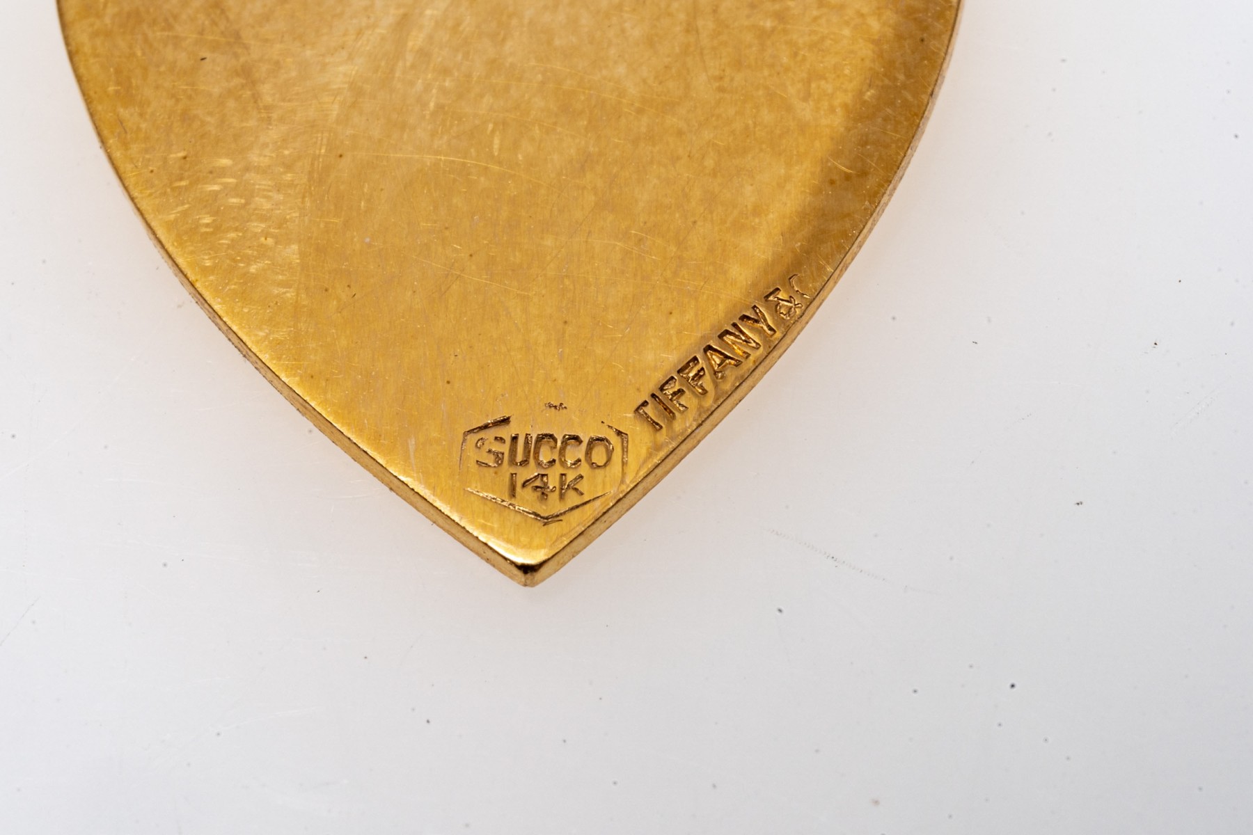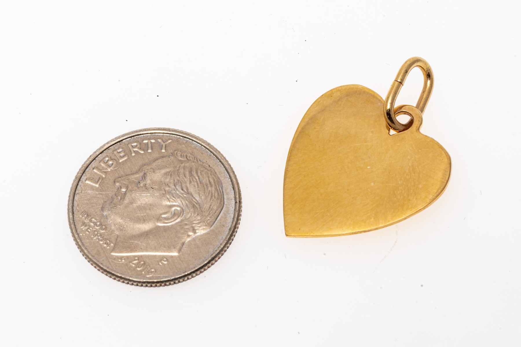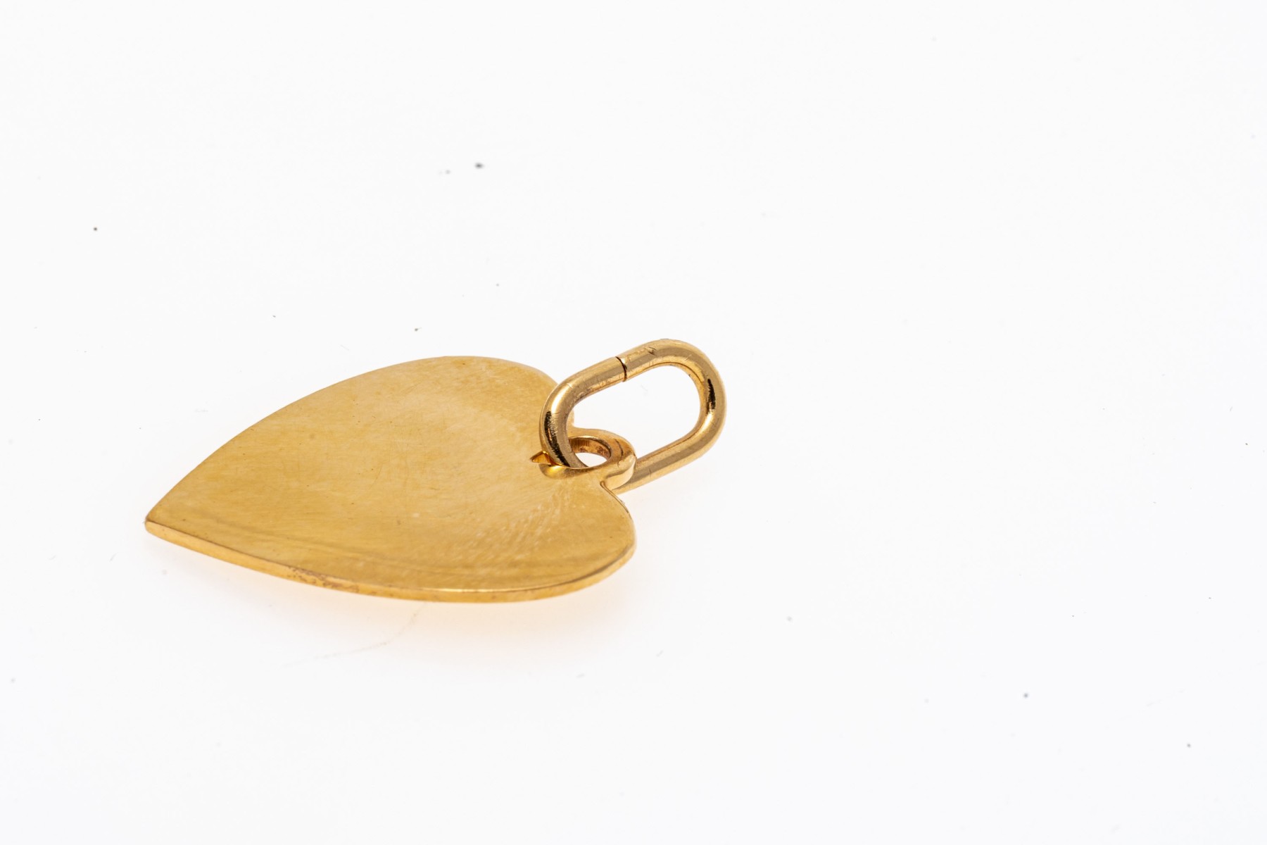 Simple 14K yellow gold heart form pendant by Tiffany & Company. This pendant has a smooth polished finish.