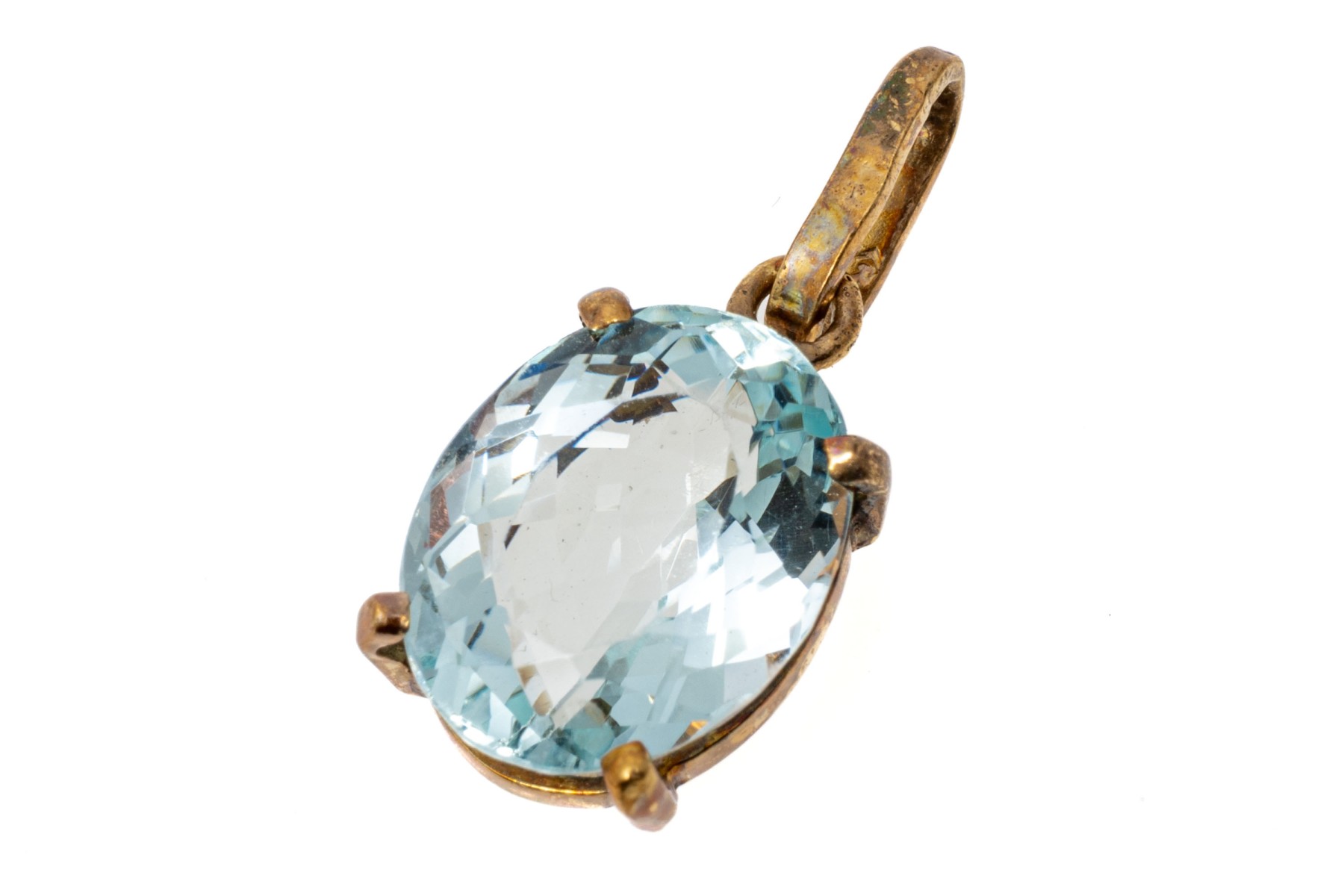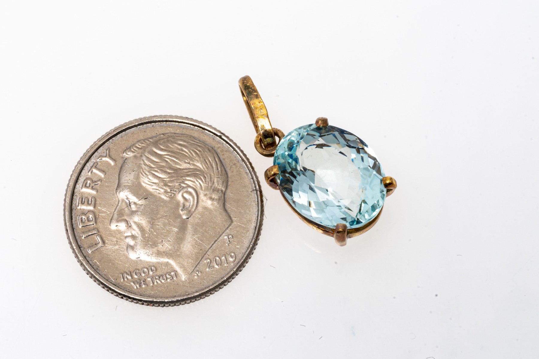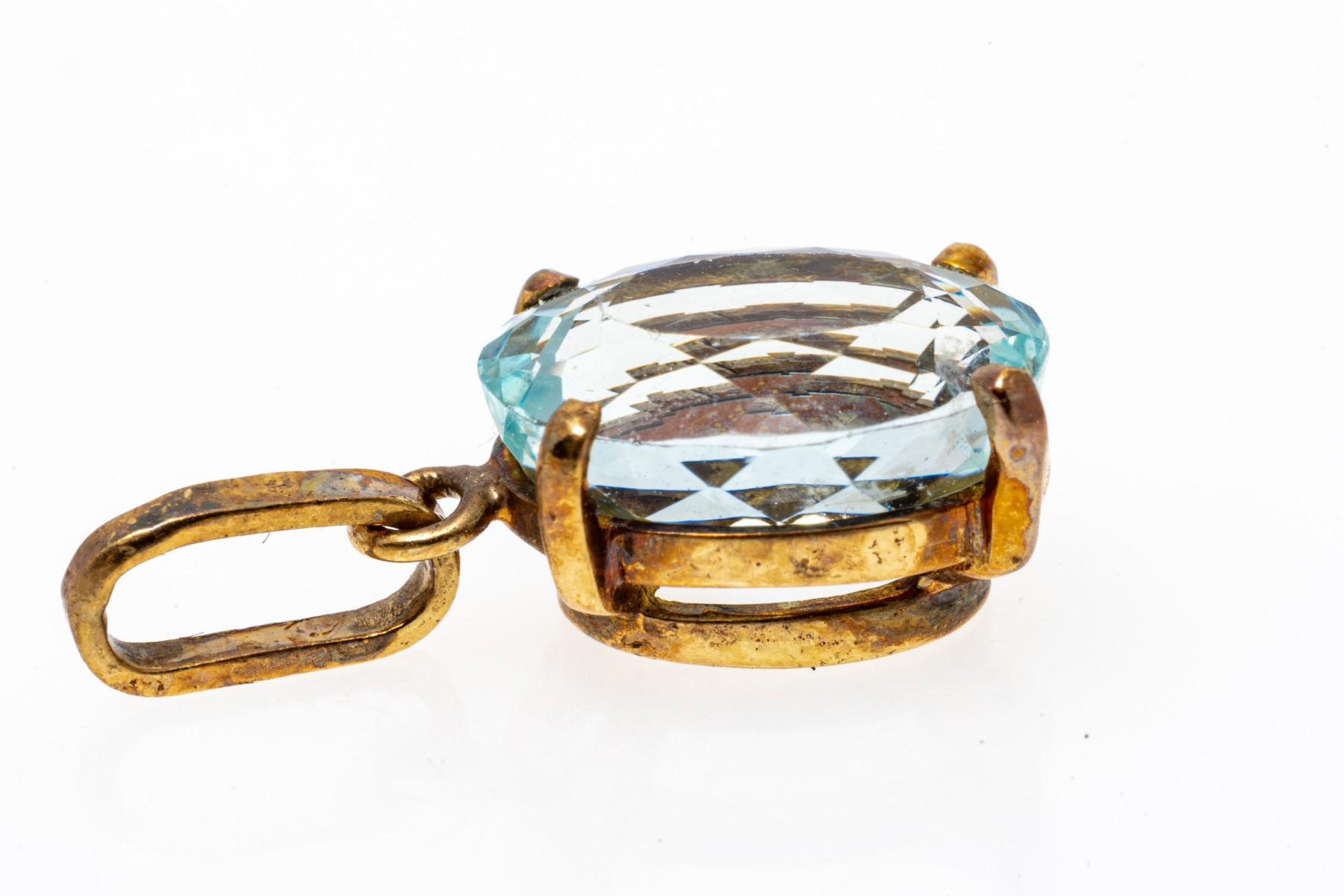 Simple 18K yellow gold pendant. Set into the pendant is a single oval cut aquamarine stone, approximately 2.78 cts.