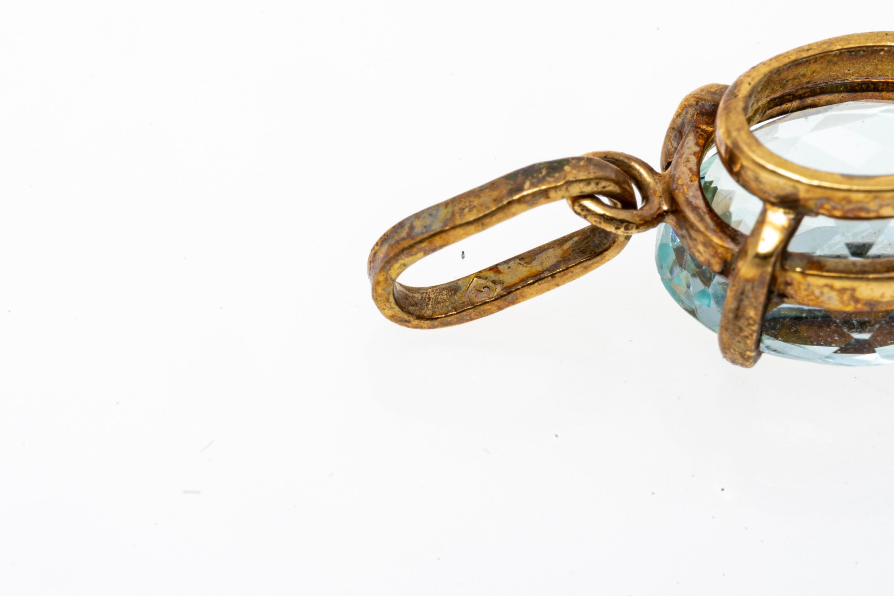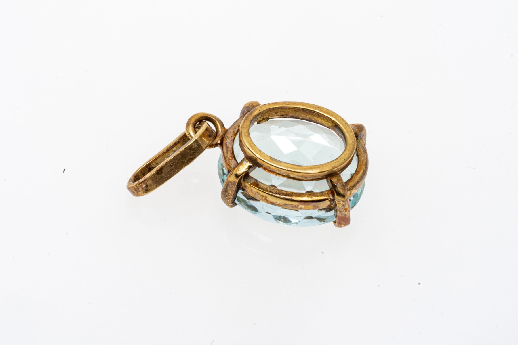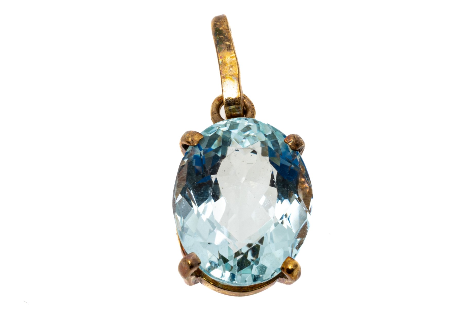Simple 18K yellow gold pendant. Set into the pendant is a single oval cut aquamarine stone, approximately 2.78 cts.