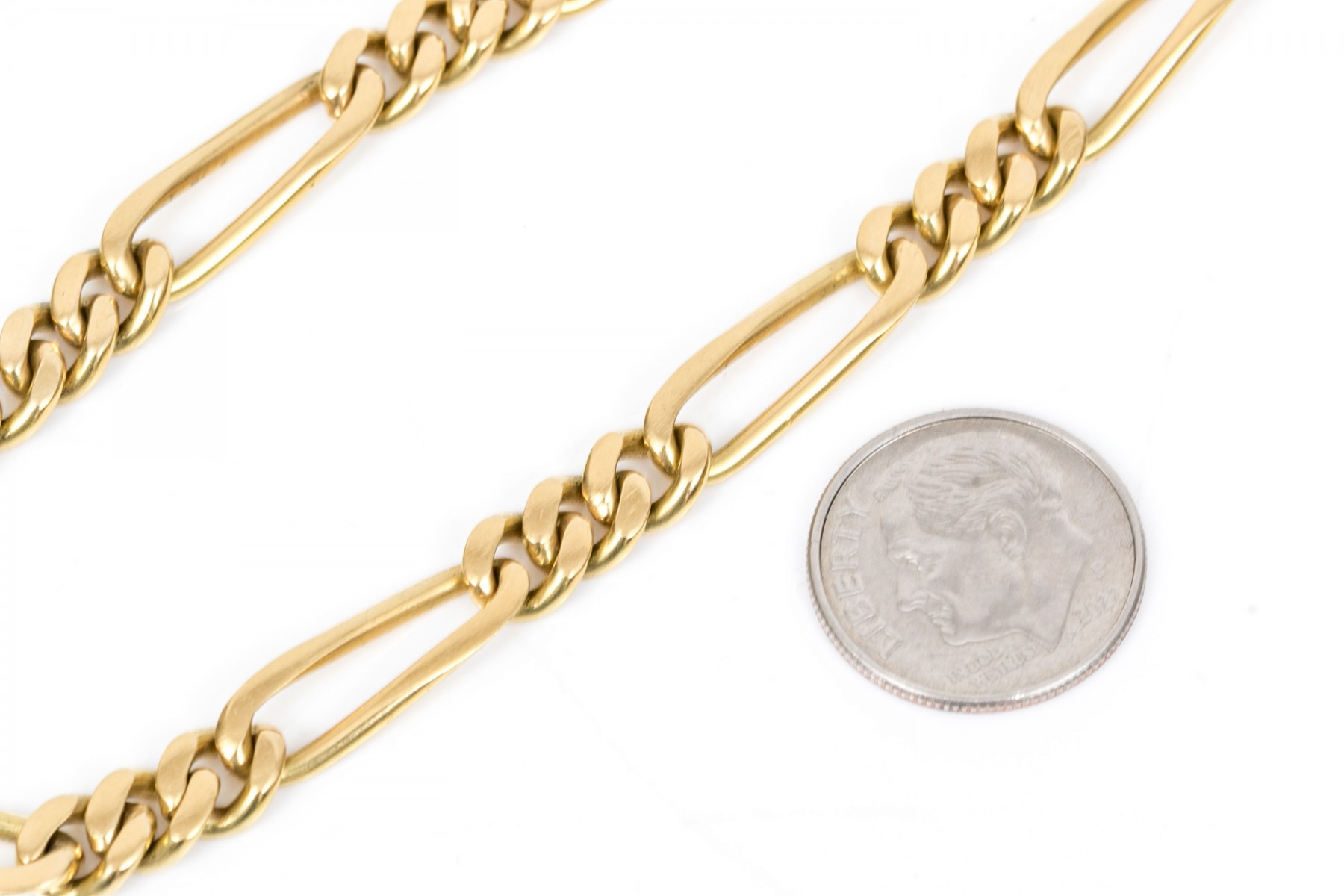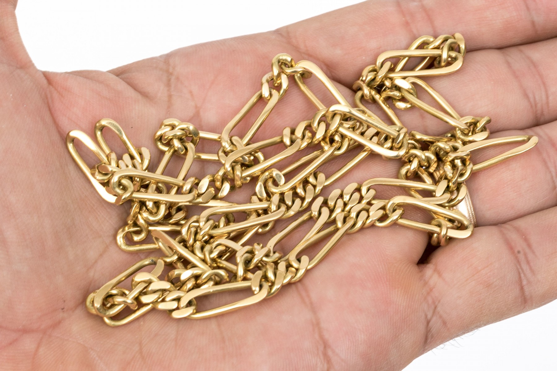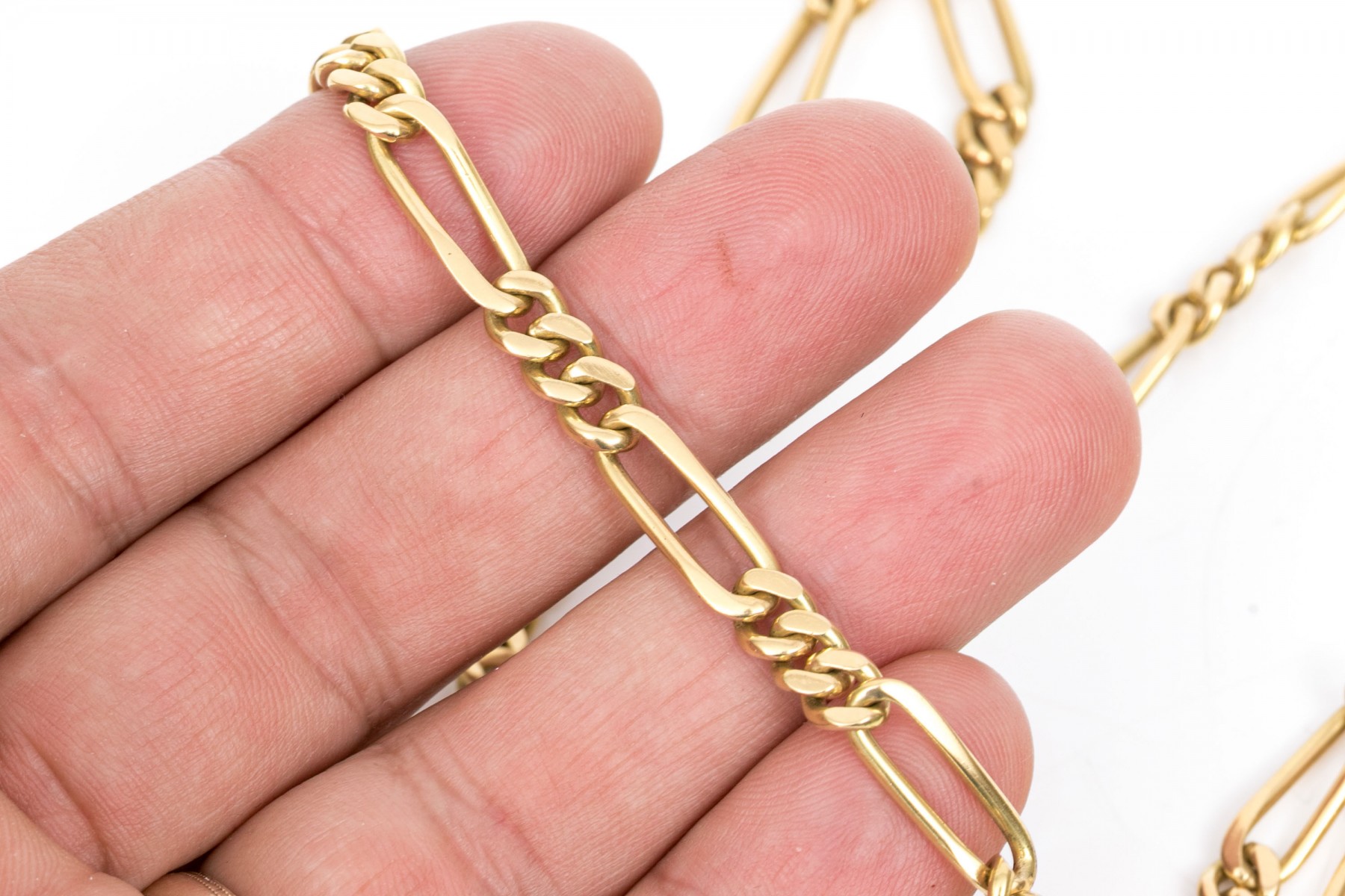 An 18K yellow gold Figaro chain link necklace. Eternity, no clasp.