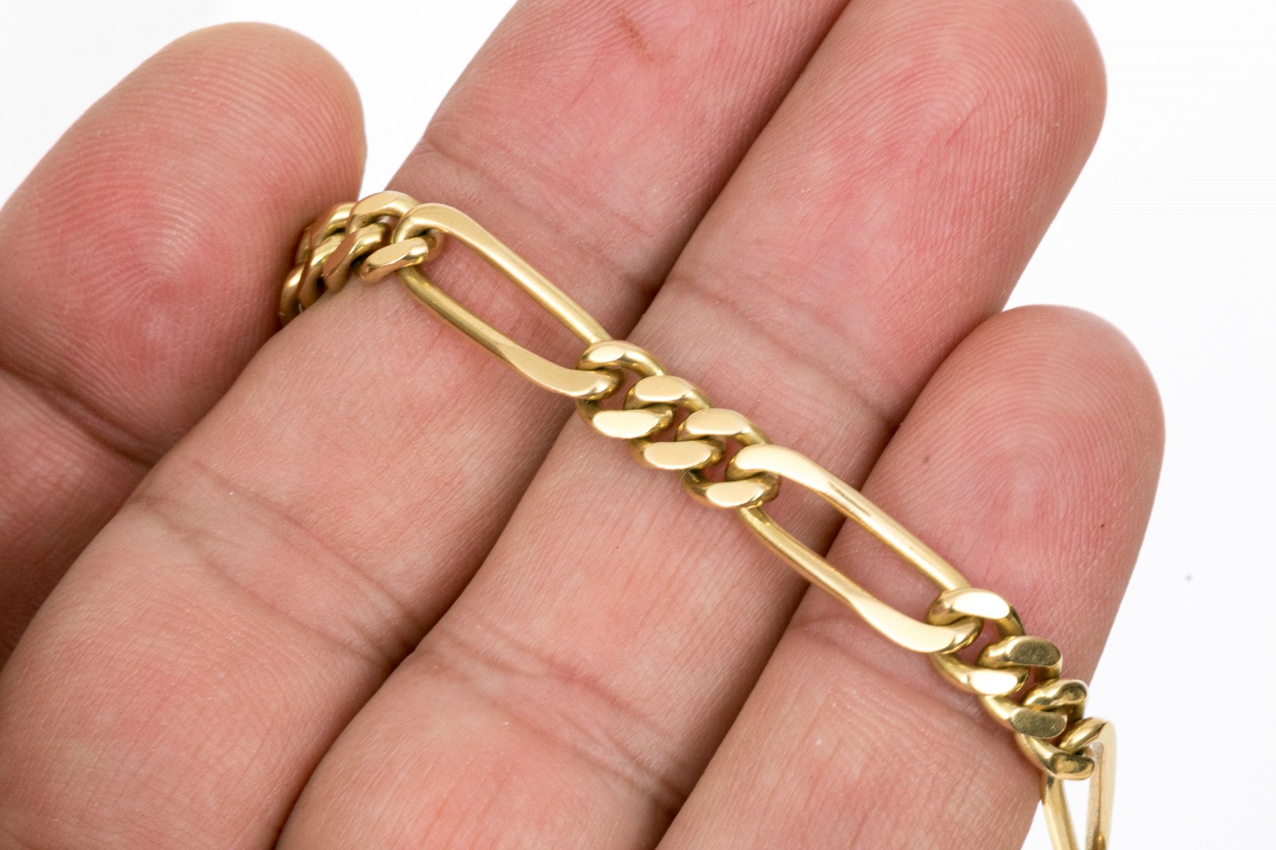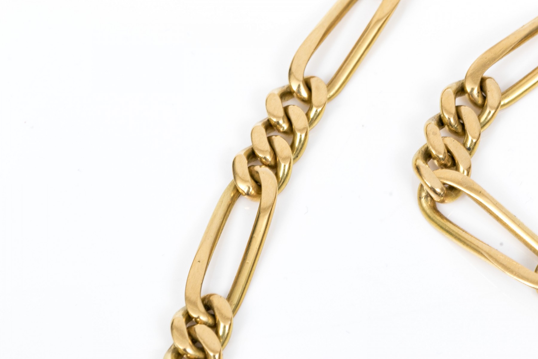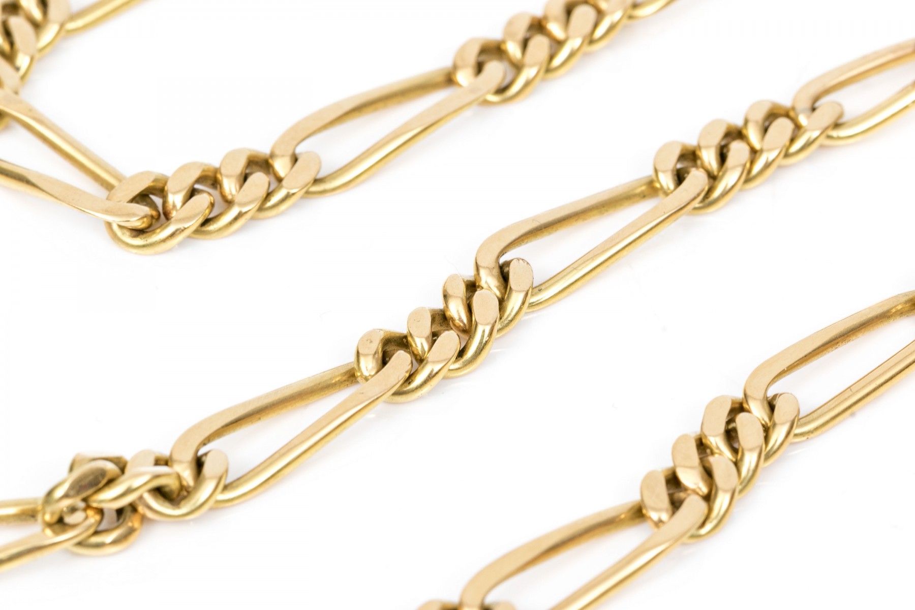 An 18K yellow gold Figaro chain link necklace. Eternity, no clasp.