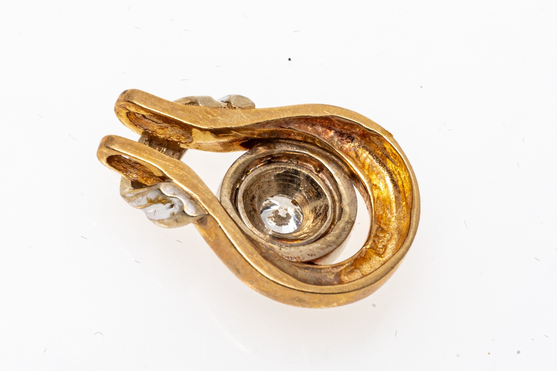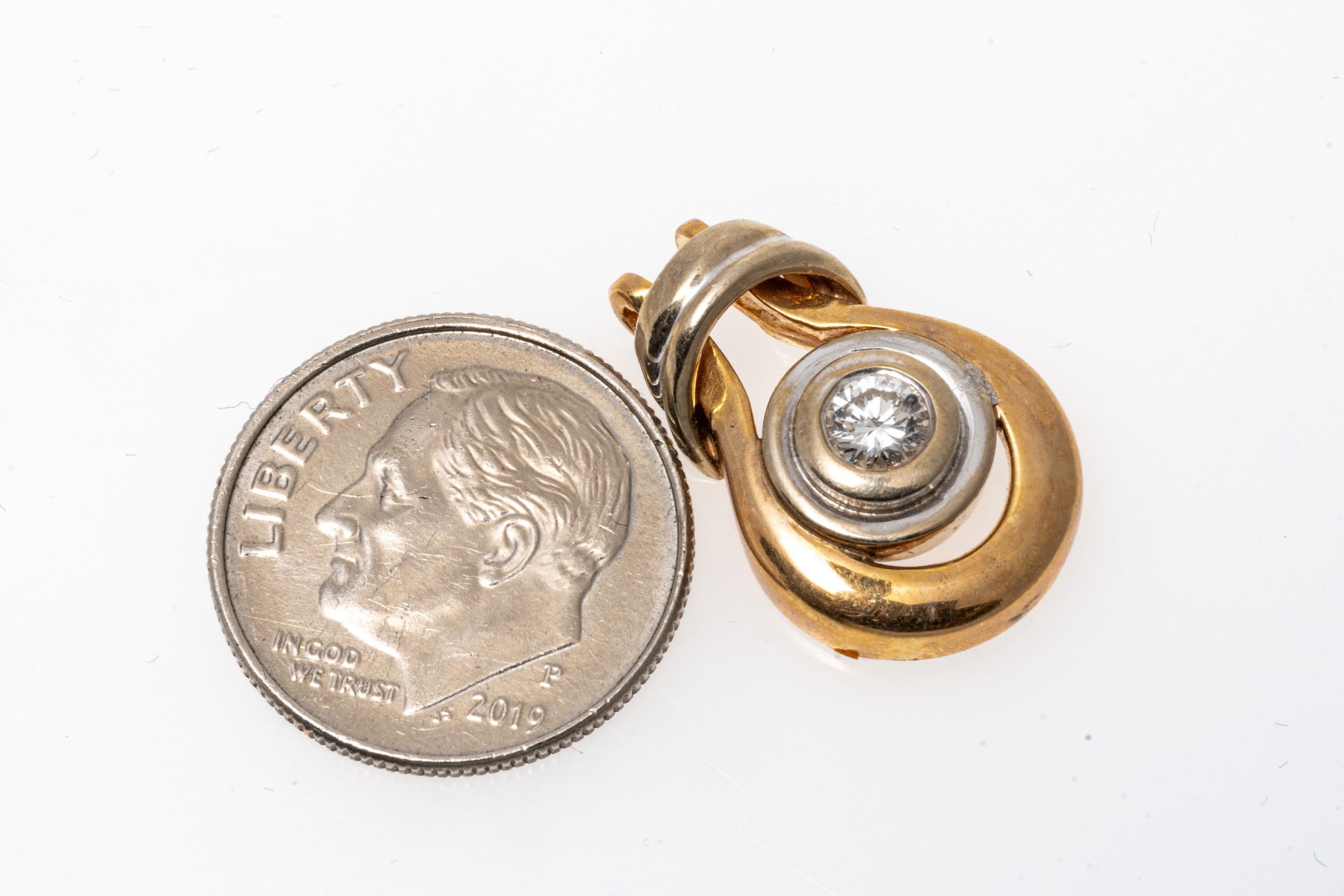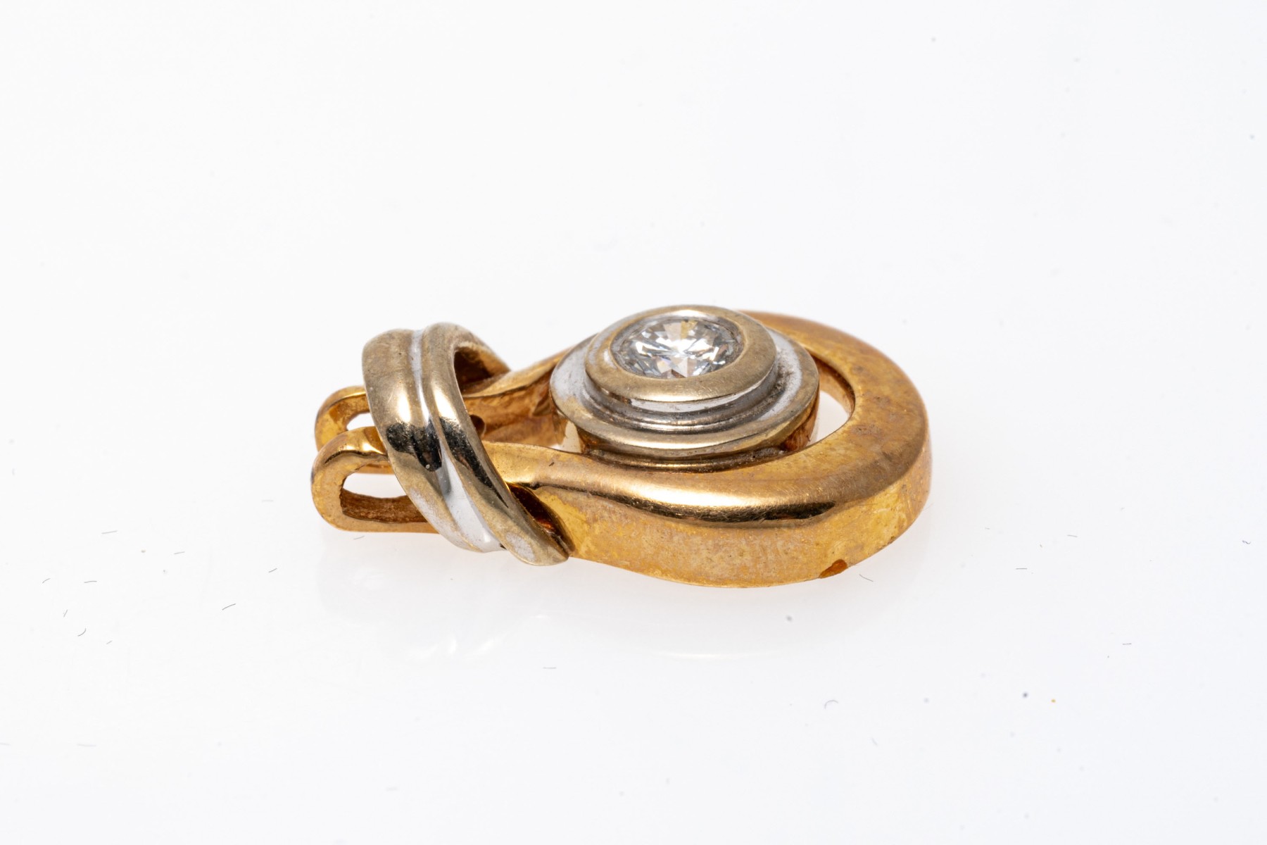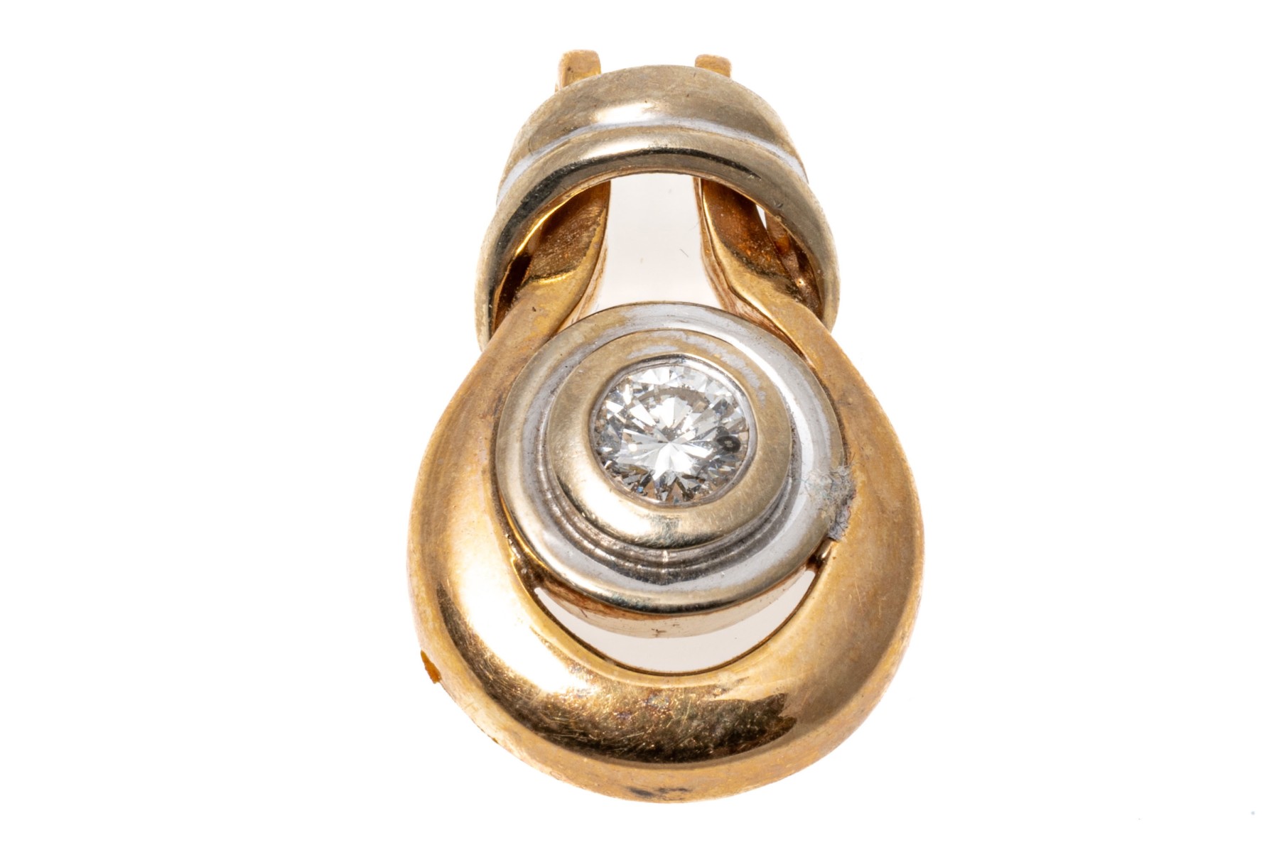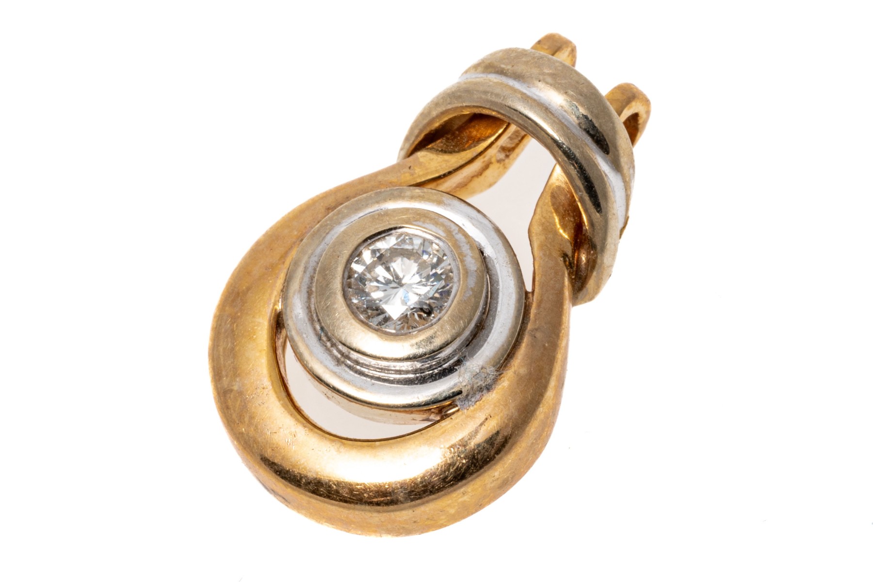 14K yellow gold pendant with white gold accent and centered setting displays a single round brilliant cut diamond, approximately 0.23 TCW.