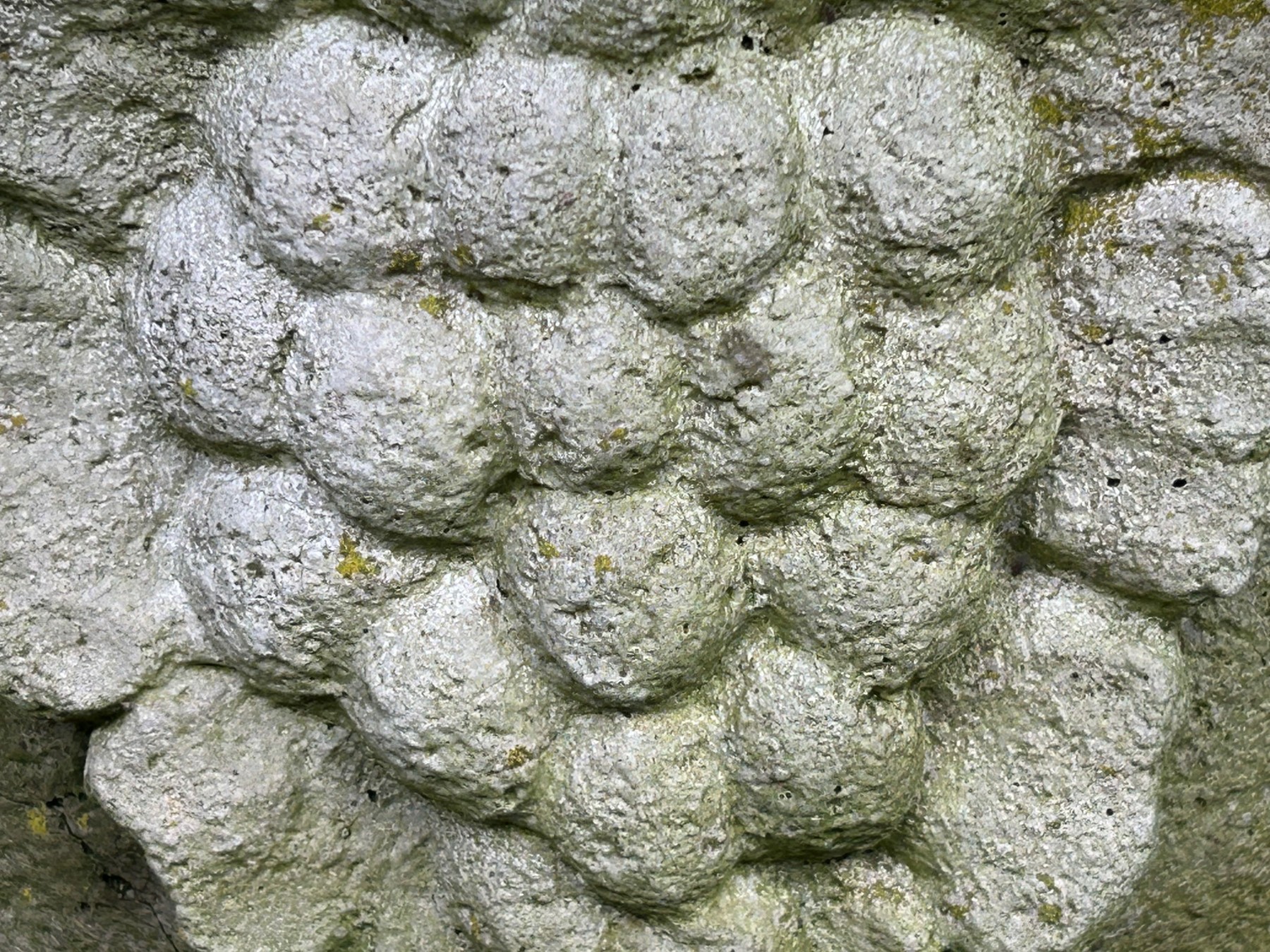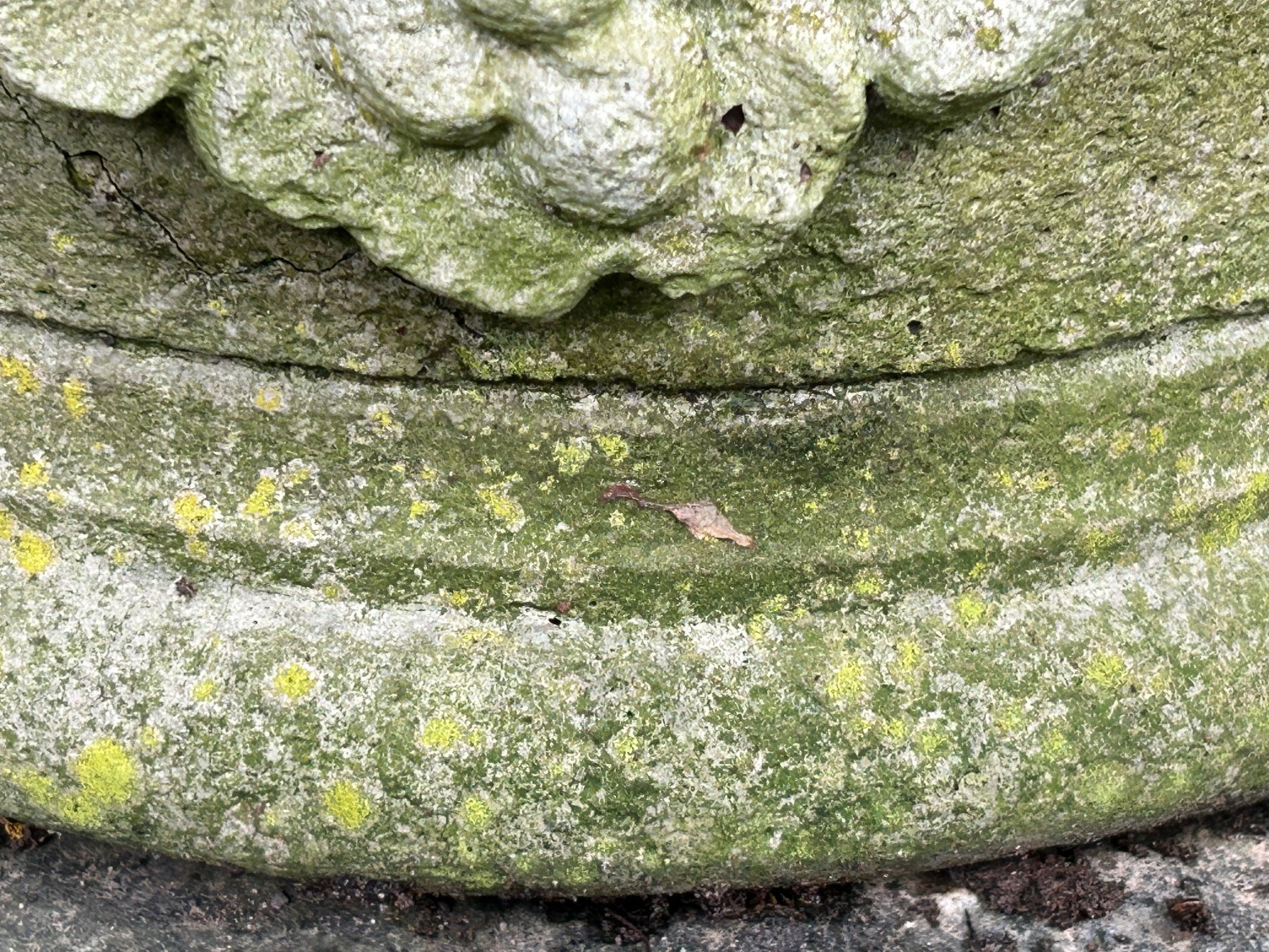 Handsomely formed with grape cluster in relief.  A nice deal of natural weathering commensurate with outdoor use and age.