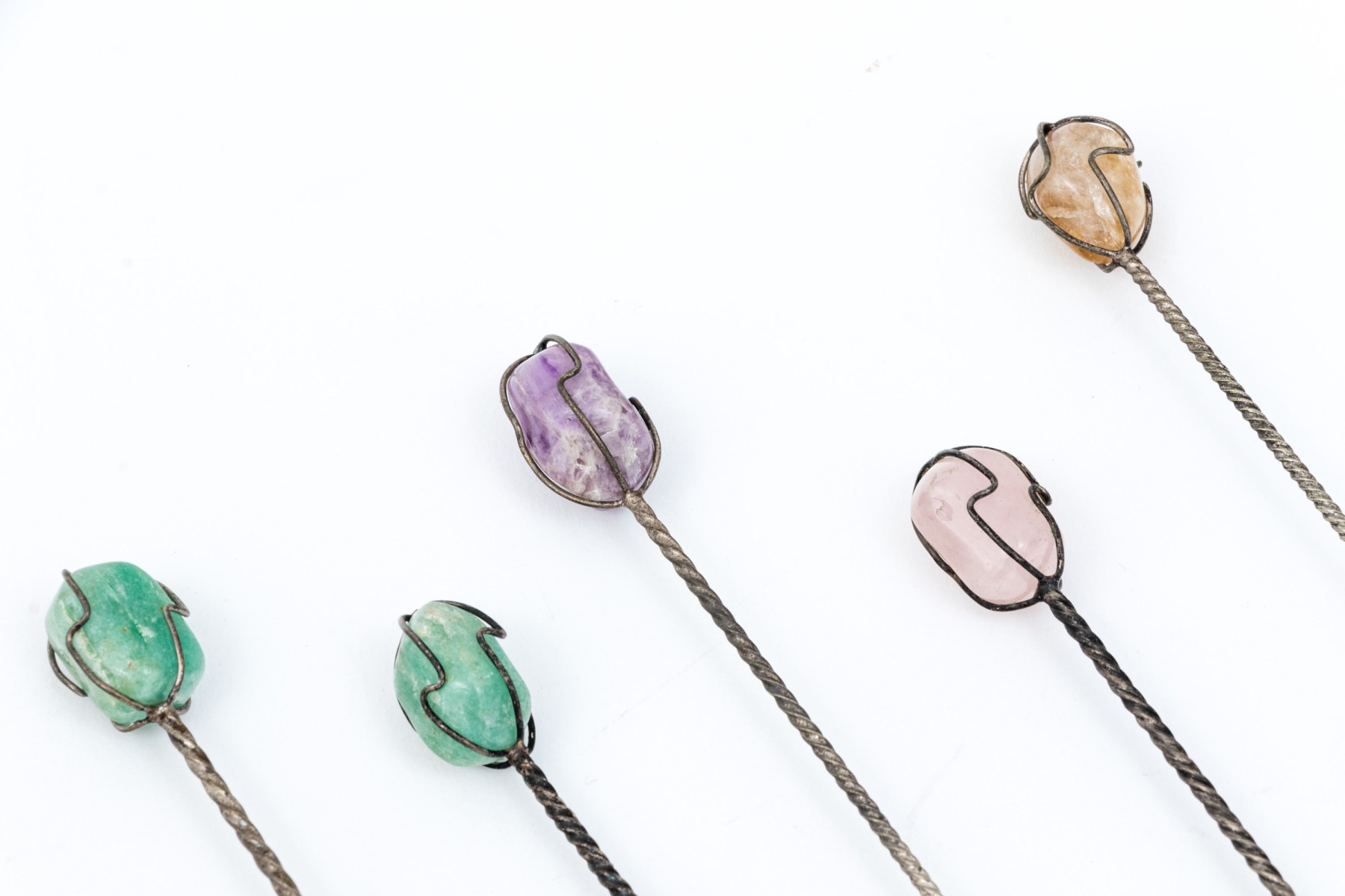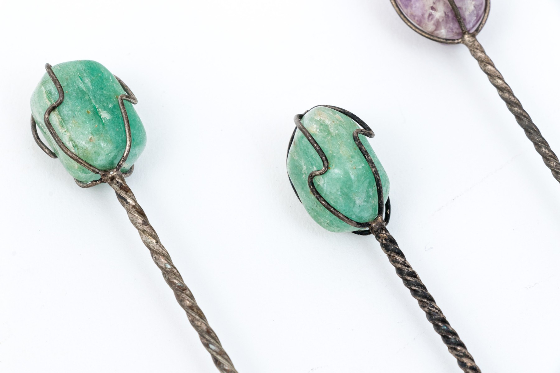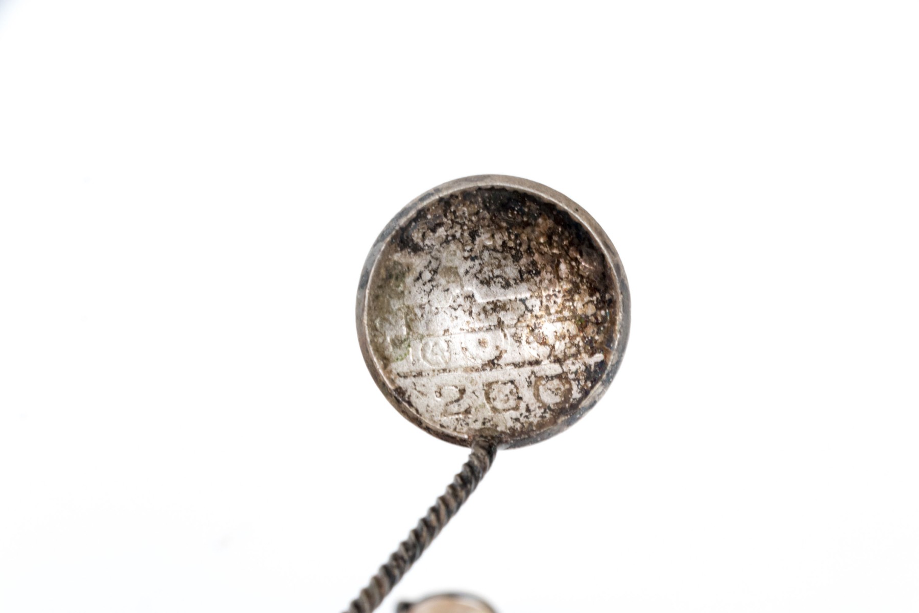 Marked 1000 reis and other coins made into spoons with colored stone ends.
