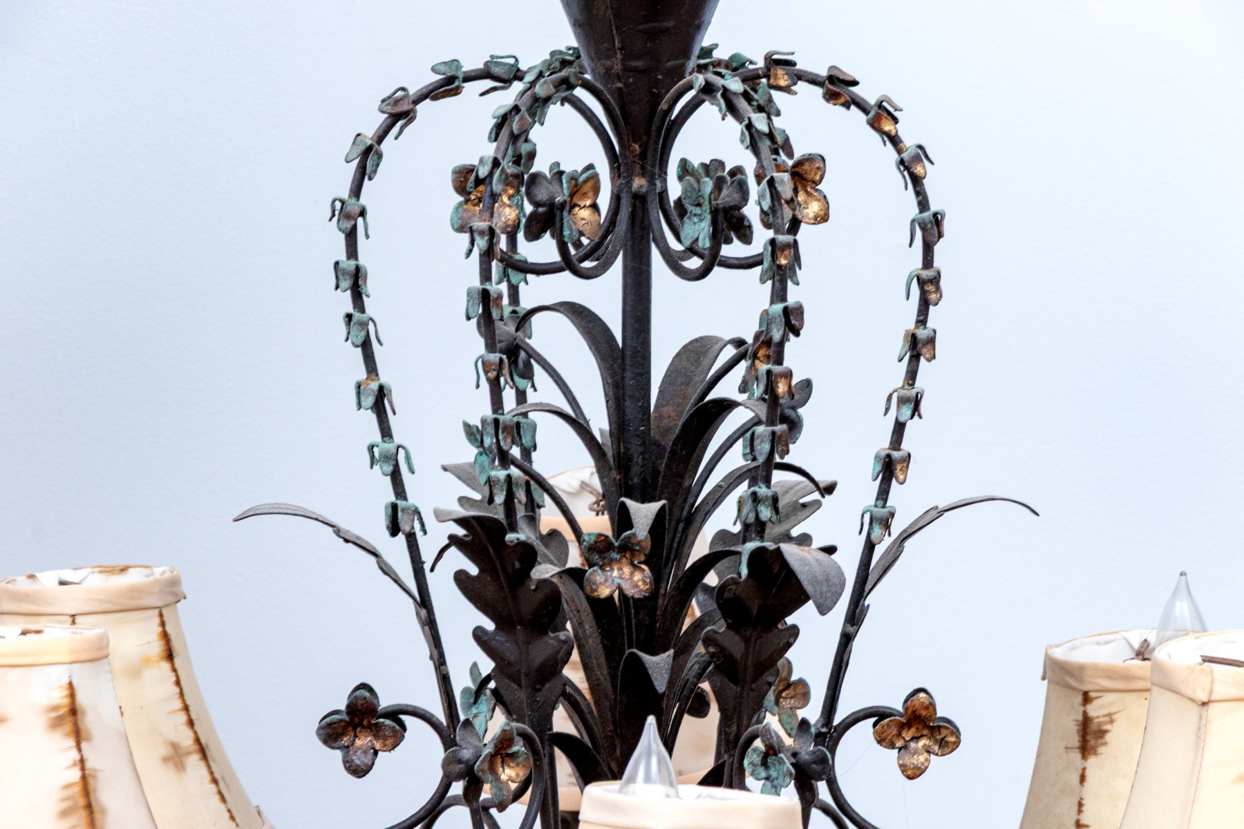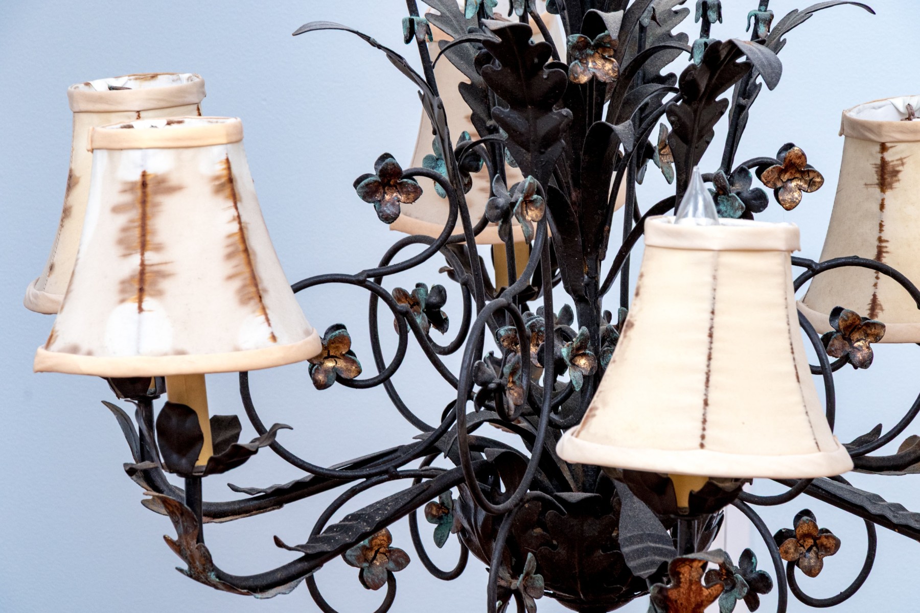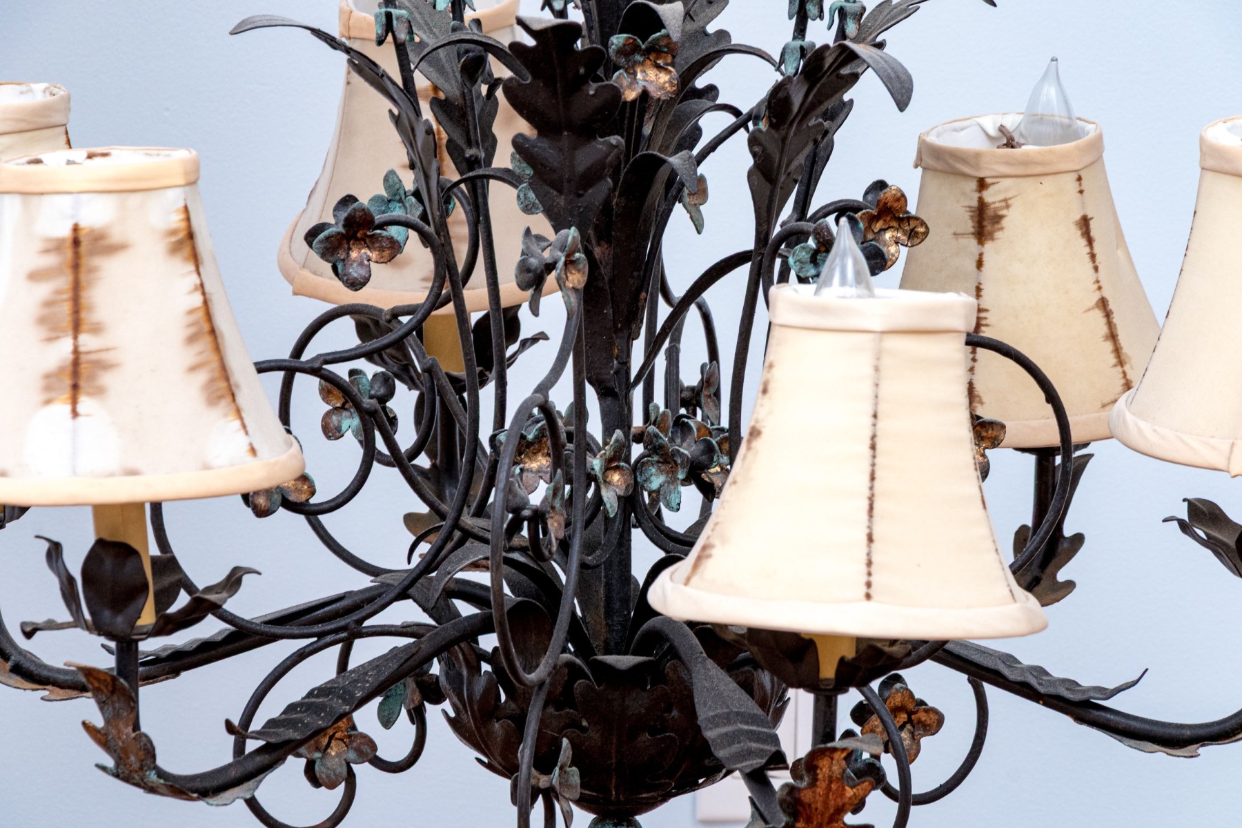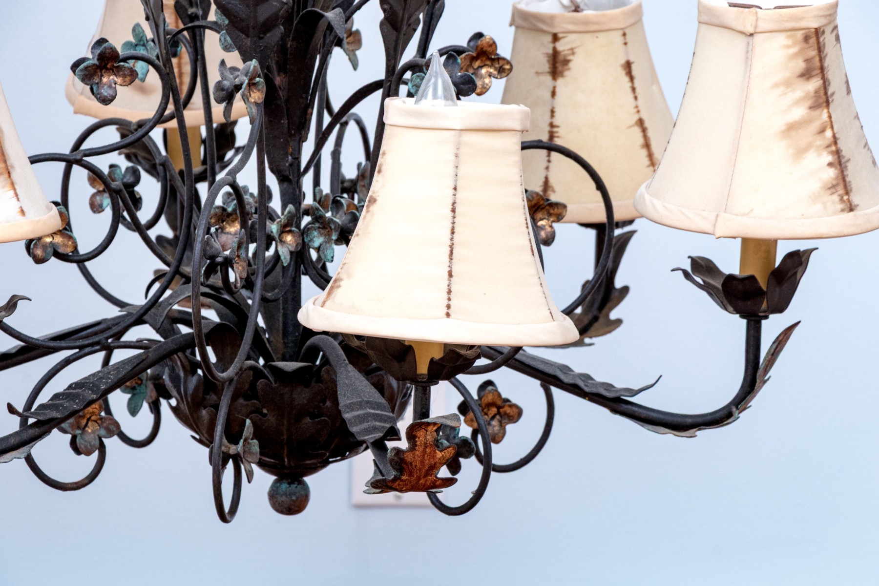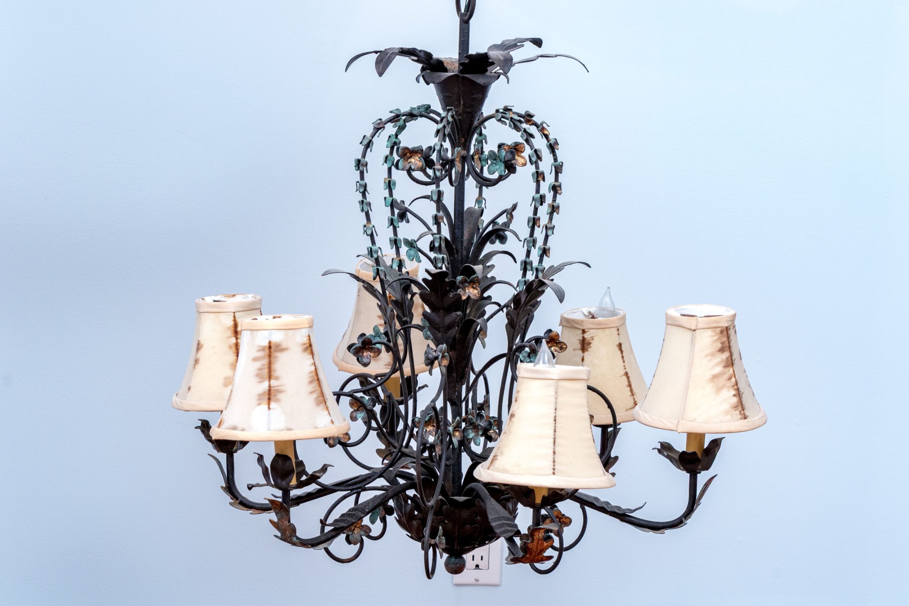 Shades need to be all changed they are stained and torn, but overall a very pretty chandelier.