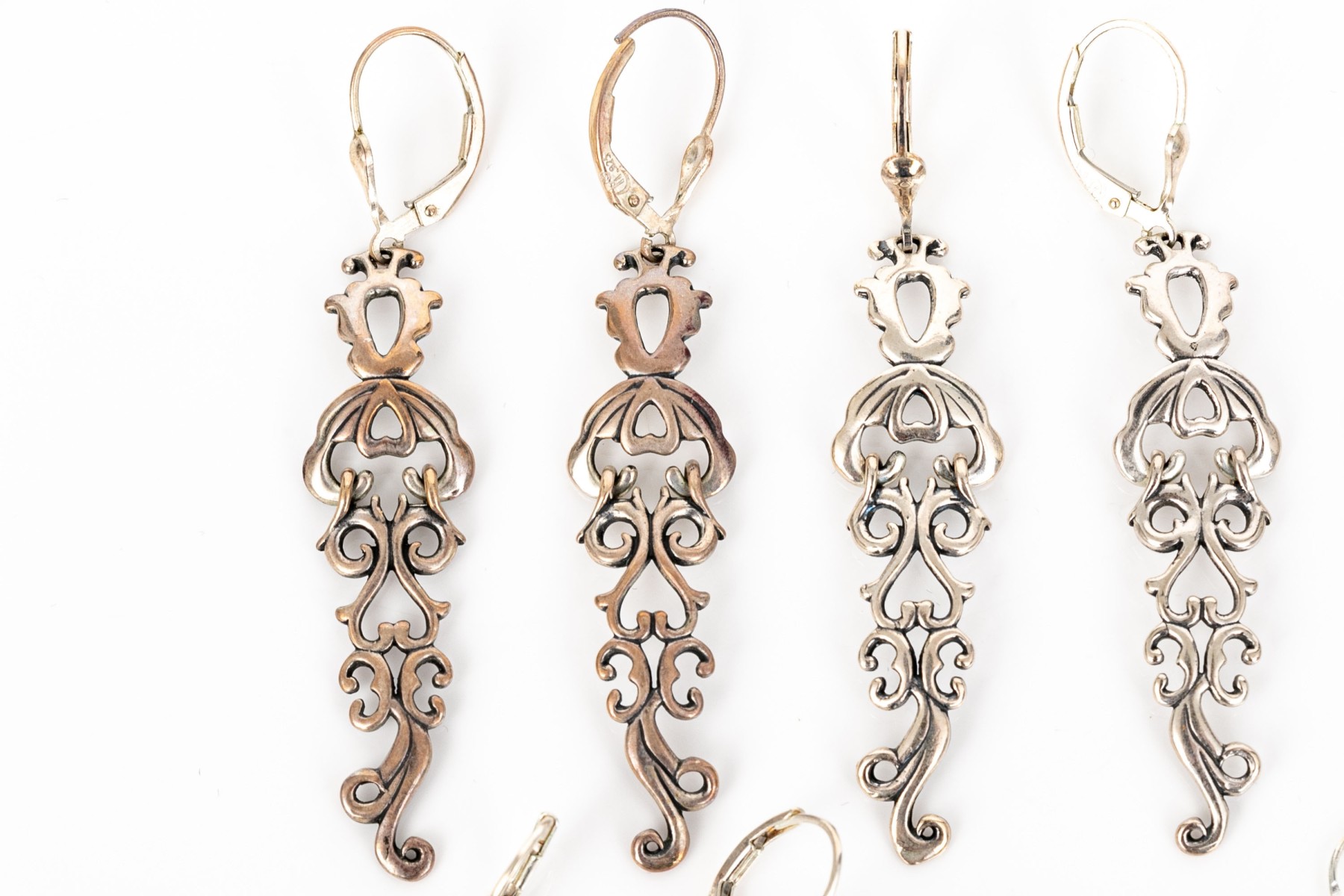 Six Pairs Of Sterling Silver Dangle Earrings #346585. Black Rock Galleries provides high end estate liquidation services through online estate auctions and a 50,000 sq ft designer showroom. estate liquidator, estate sale, online auction, antiques, fine art, liquidation, clean outs, auction, consignment, interior design, fine jewelry, collectibles, appraisals, estate appraisals, estate services, decor, furniture, furniture consignment, antique center, consignment shop. We offer appraisal services and specialize in fine art, jewelry, antiques and decorative arts. Sell with us. Black Rock Galleries is the tri-state's largest estate liquidator serving New England and the greater New York City area. We are the trusted source for expert appraisals, auction services, estate sales, and consignments. Black Rock Galleries is the east coast's largest and most trusted estate liquidator, with locations in Connecticut, greater Boston, MA and Raleigh, NC, Fairfield, Southport, Apex, TX. We are the best source for expert appraisals, auction services, estate sales and consignments. We have served thousands of families and estates with compassion, professionalism and expertise. BRG works with attorneys, executors, realtors and families to bring the greatest return on personal and estate property in the current market. Our unique combination of services make us the easy choice to get the job done in a timely and stress-free manner. We are with you from the initial consultation to the final clean out. Our house-built online auction software platform offers clients a dynamic approach to liquidating their personal property. This venue is most successful in bringing the best return with the least amount of disruption for our clients. See our services page for a complete description of this offering. Six Pairs Of Sterling Silver Dangle Earrings #346585