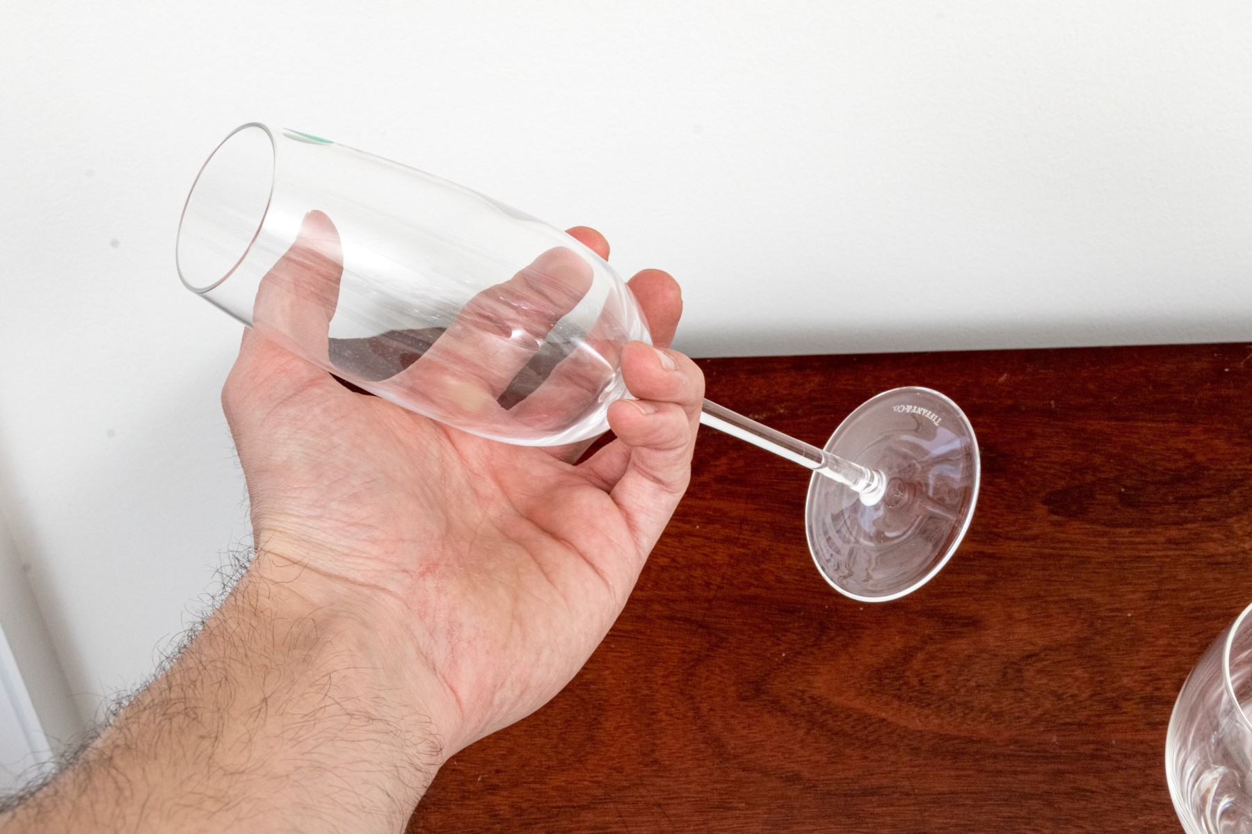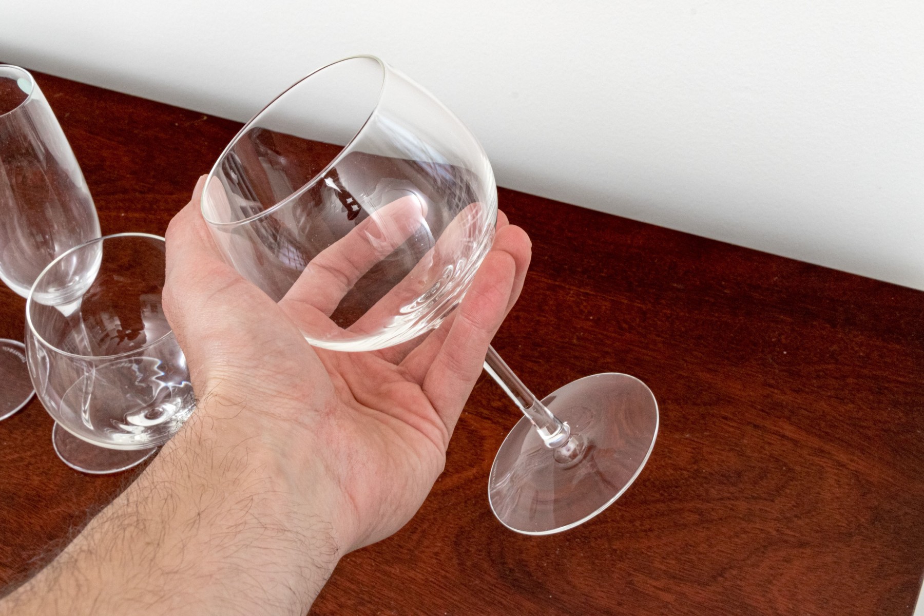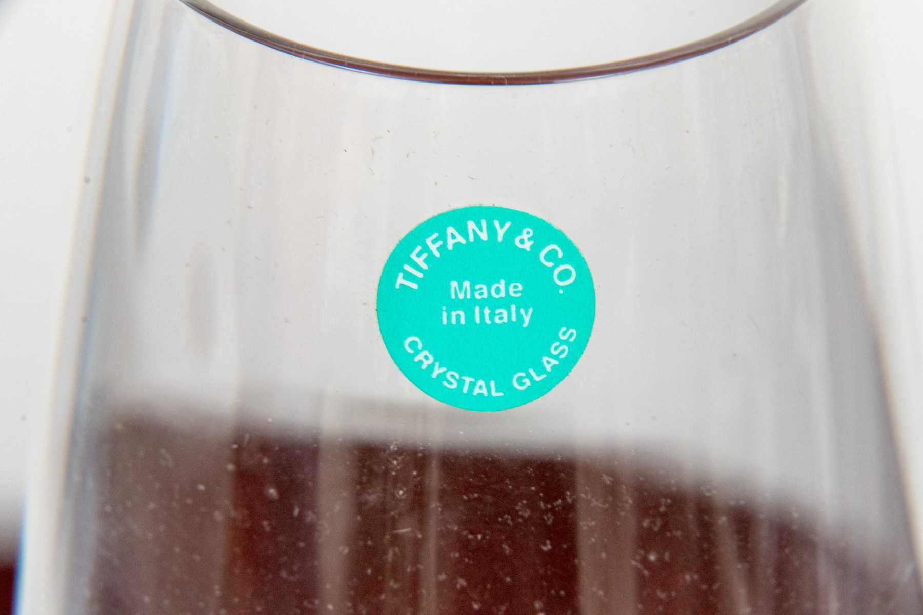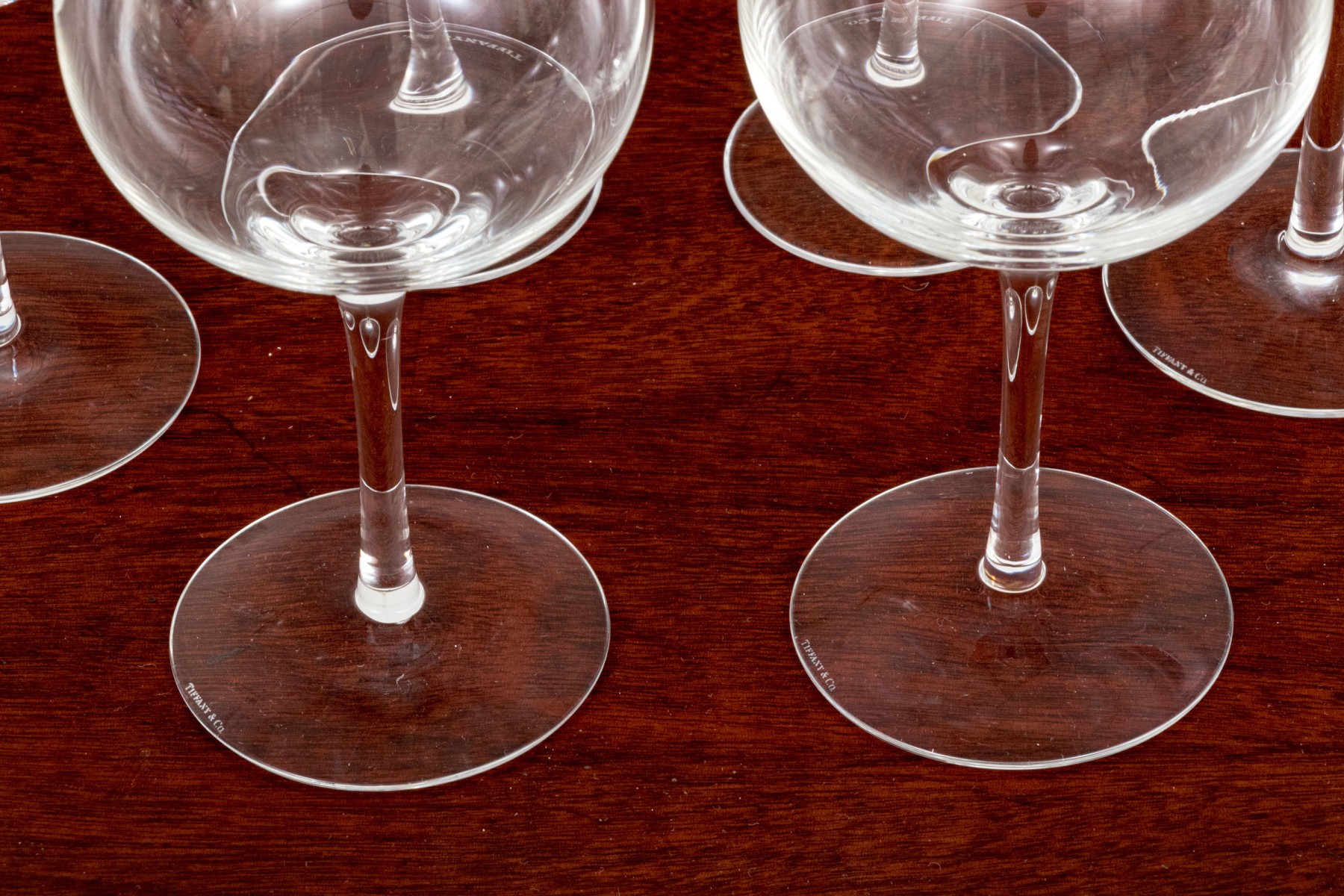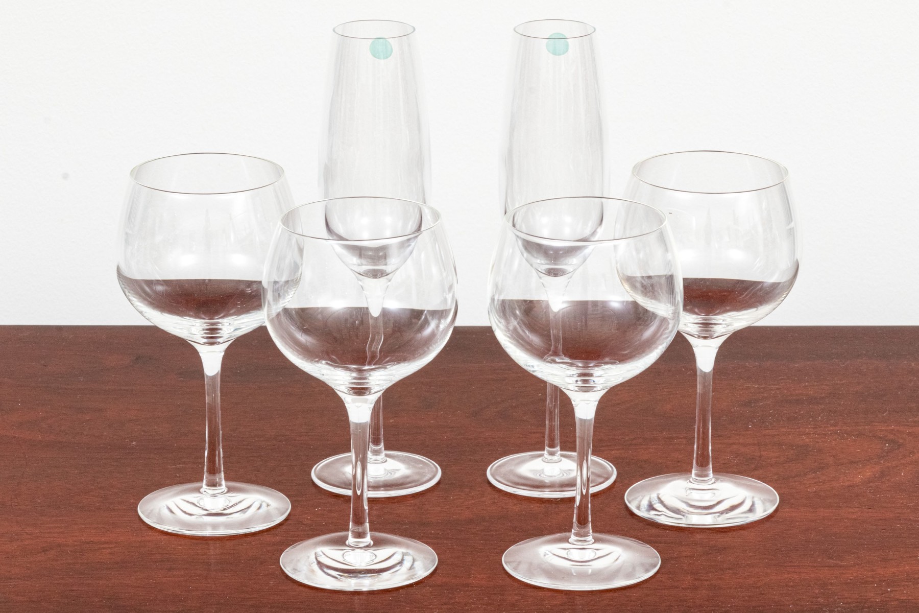 Four wine glasses, 7 1/2” high each, two toasting flutes, 9 3/4” high