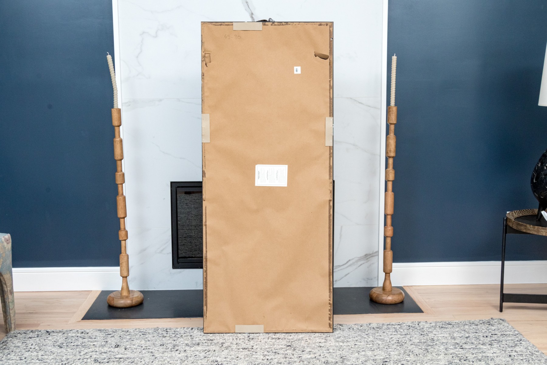 Presents well overall. Minor wear around the corners of the frame. Does not include any hanging hardware.