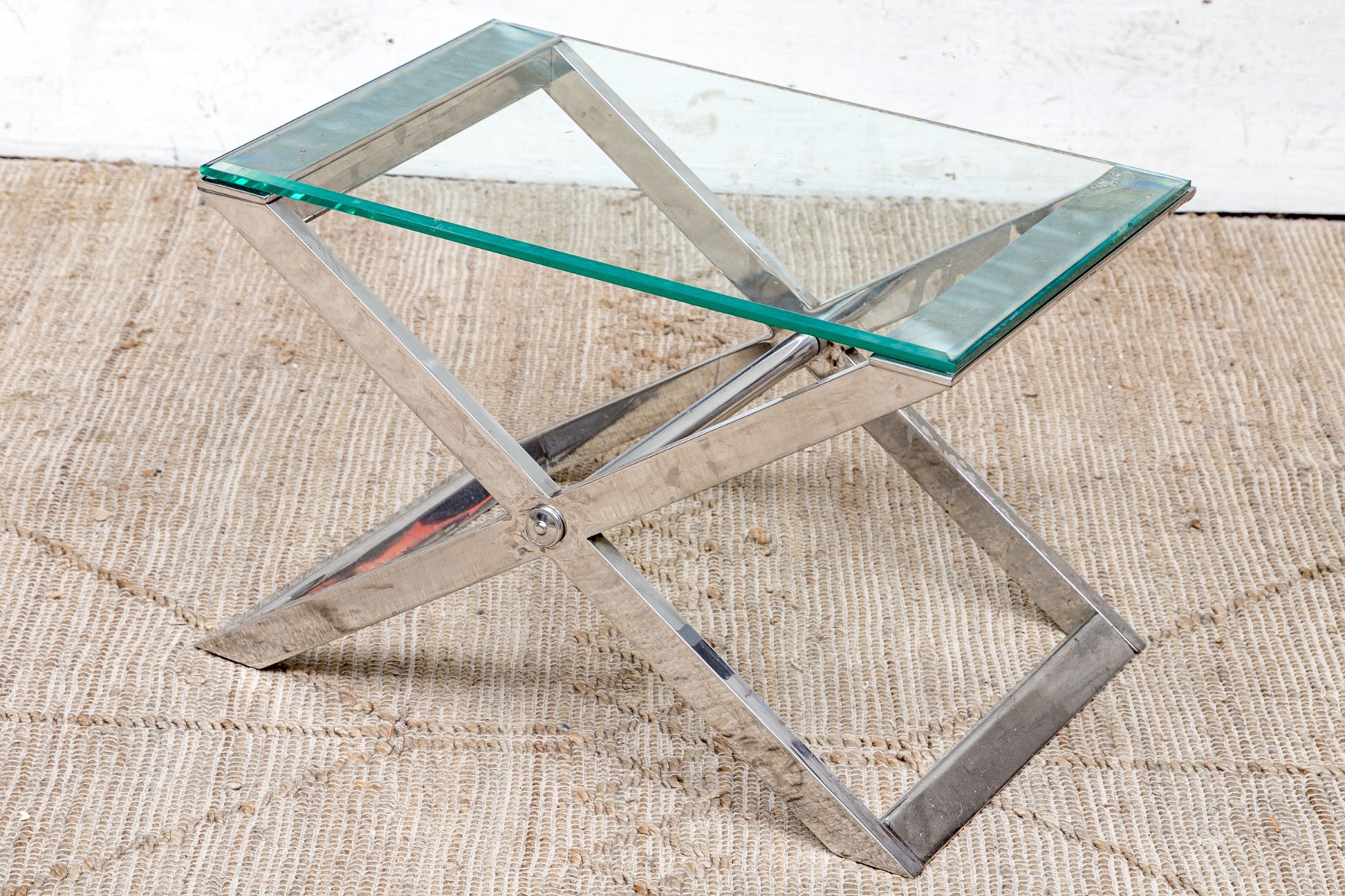 A contemporary yet modern and chic chrome X form frame with removable top.