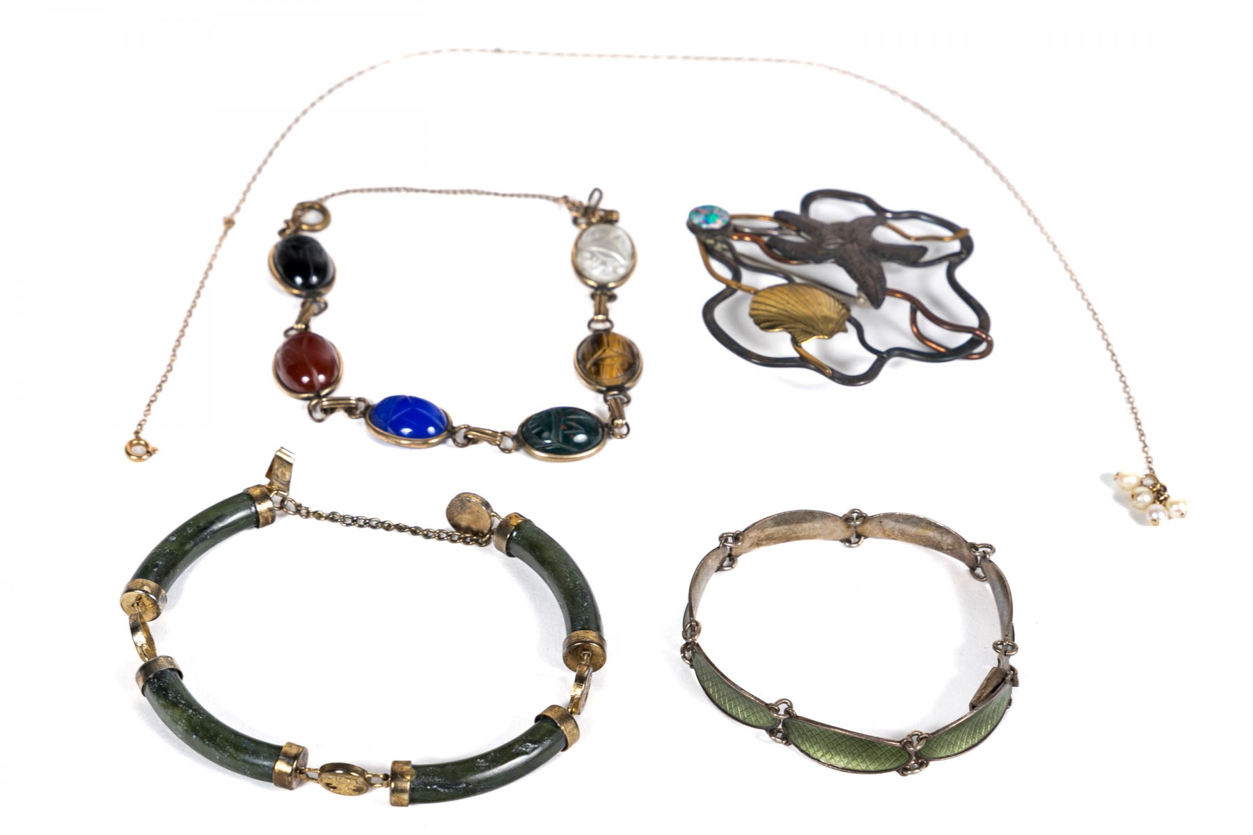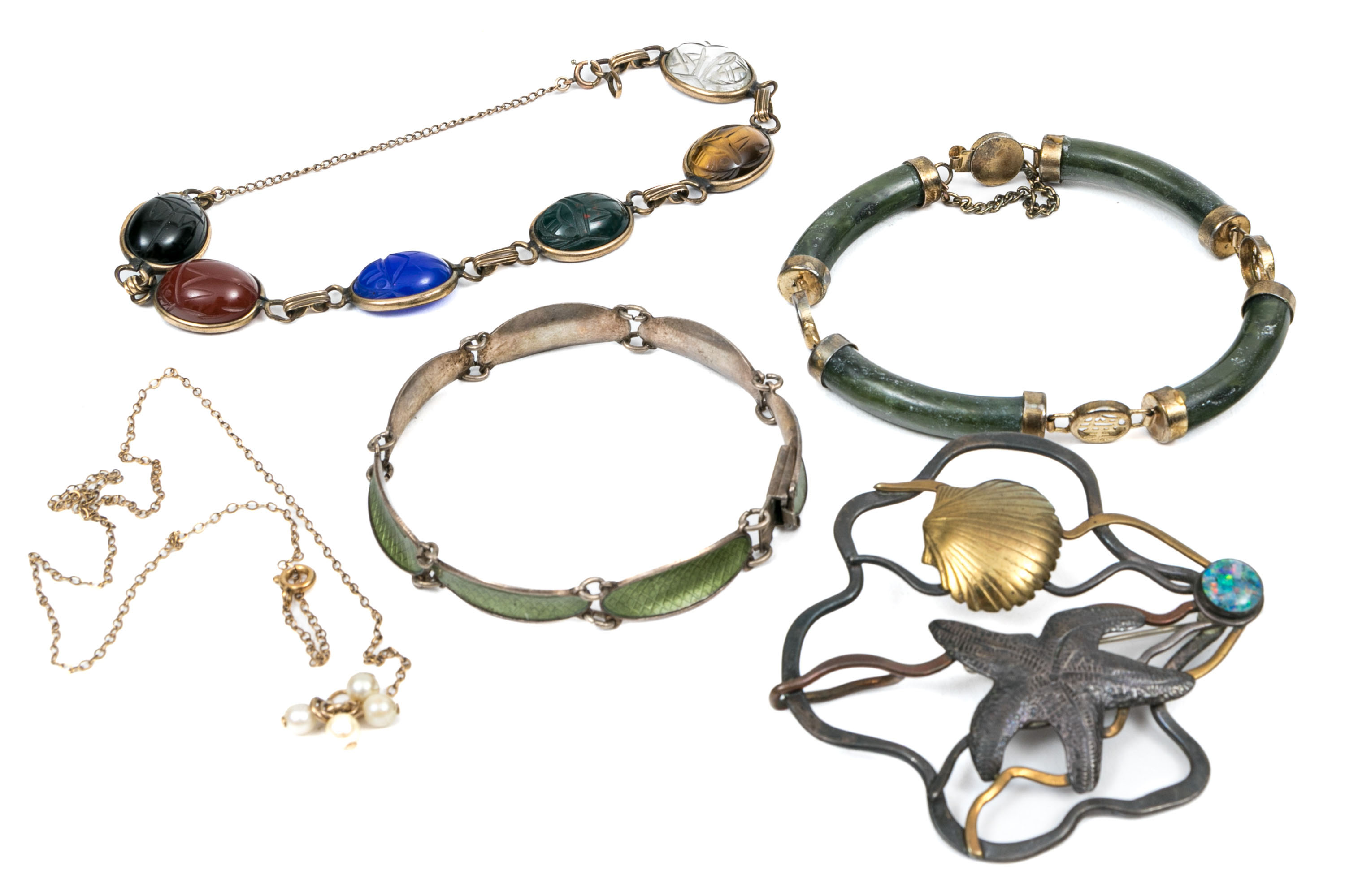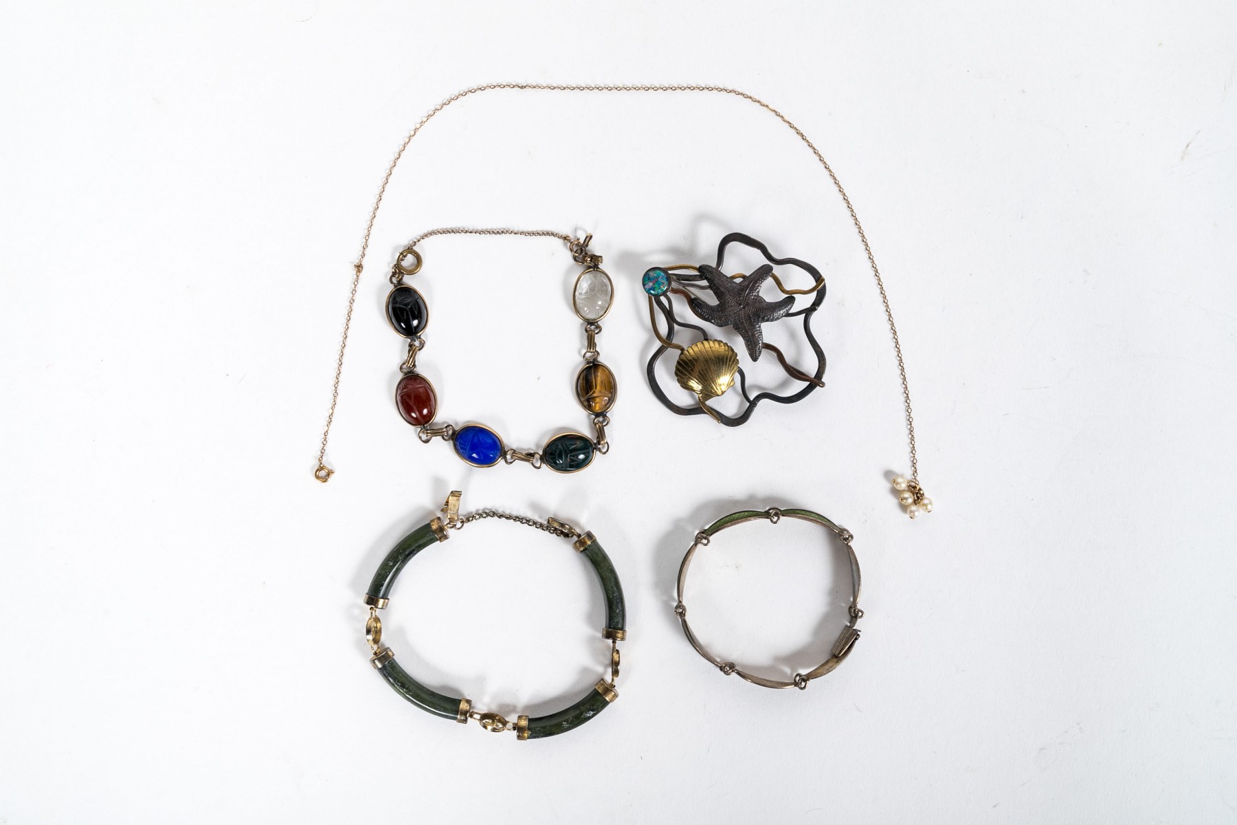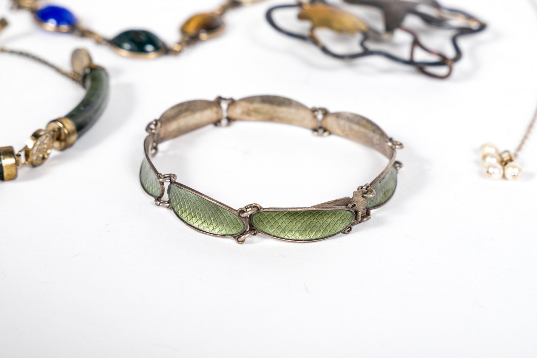Small lot of assorted costume jewelry, including a Danish silver bracelet