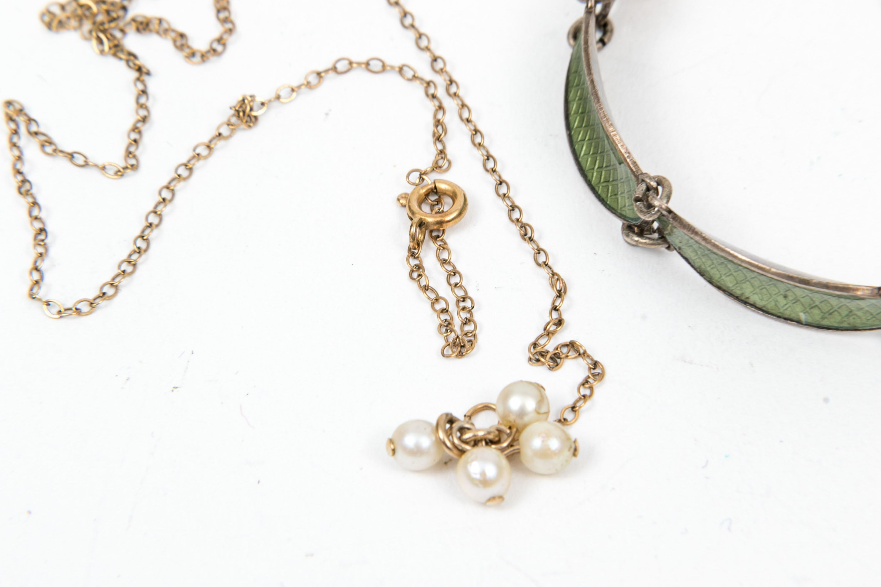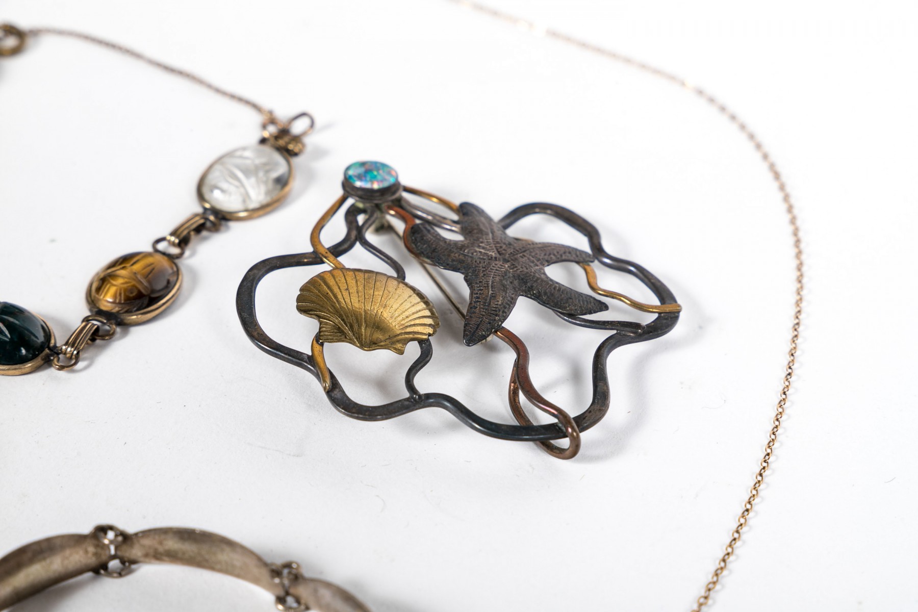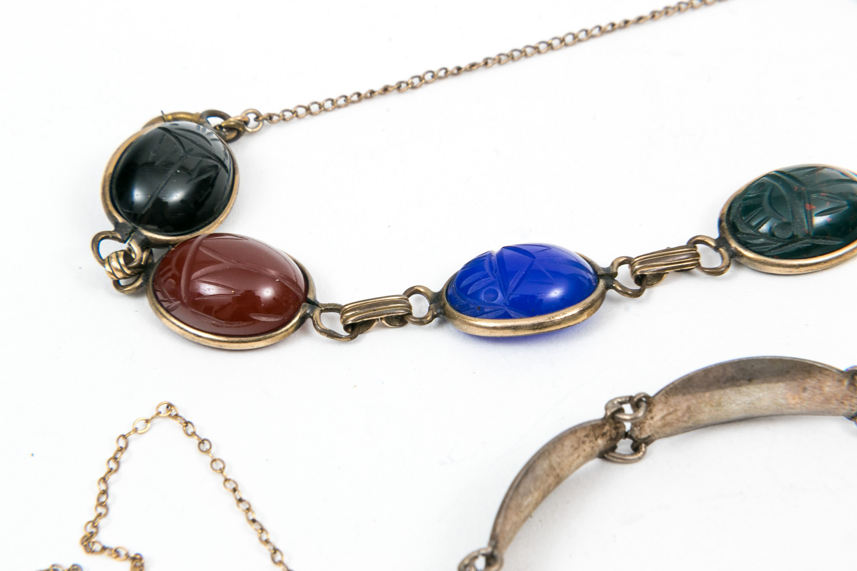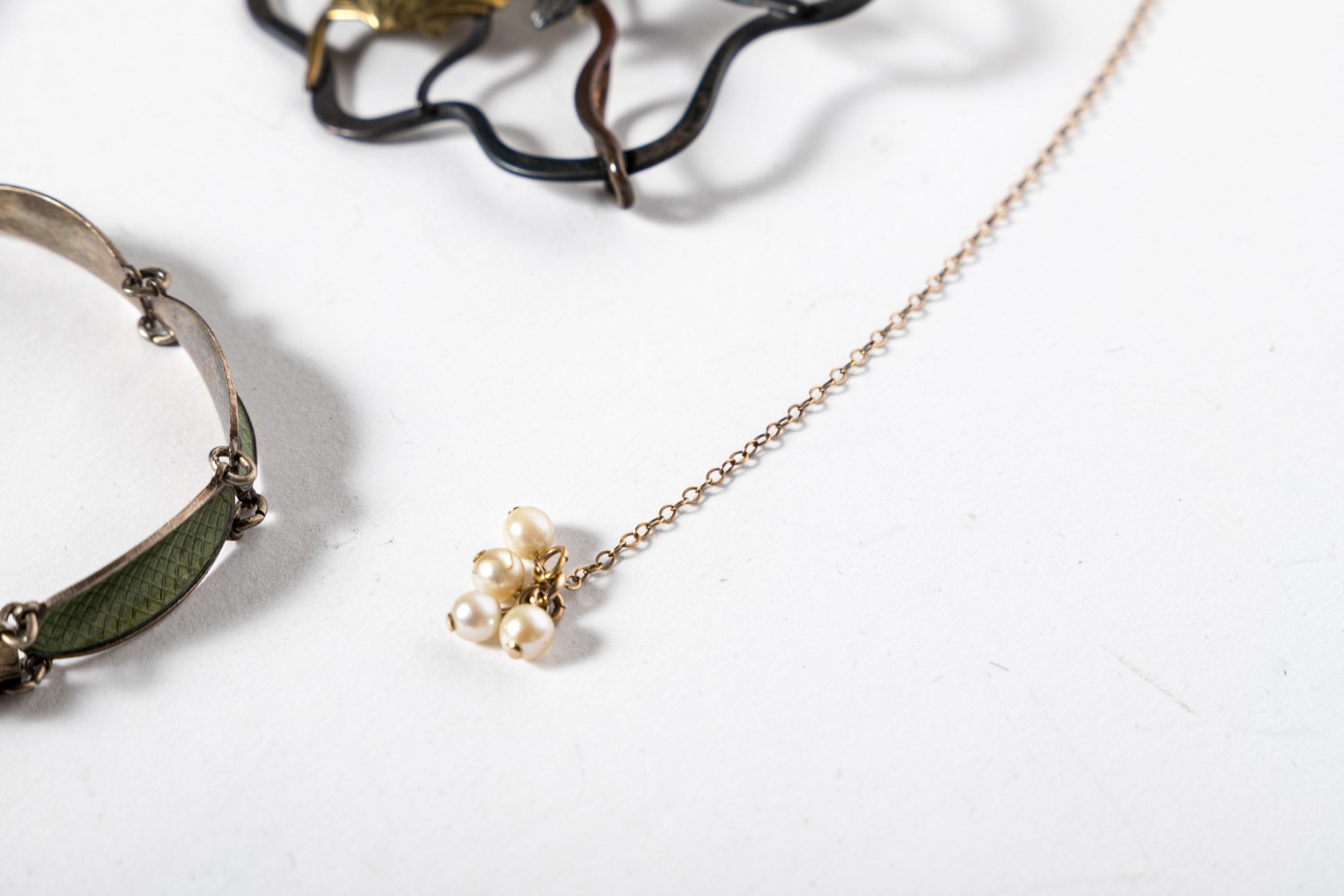Small lot of assorted costume jewelry, including a Danish silver bracelet