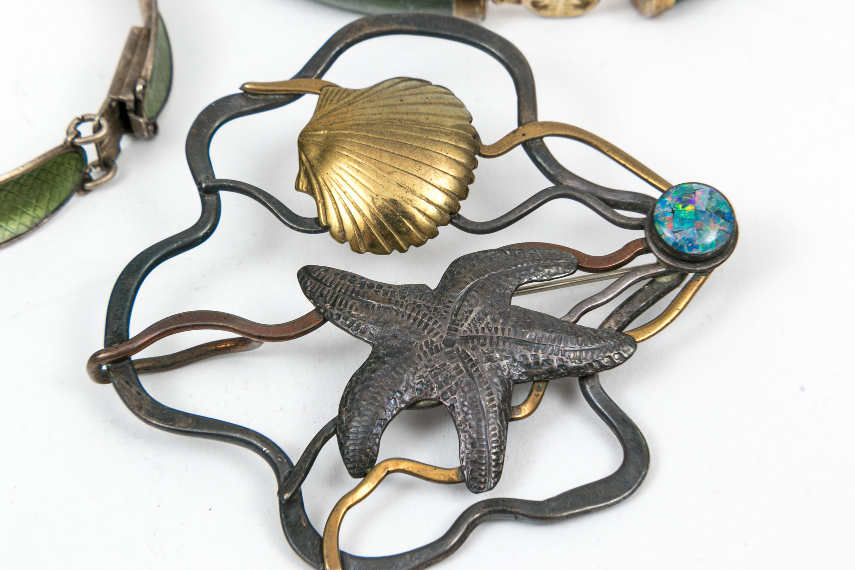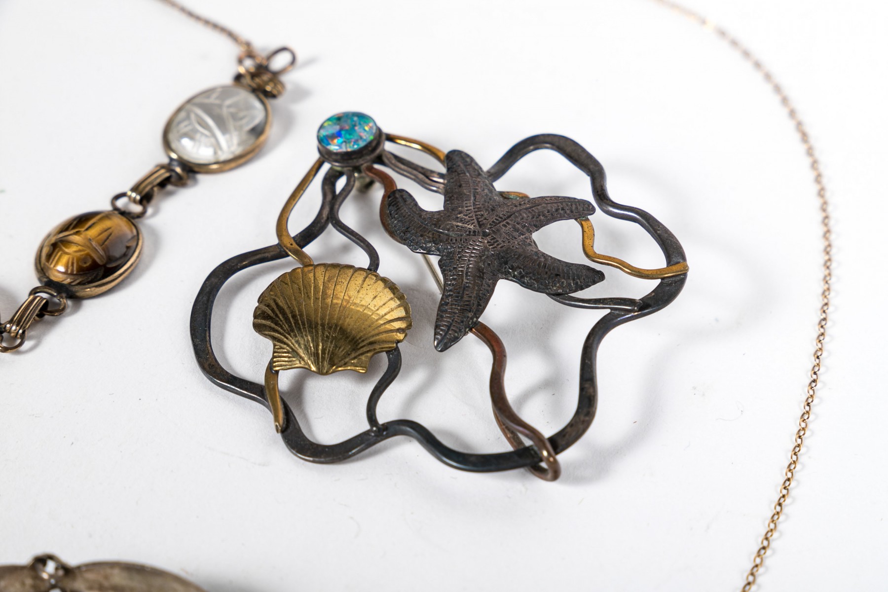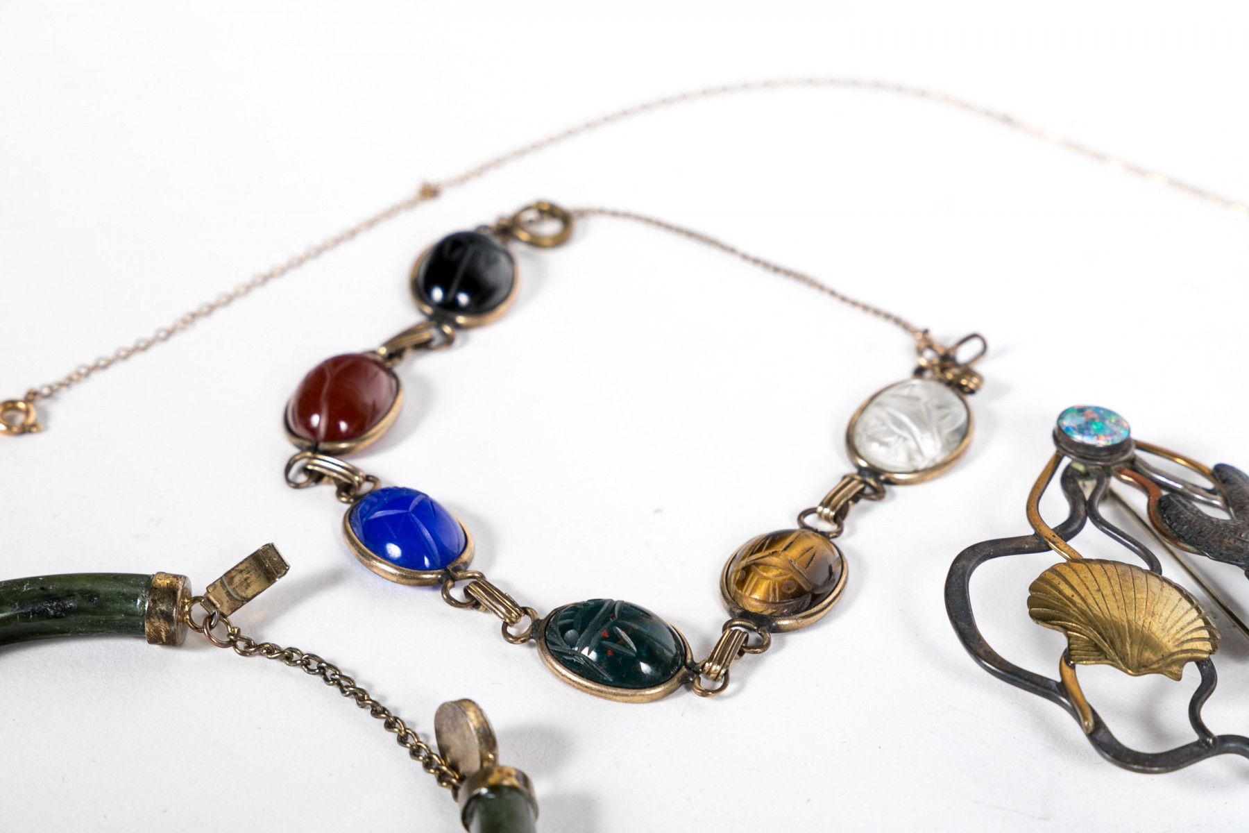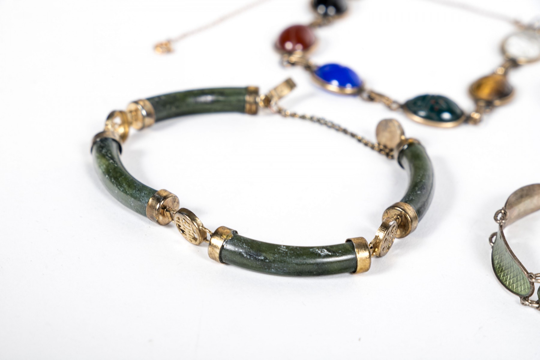 Small lot of assorted costume jewelry, including a Danish silver bracelet