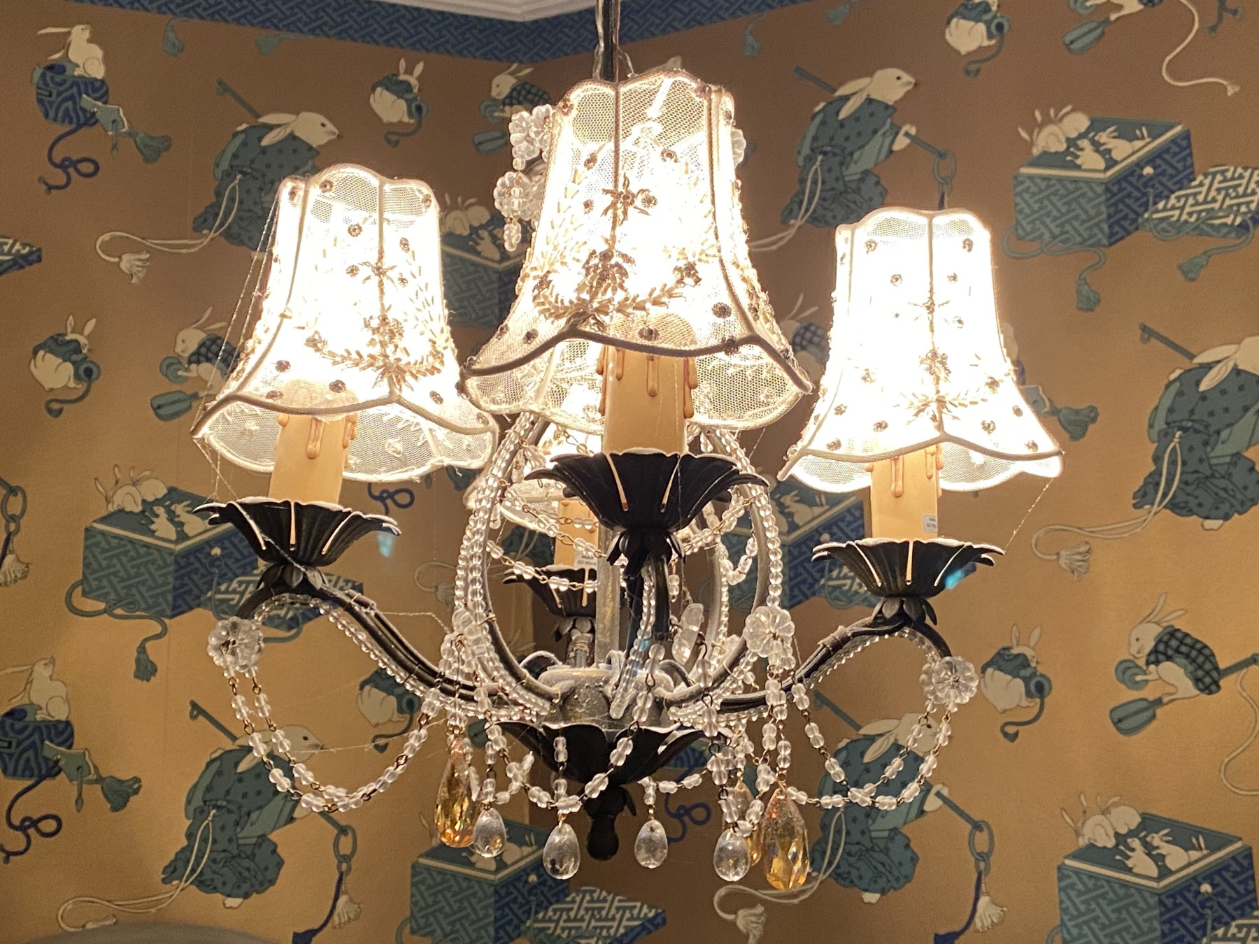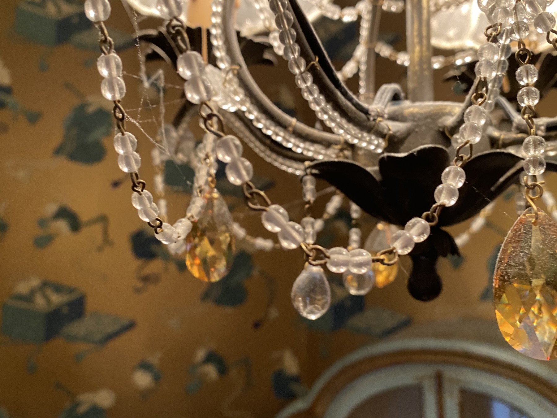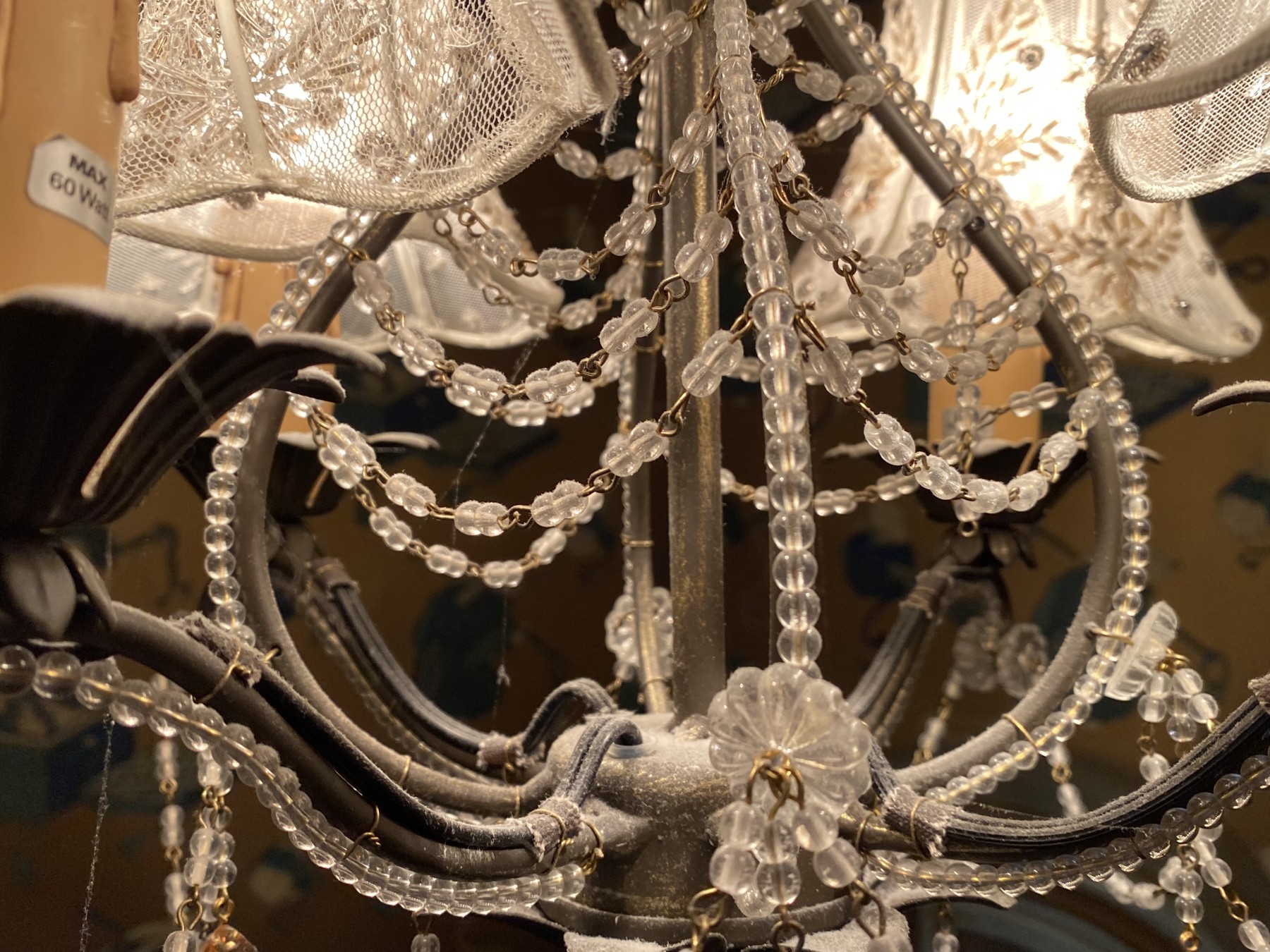 Add a touch of elegance and sparkle to any room with this small vintage beaded chandelier.