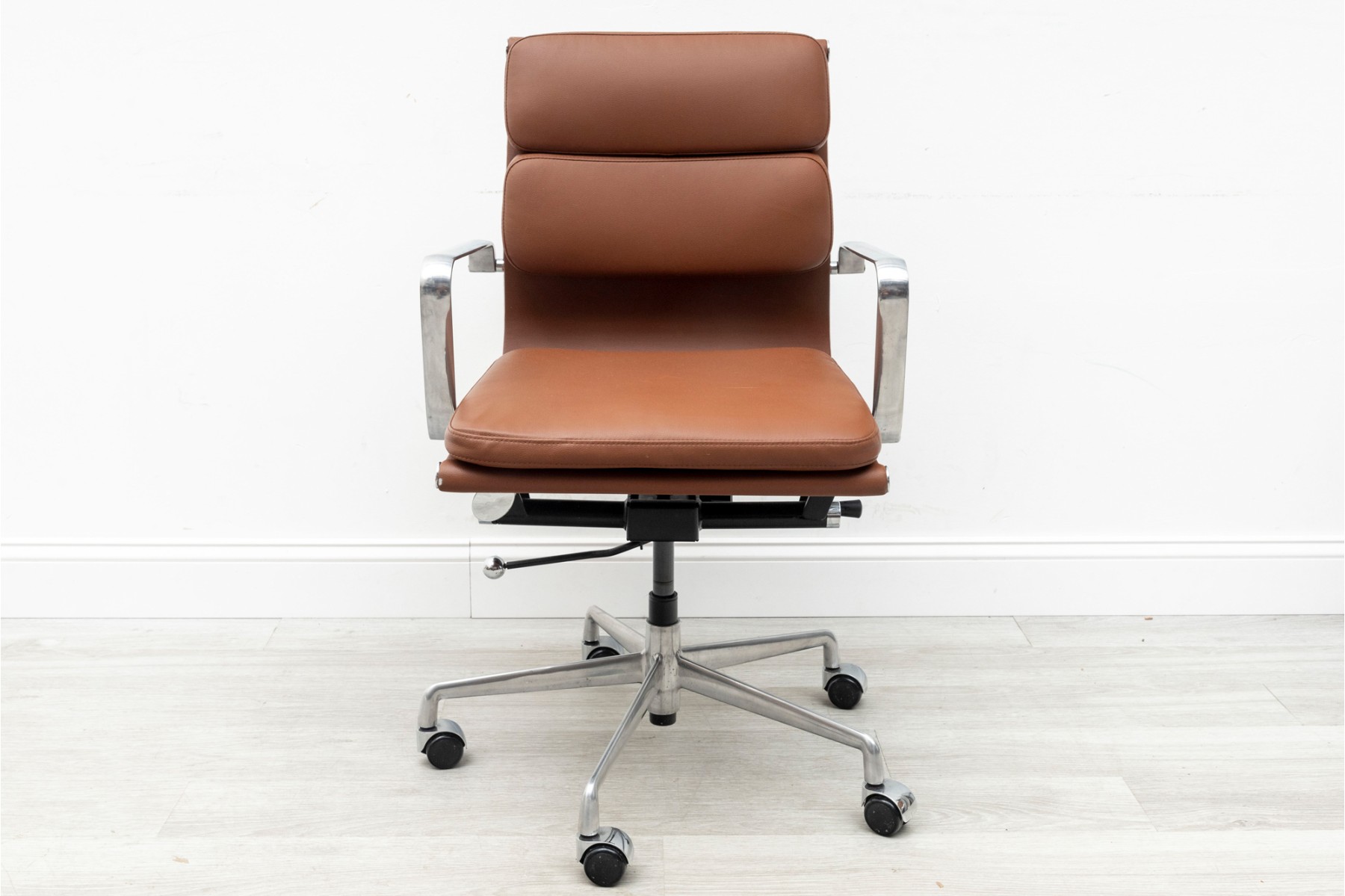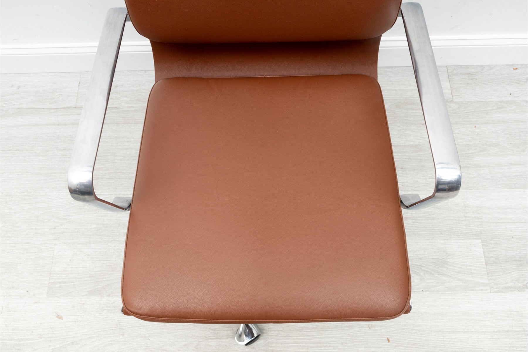 With over 400 pounds of maximum support and comforting padded leatherette in brown, this adjustable chair from the SOHO series is the perfect office companion. Fully adjustable with partially reclining frame.