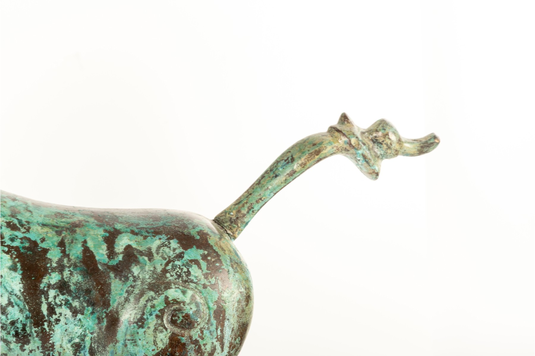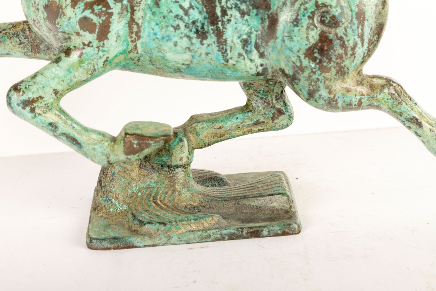 Solid Brass Trotting Horse Sculpture With Verdigris Patina