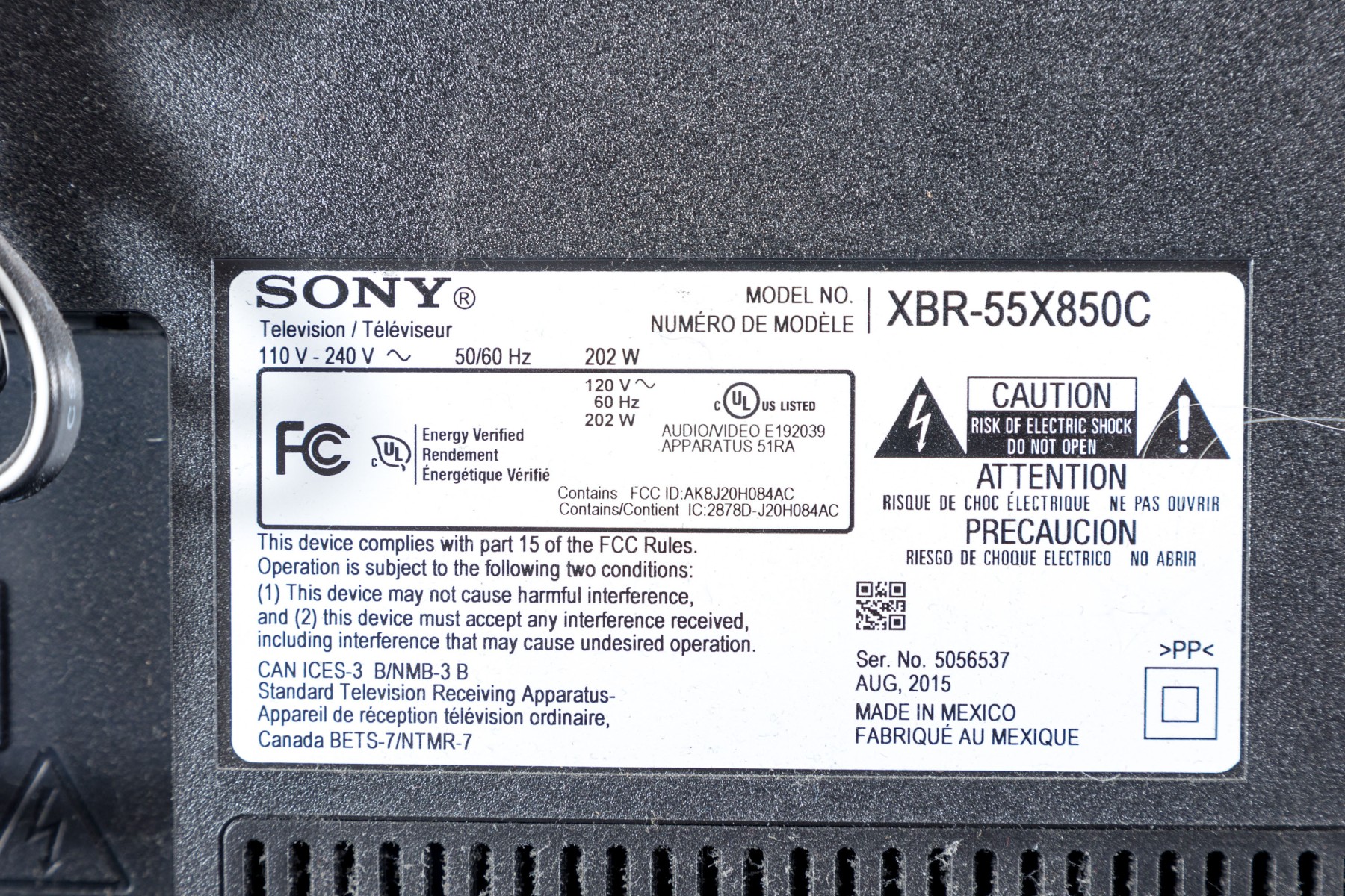 Model XBR-55X850C Sony 55" television with two HDMI ports, two USB ports and a 3D, Edge LED Backlight. Includes Apple media streamer and Wattbox attachment. Mounting plate included.