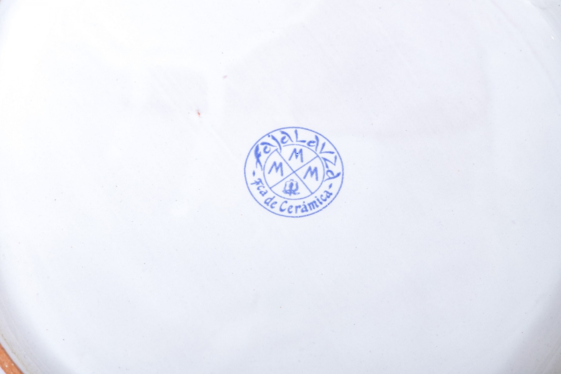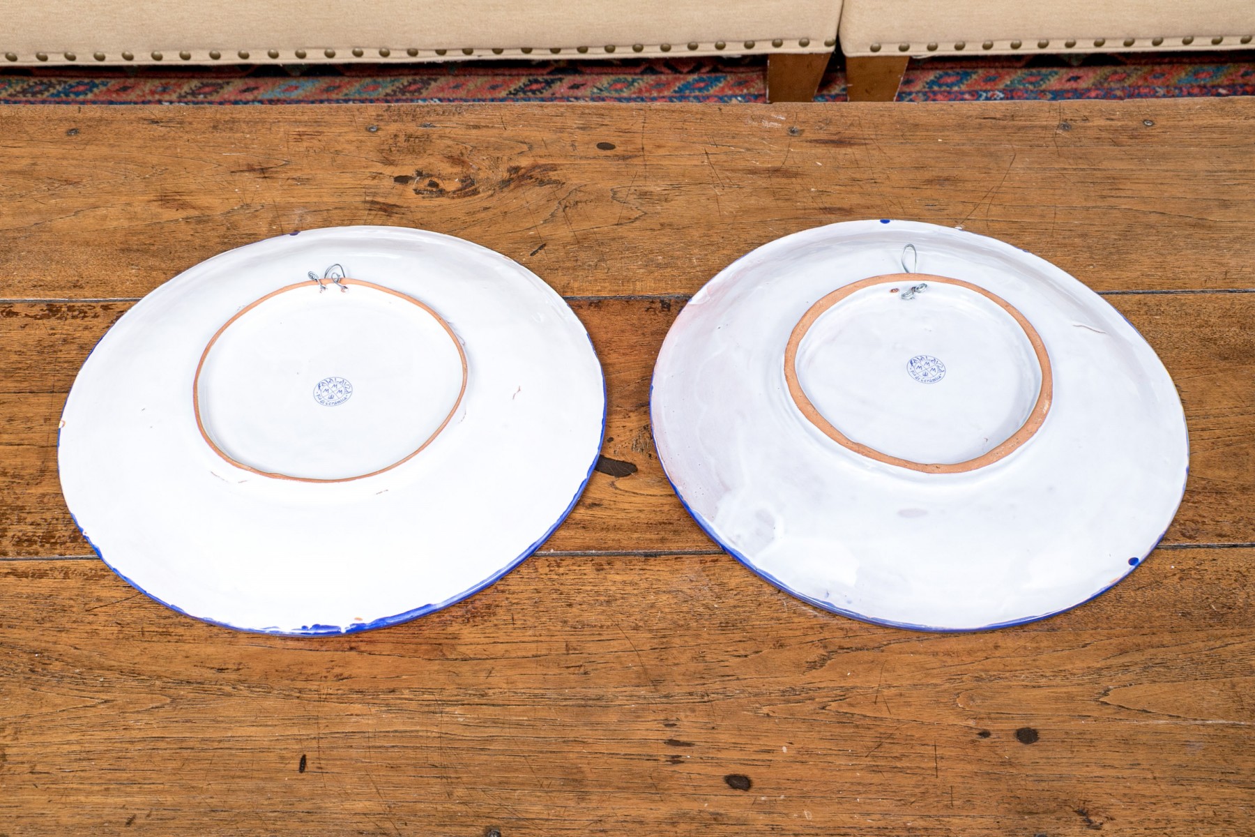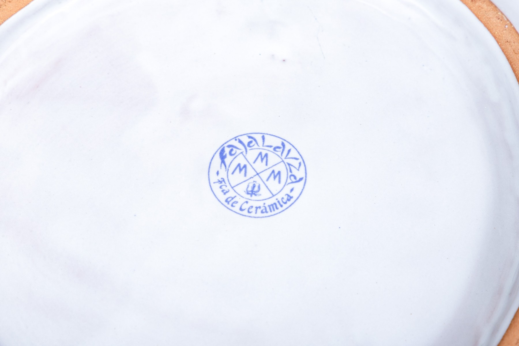 Spanish Fajalauza pottery wall hanging plates, each bearing blue stamp on verso.