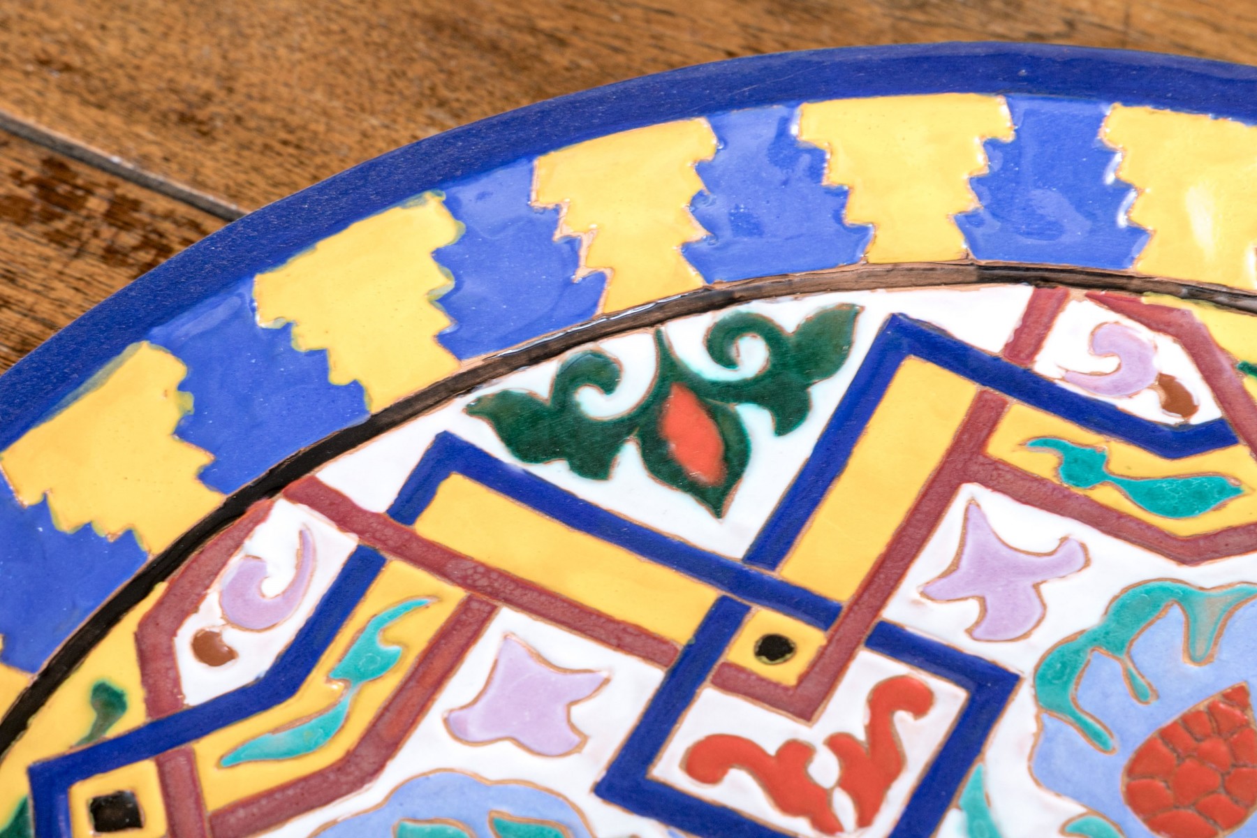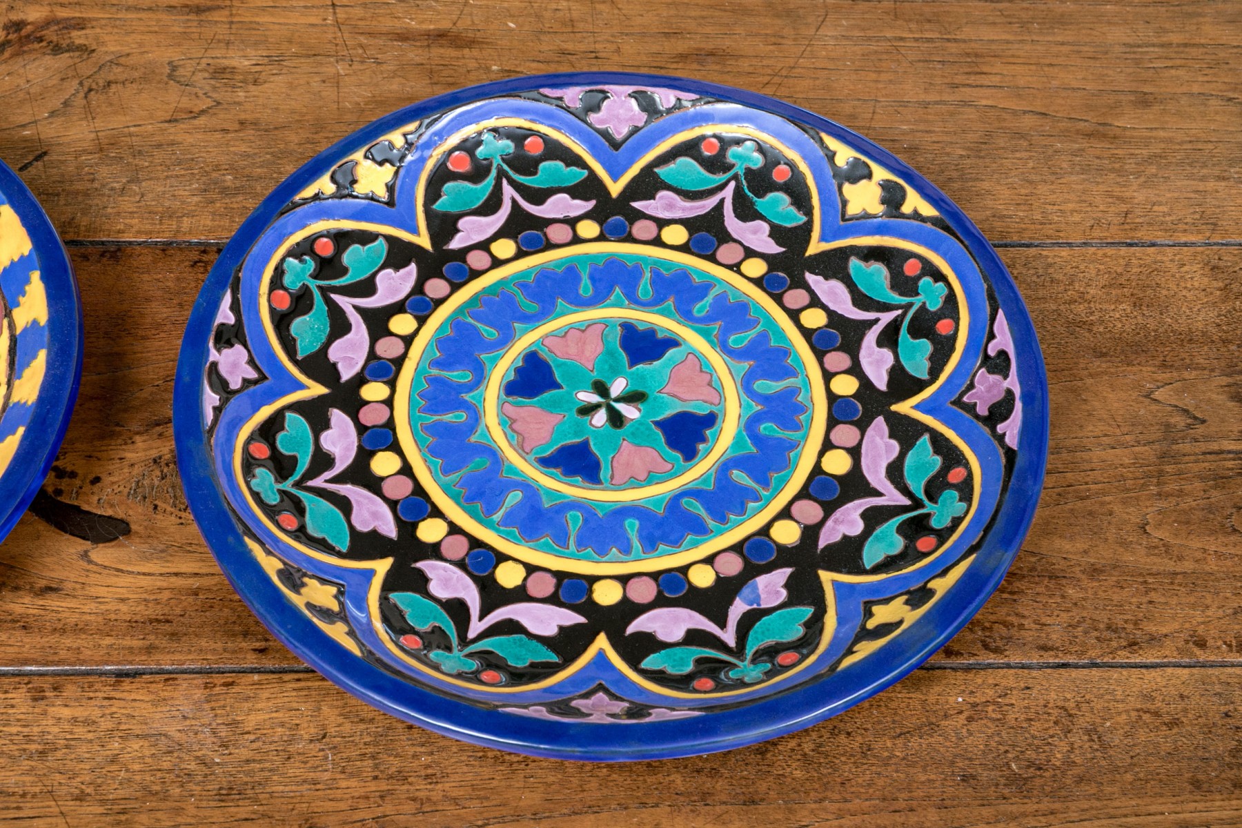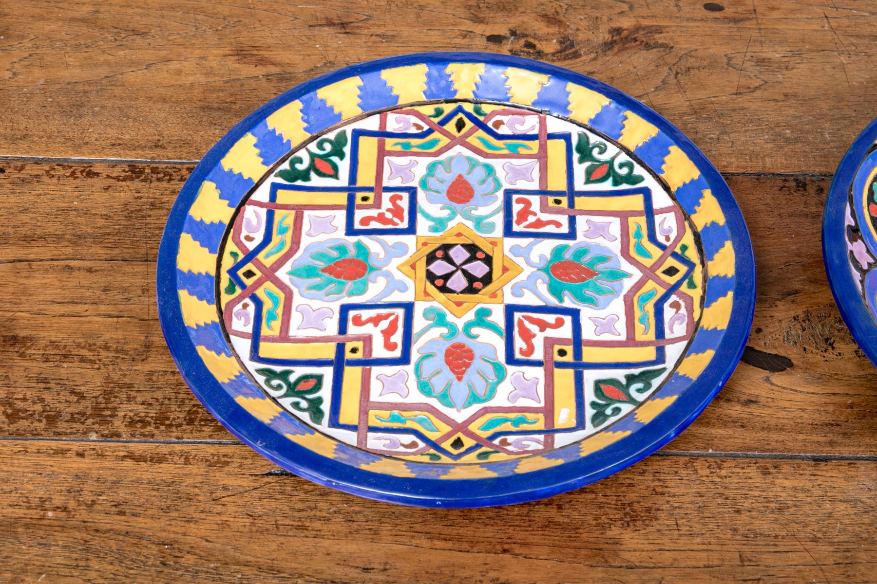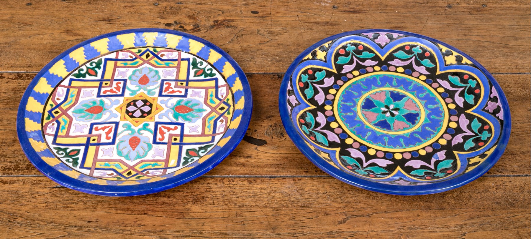 Spanish Fajalauza pottery wall hanging plates, each bearing blue stamp on verso.