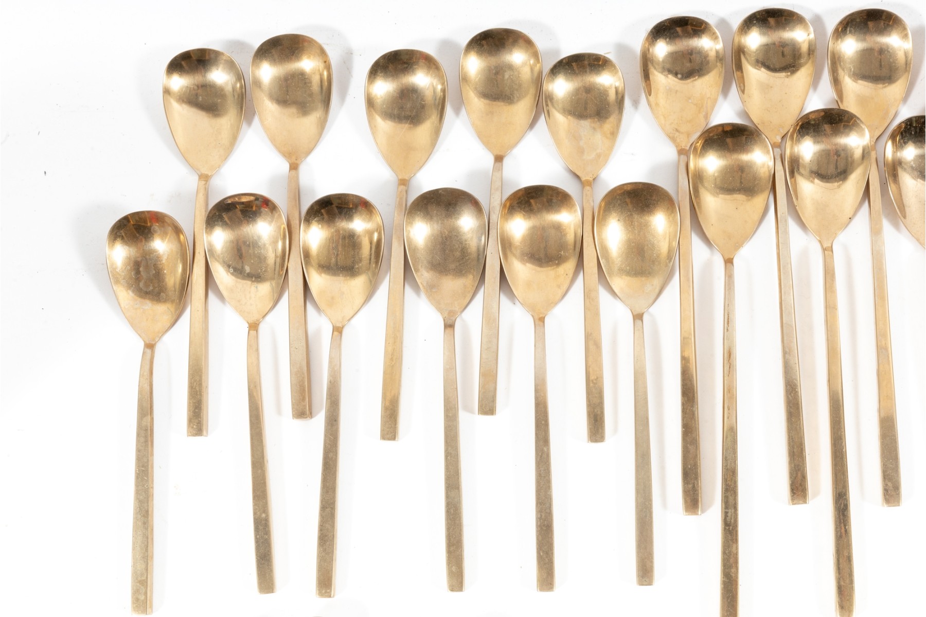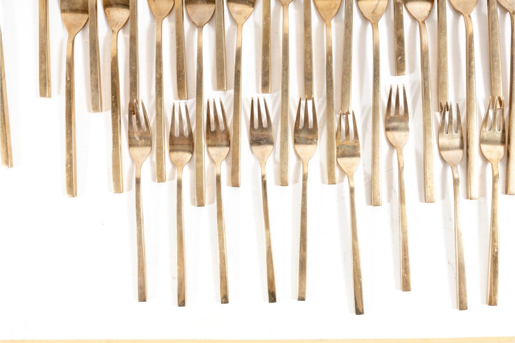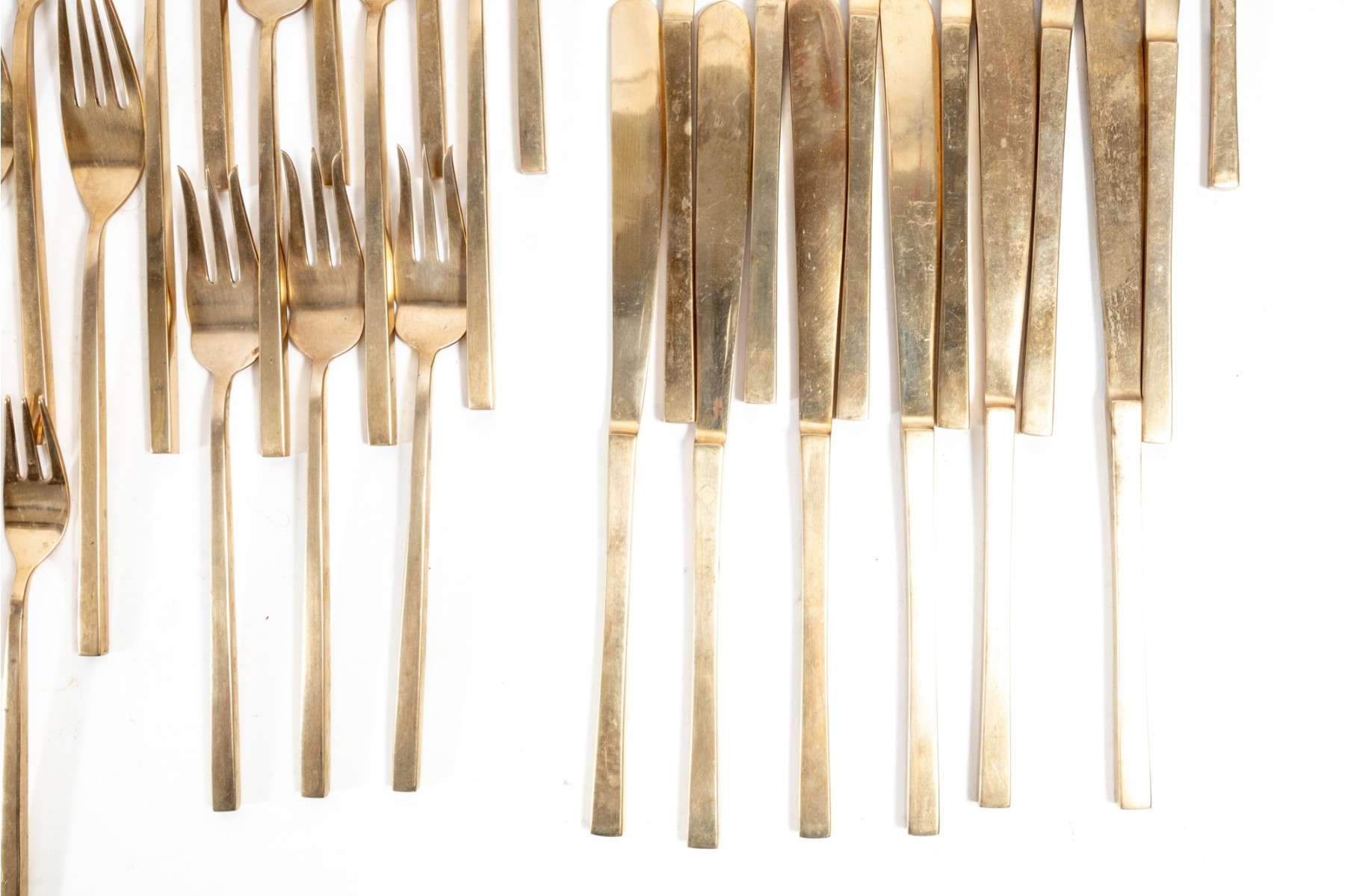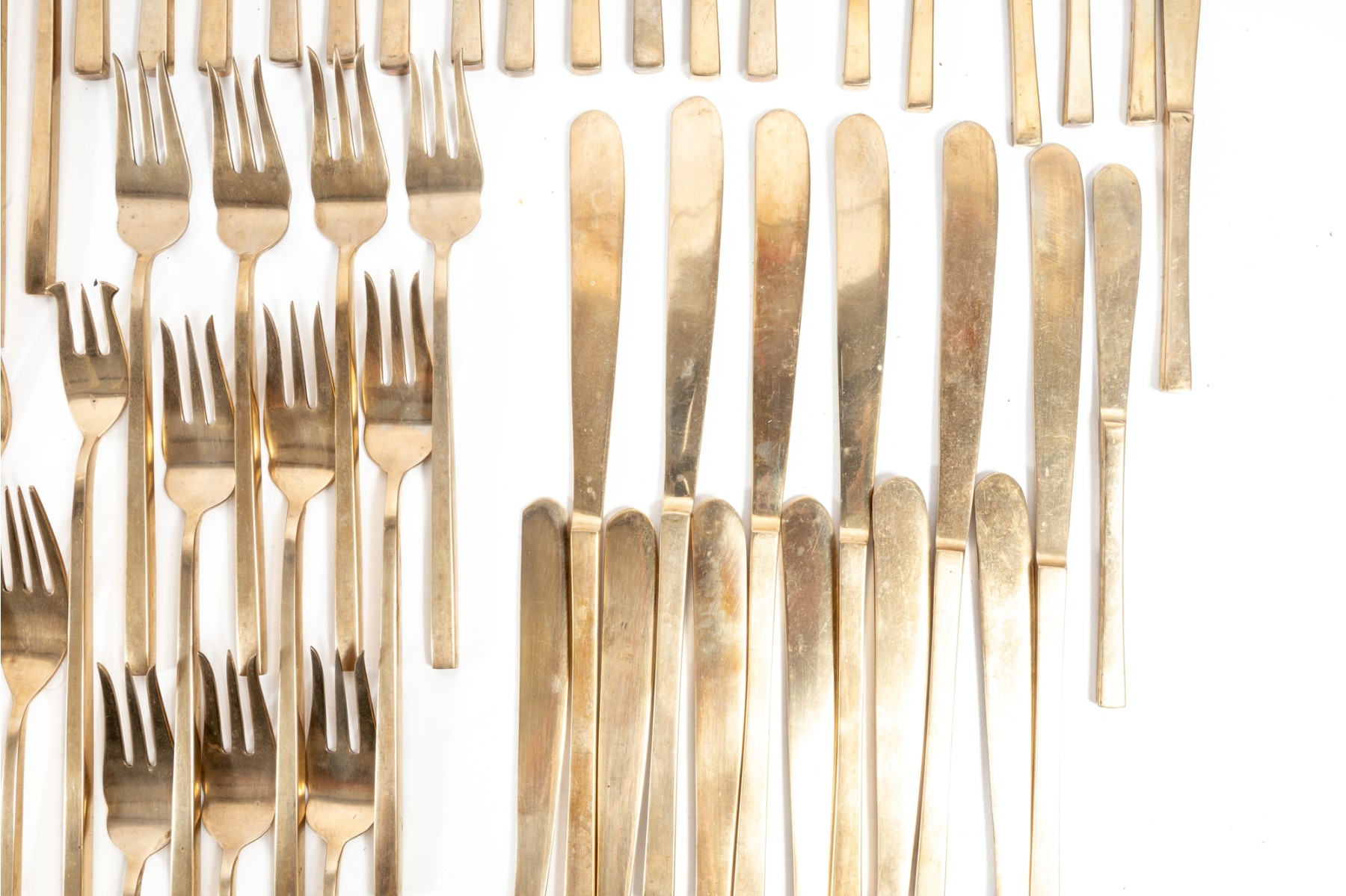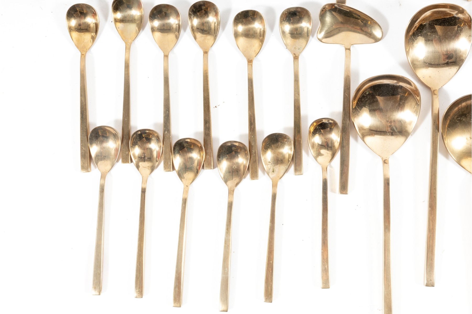 A collection of solid brass flatware ranging from cheese knives, spoons, forks and more. Please refer to photos for details and contents.