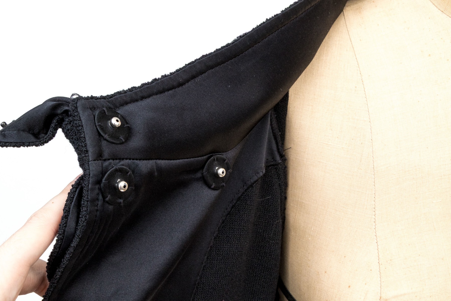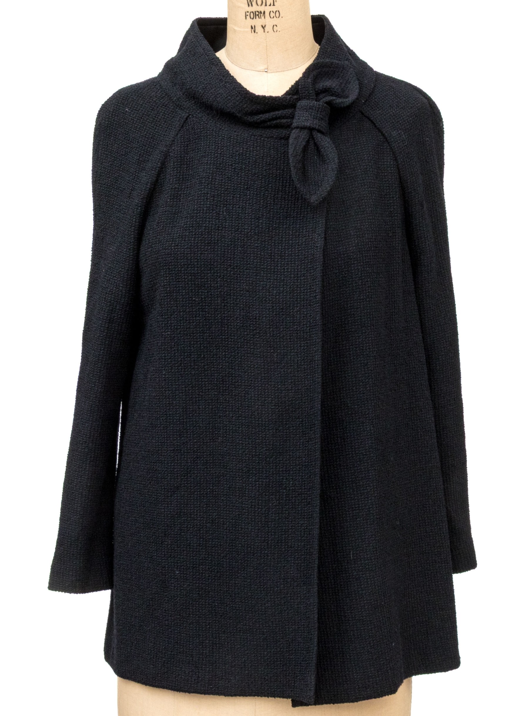 St.John black bow motif swing style knit unstructured blazer, size 6