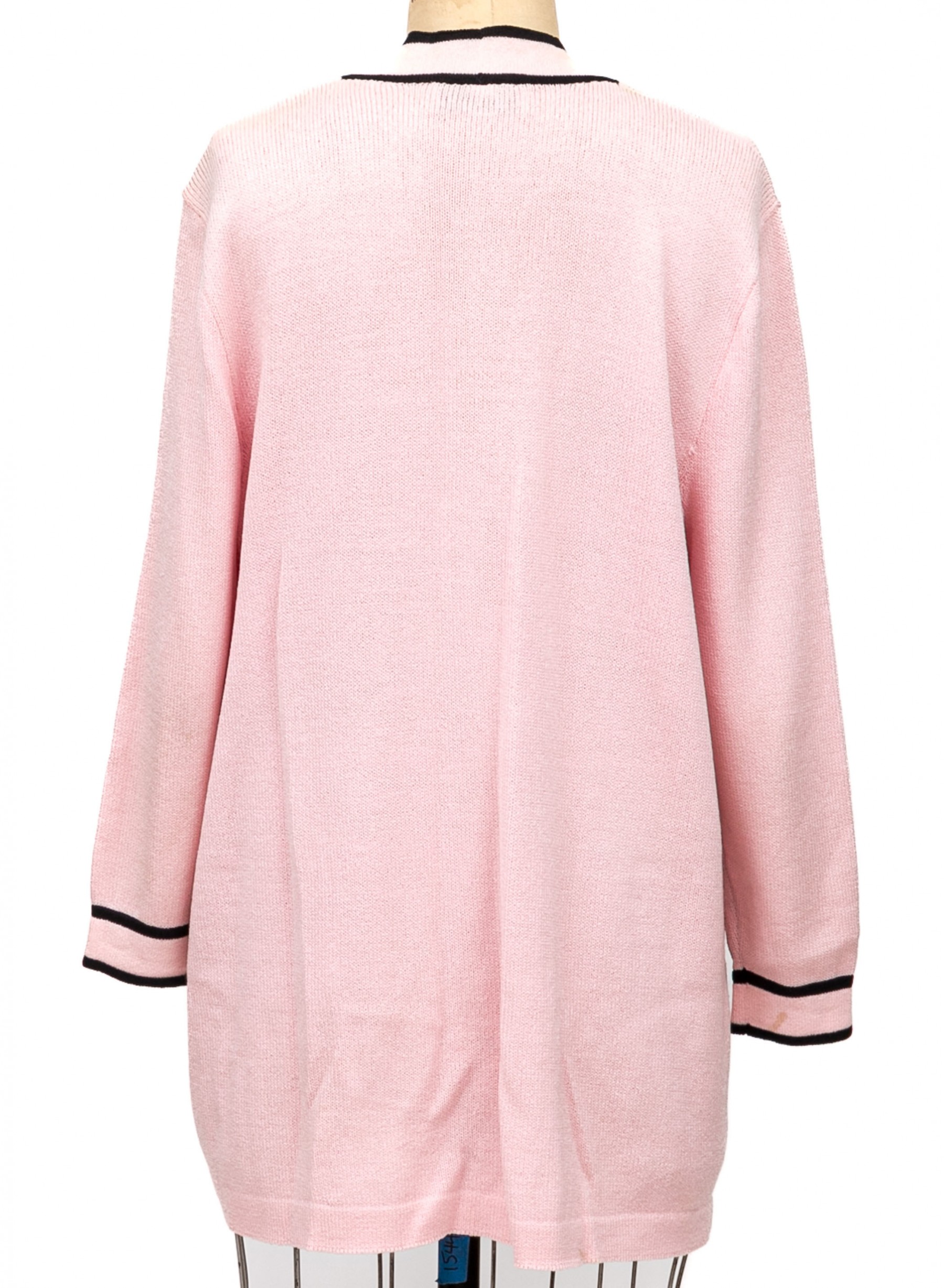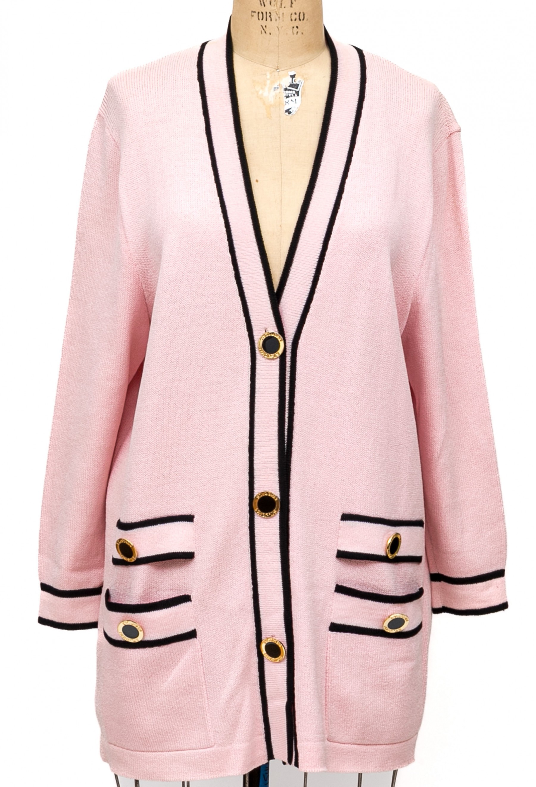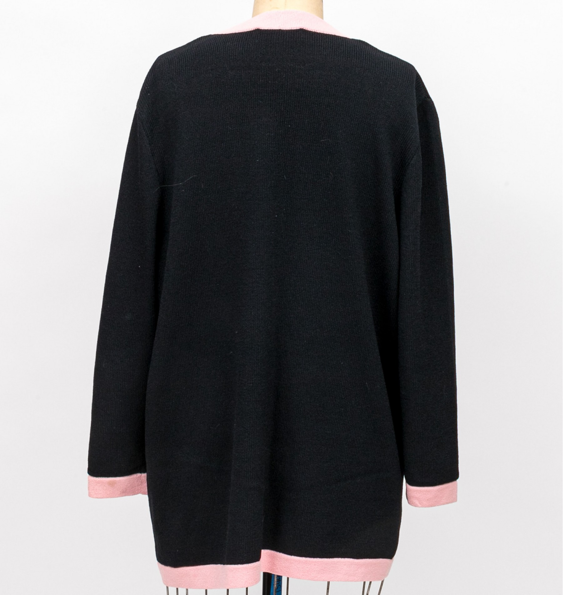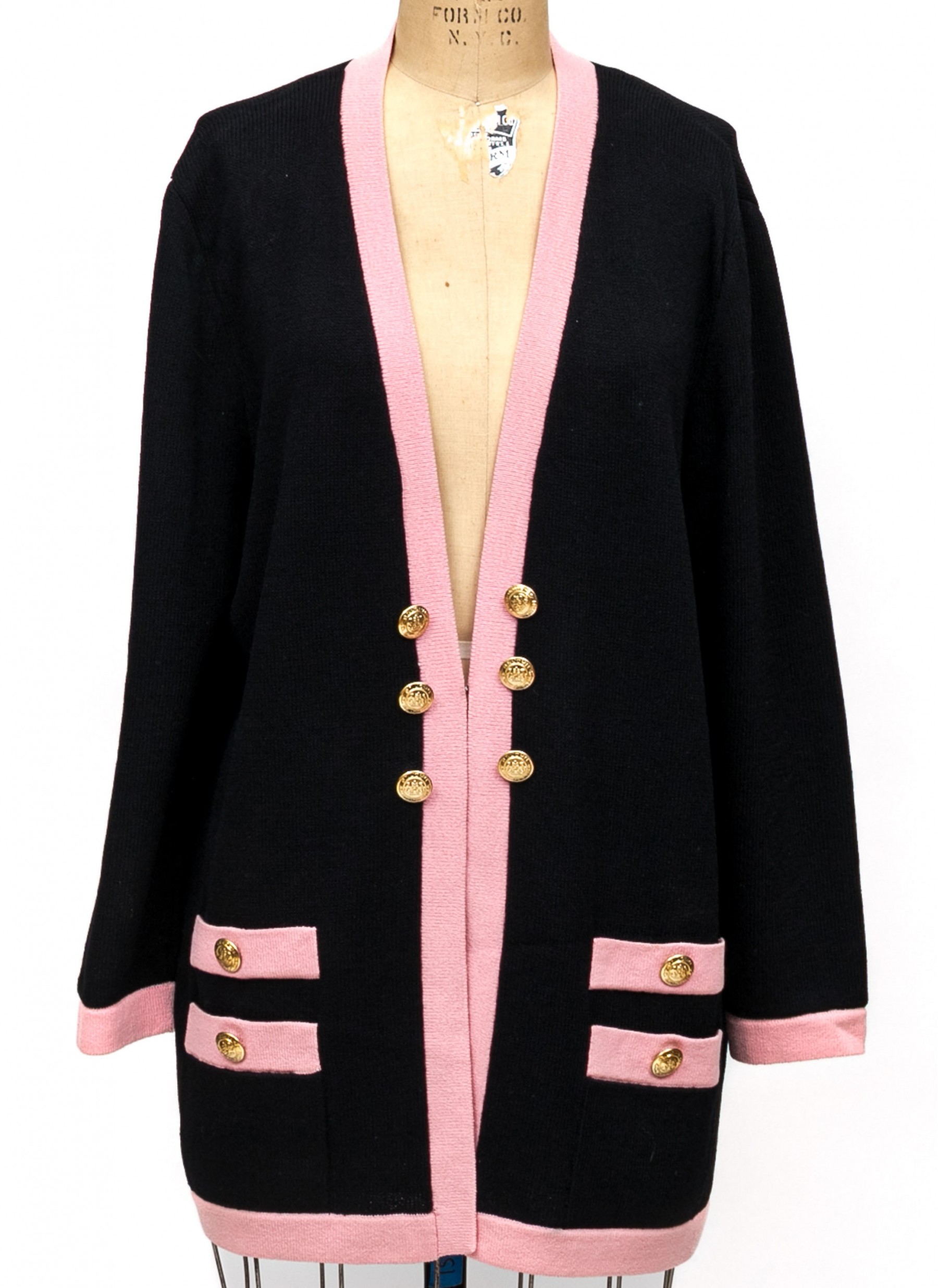 Two St. John pink and black cardigans and one pink 'V' neck sweater.