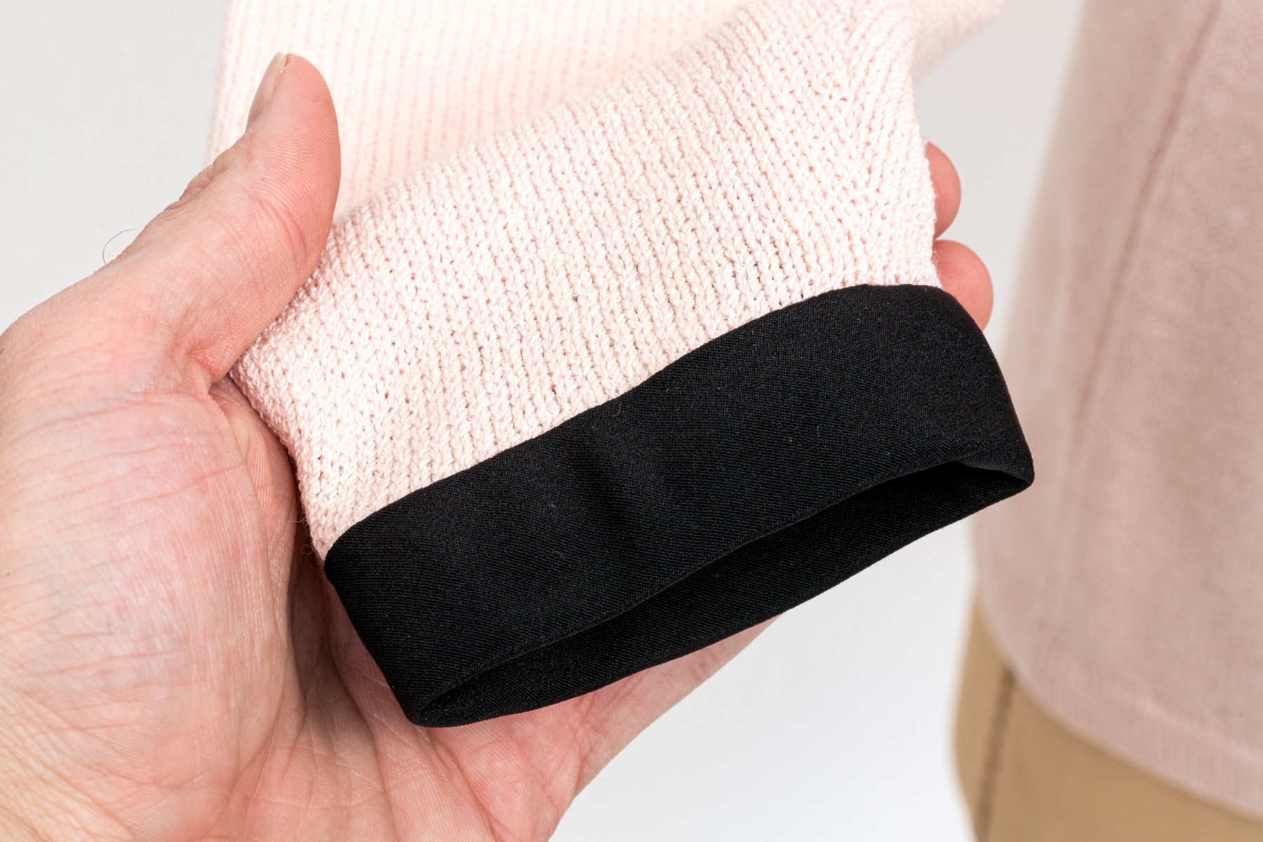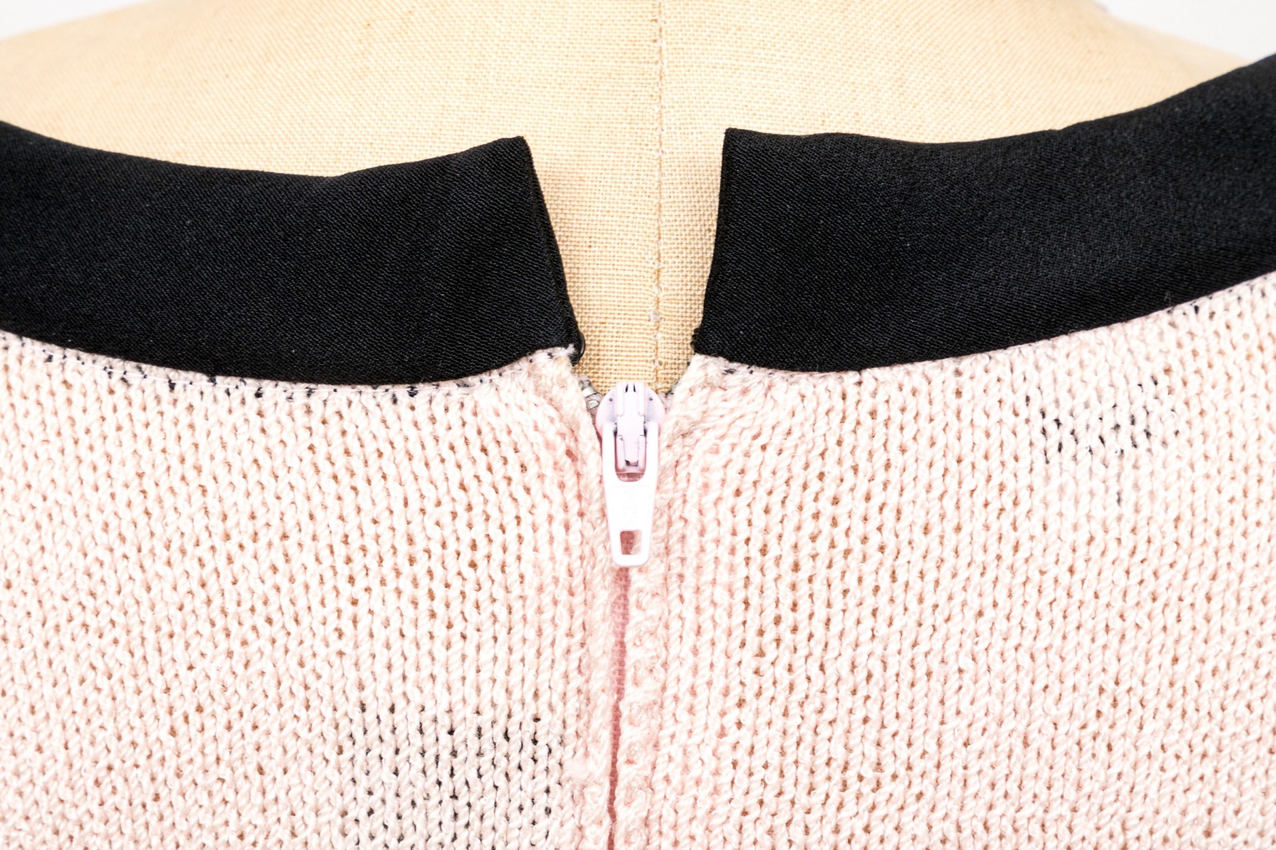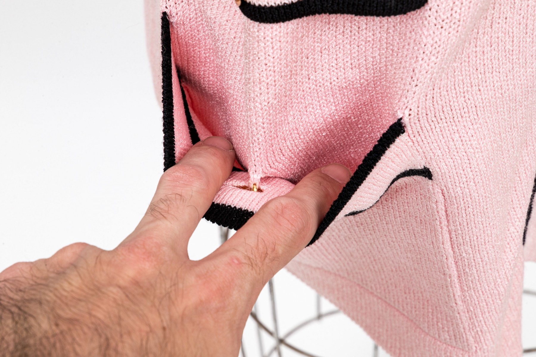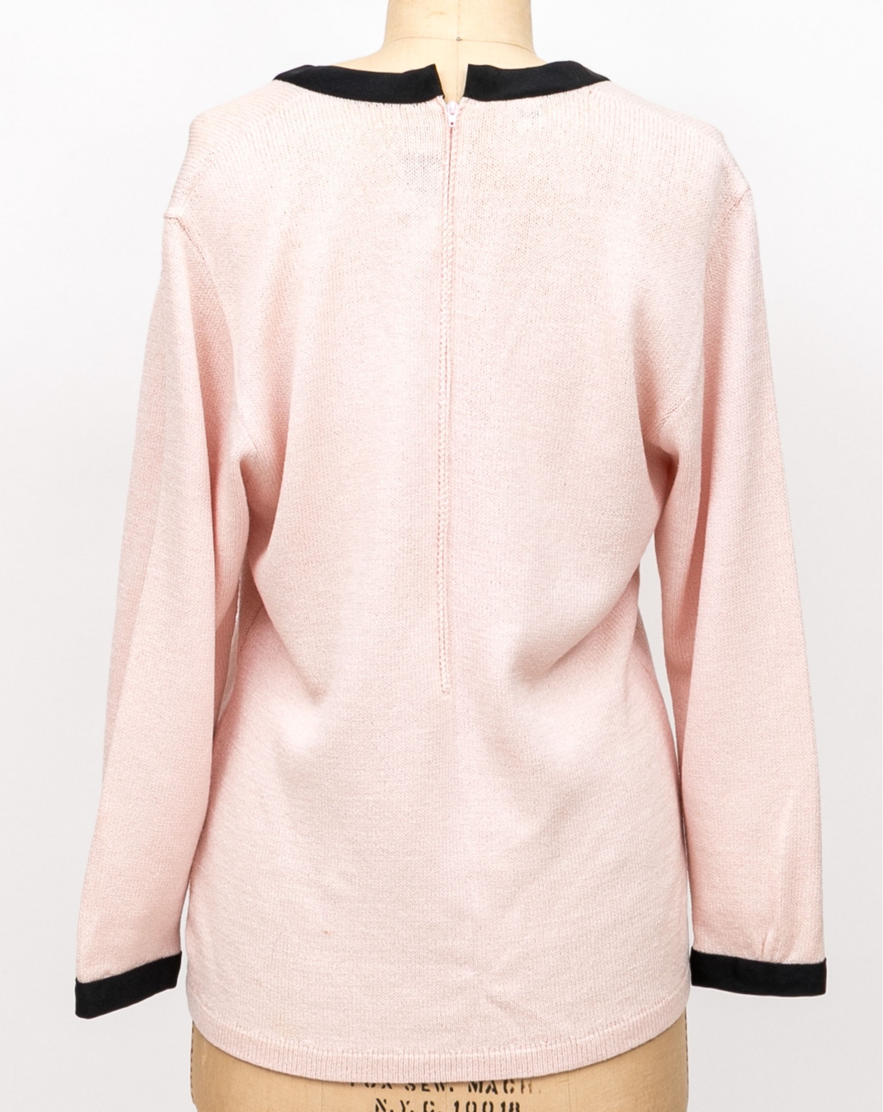 Two St. John pink and black cardigans and one pink 'V' neck sweater.