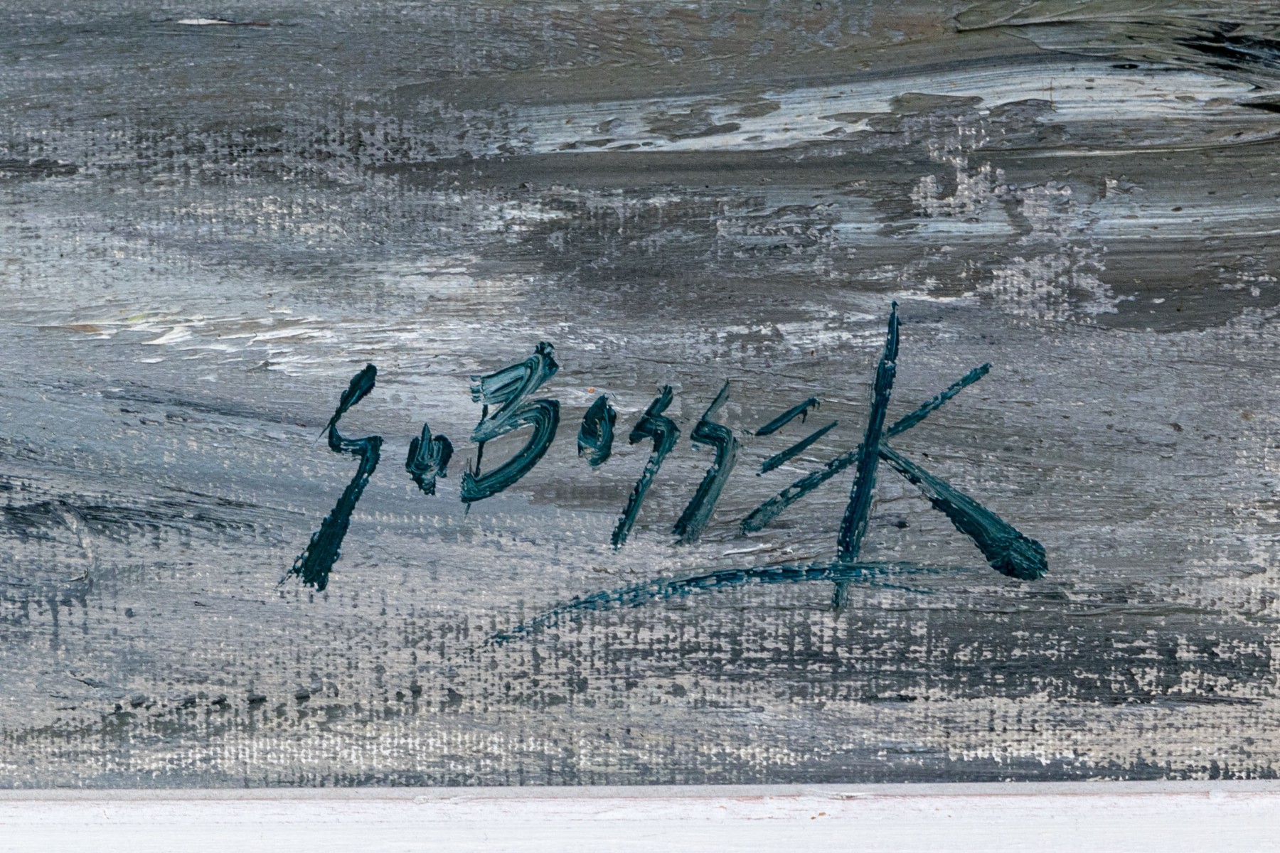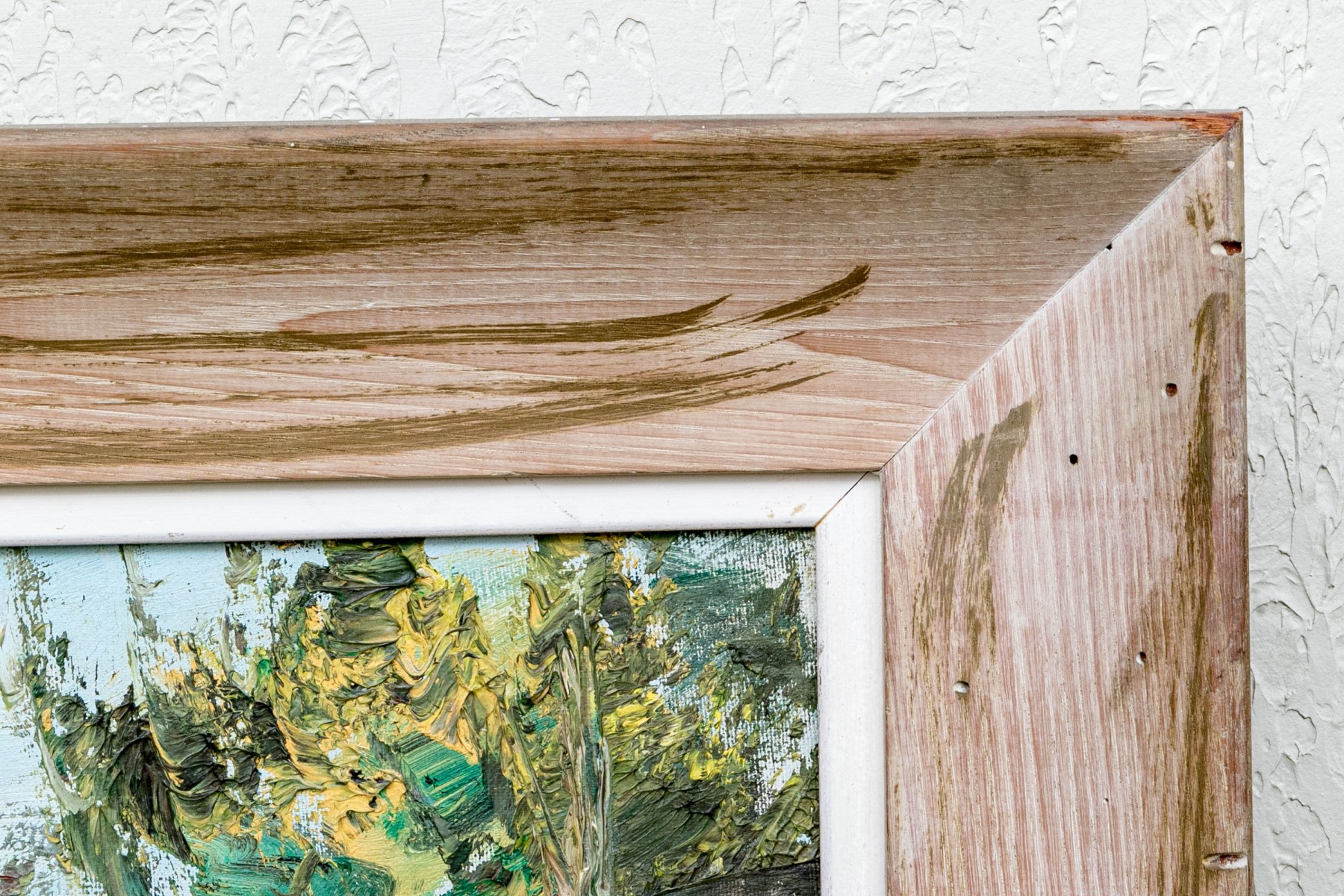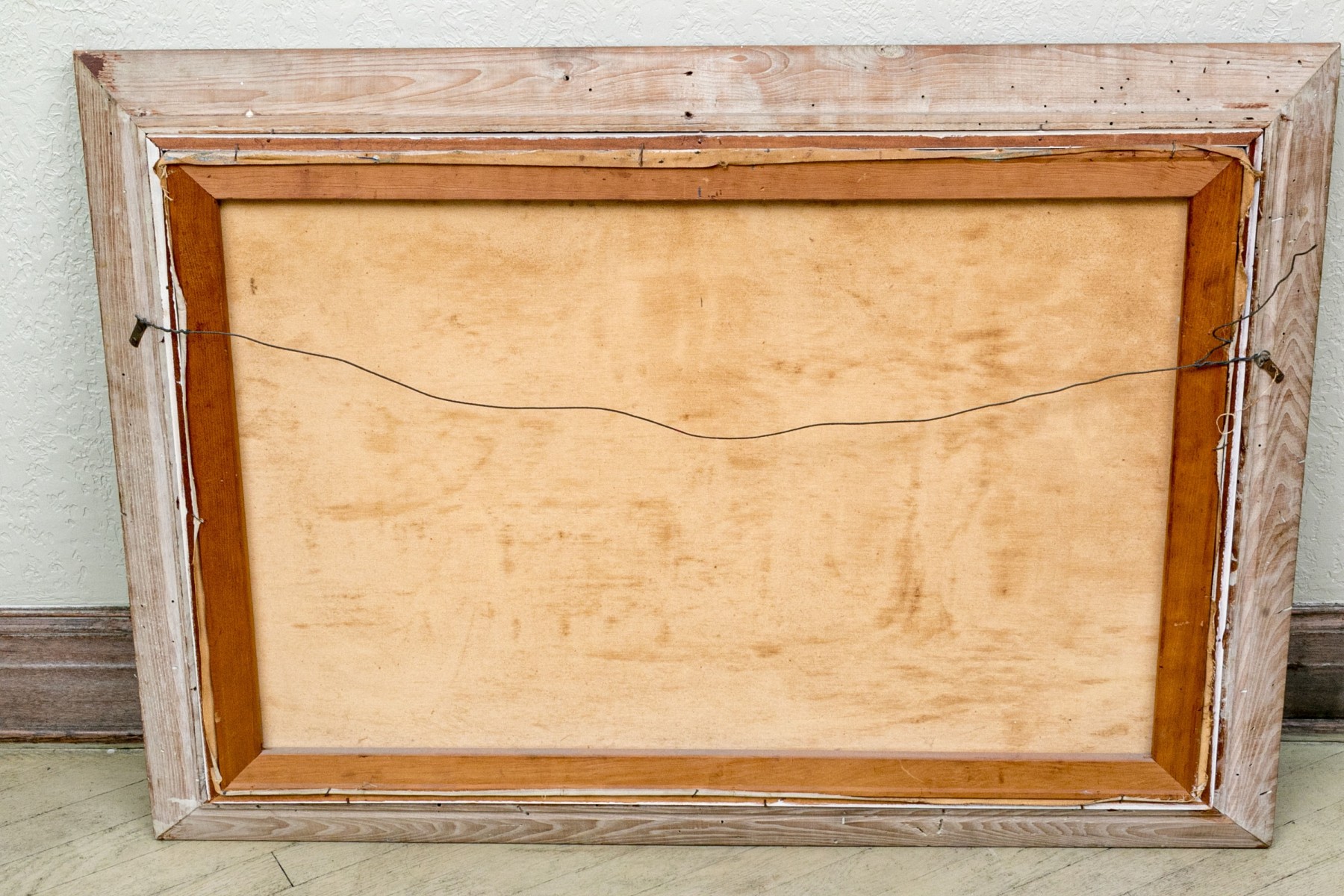 Displayed with a white linen liner in a pale wood frame with a rustic appearance complimenting the subject matter.