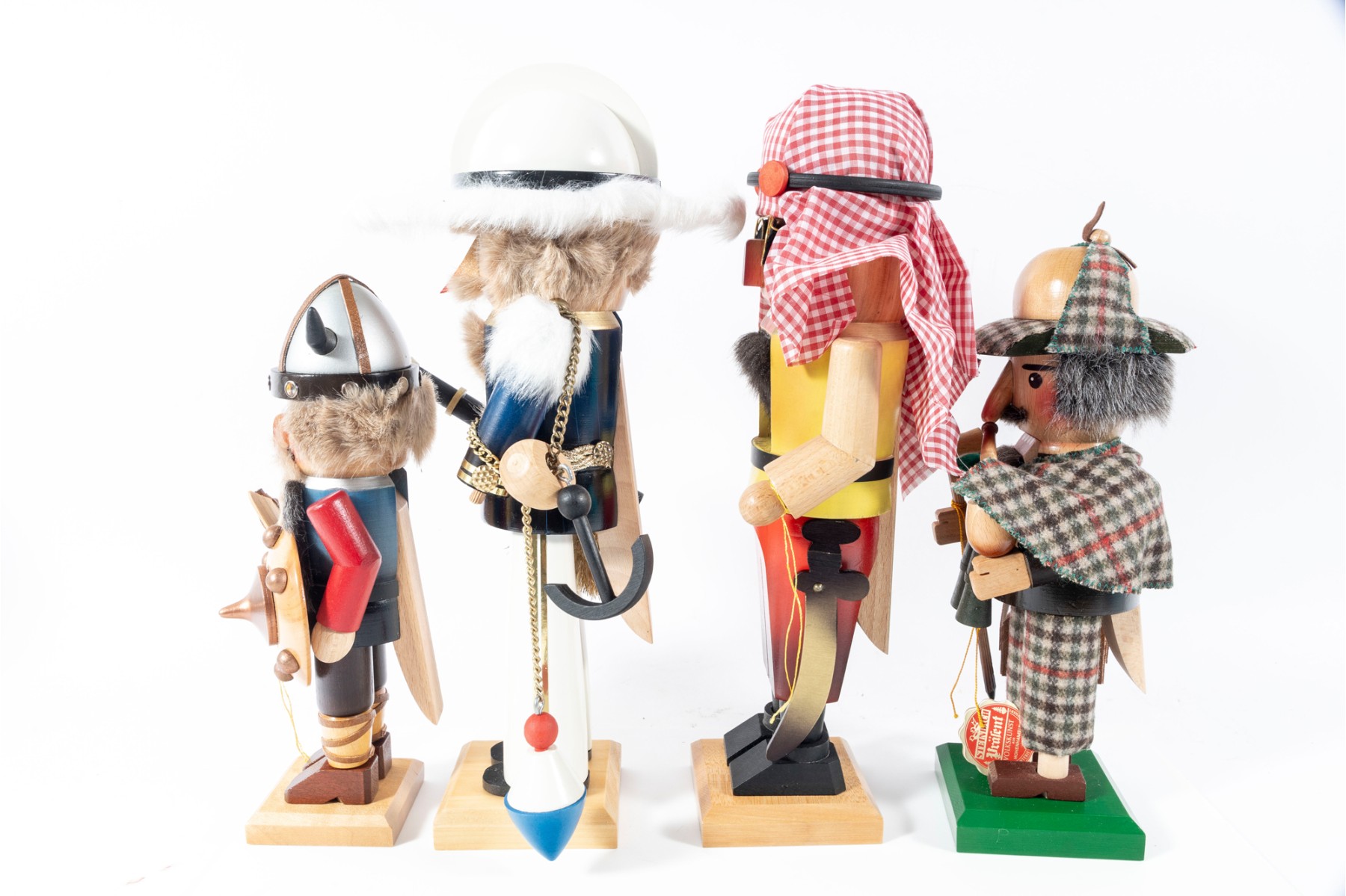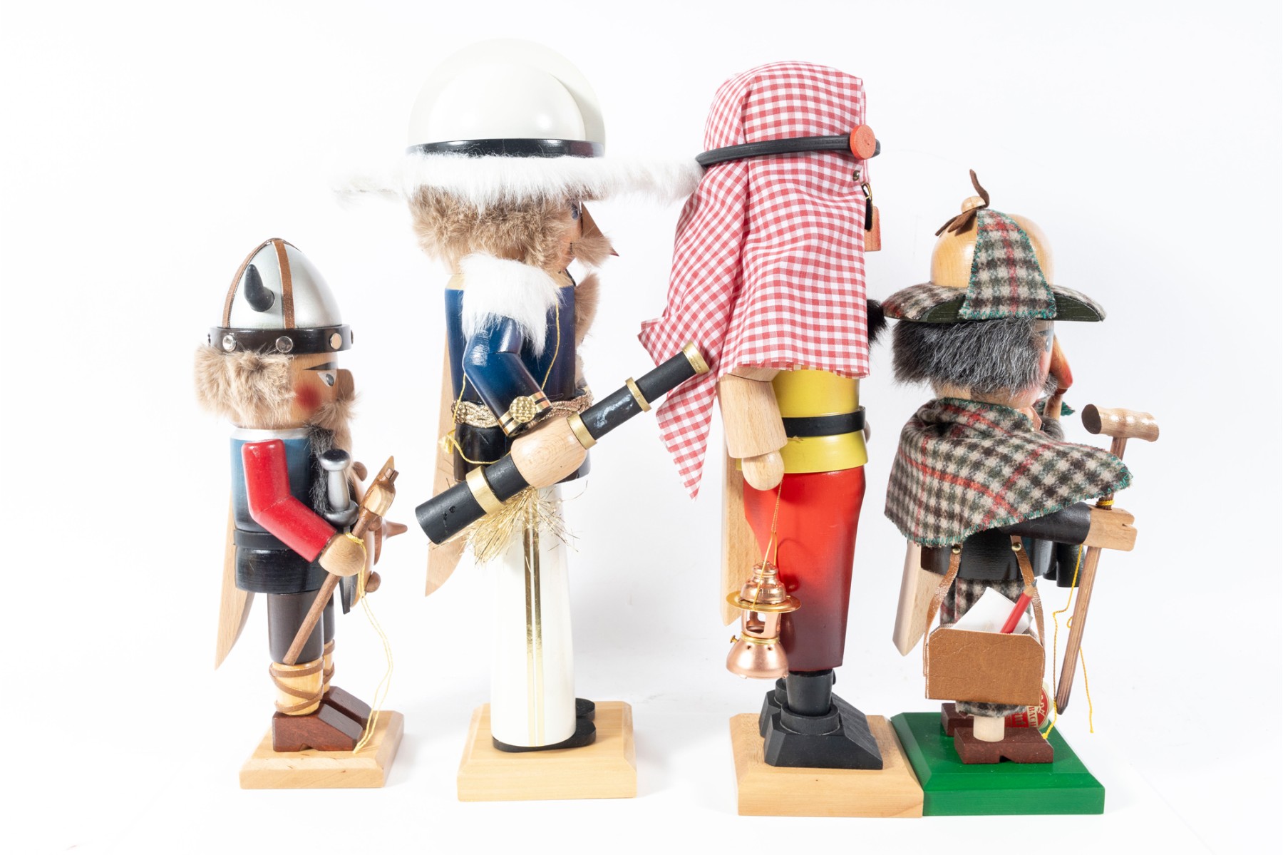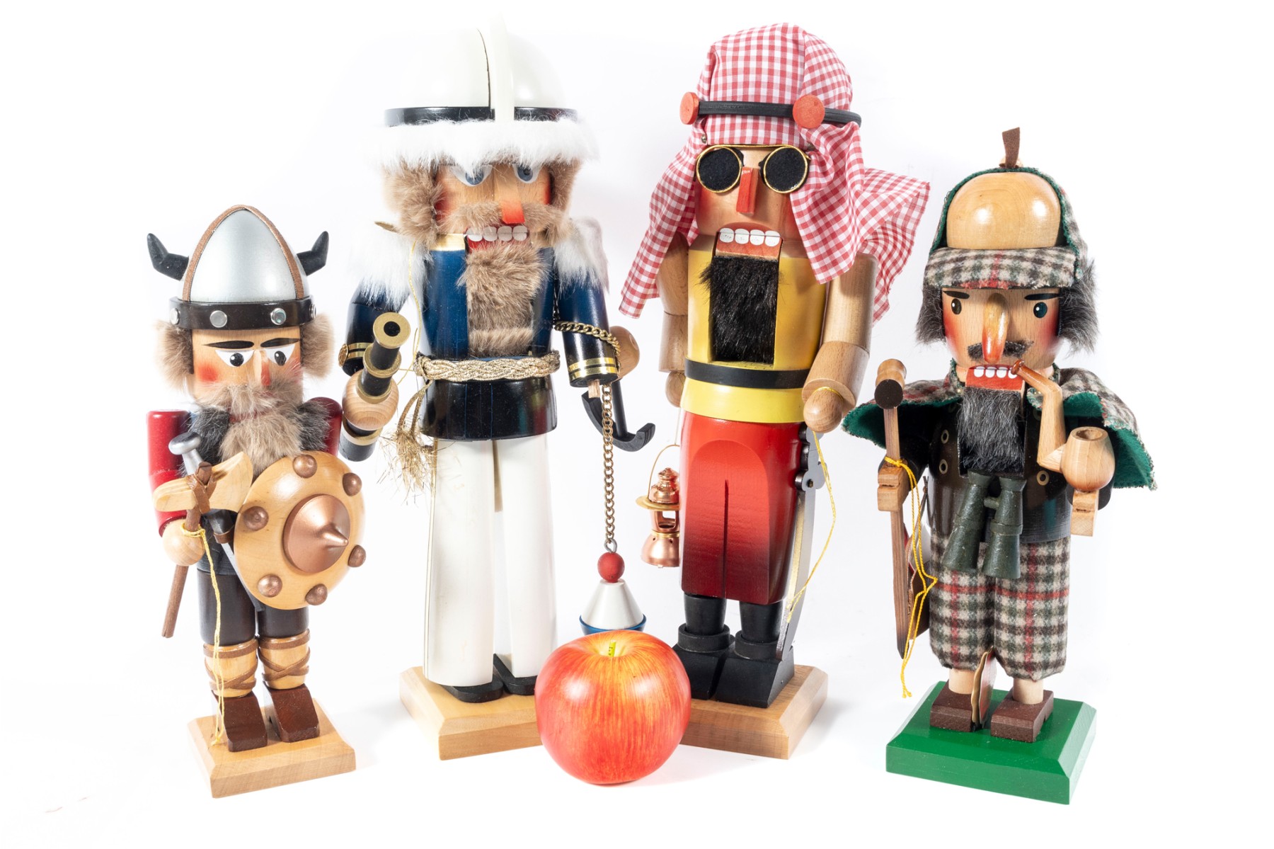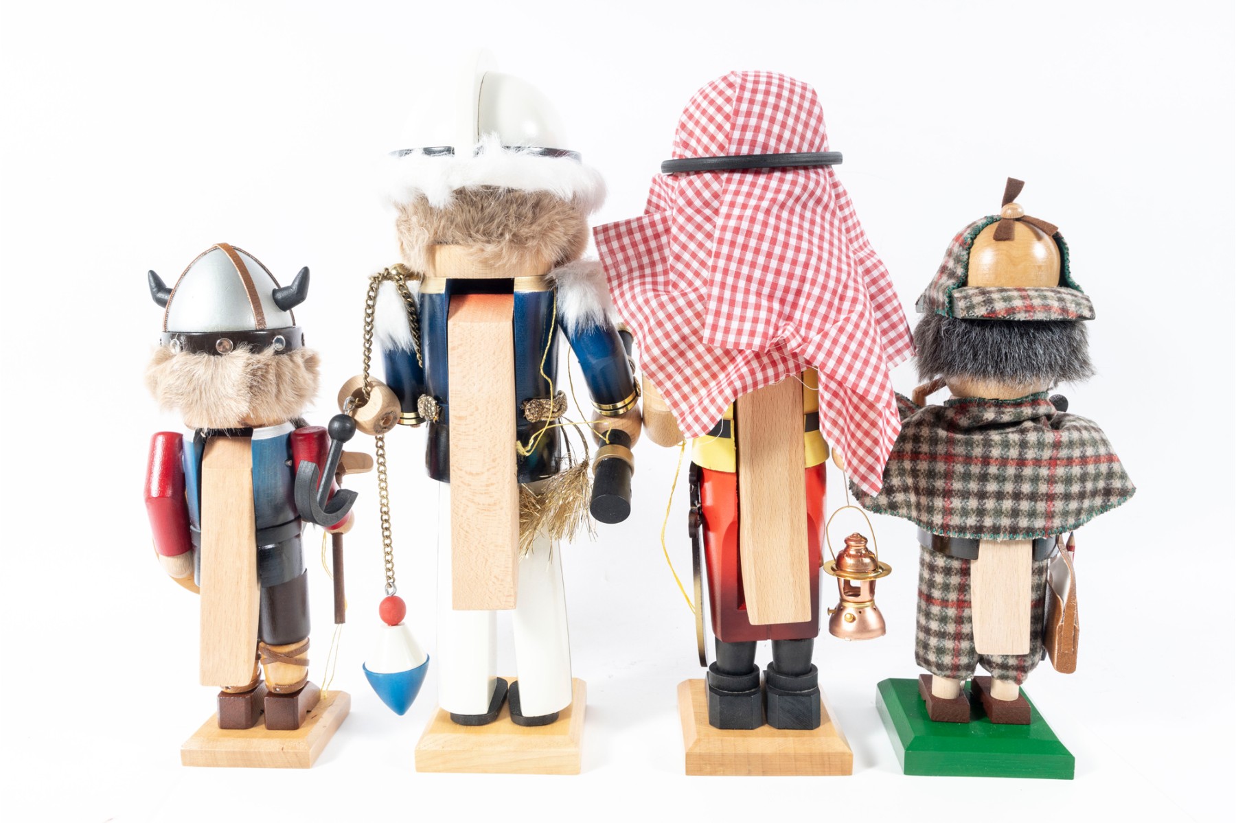 Four varied Steinbach Volkskunst nutcrackers from Marienberg, Germany. Steinbach is a manufacturer of the finest wooden works of art such as nutcrackers.