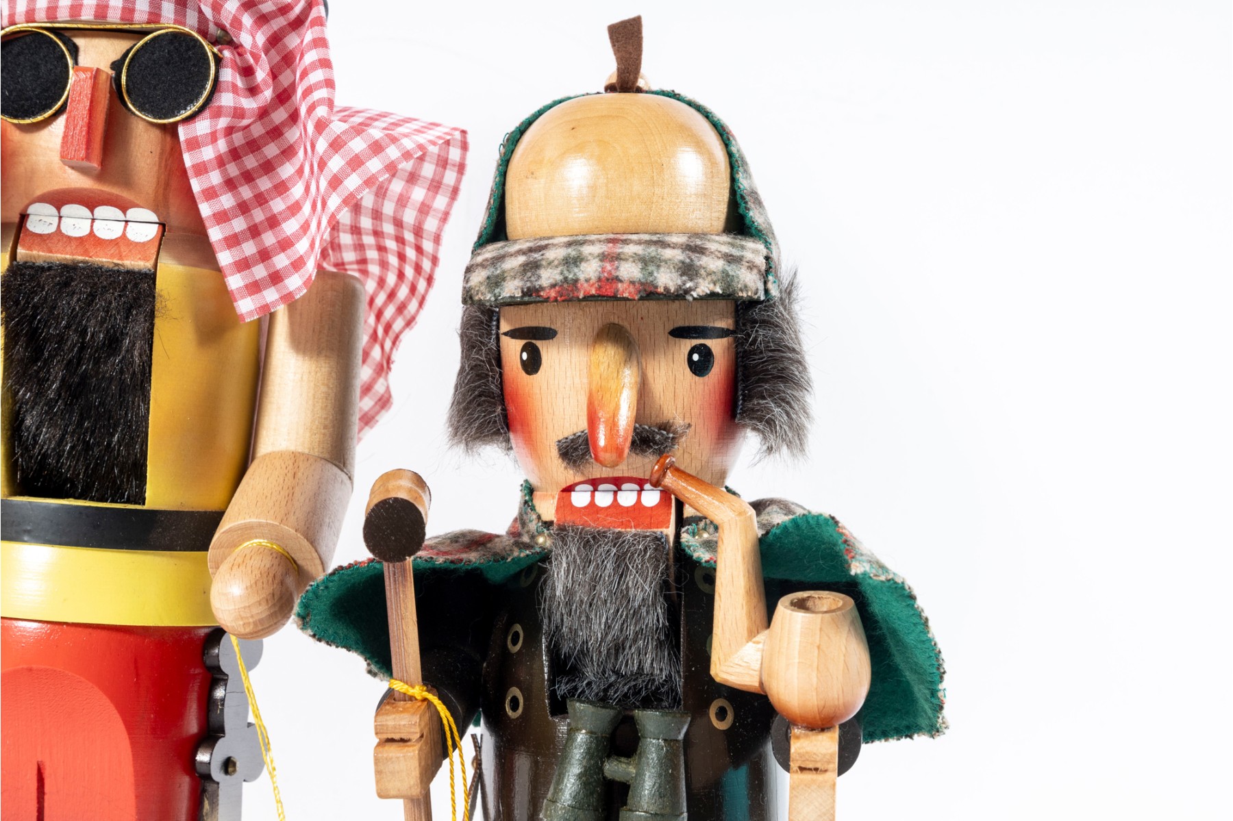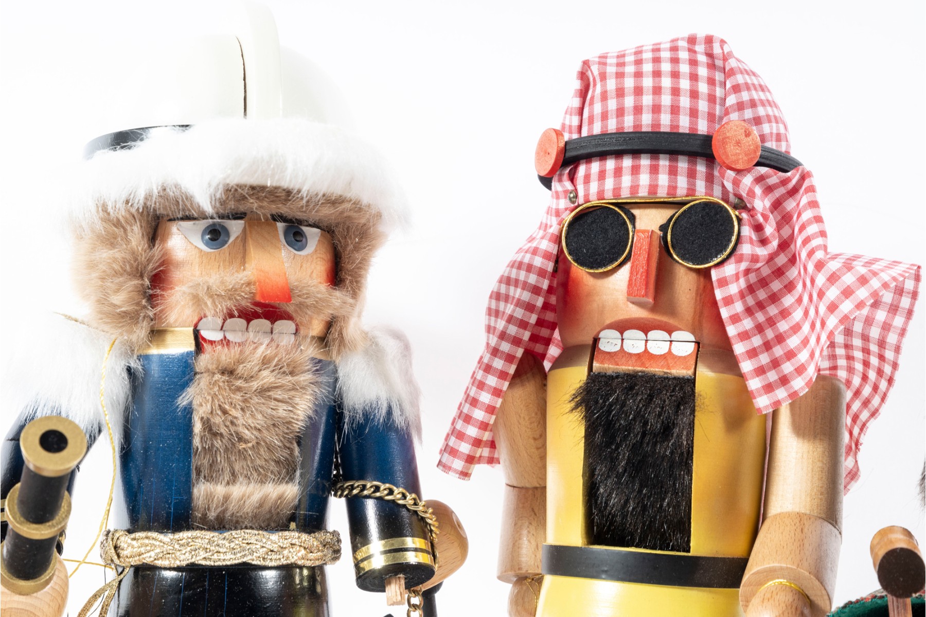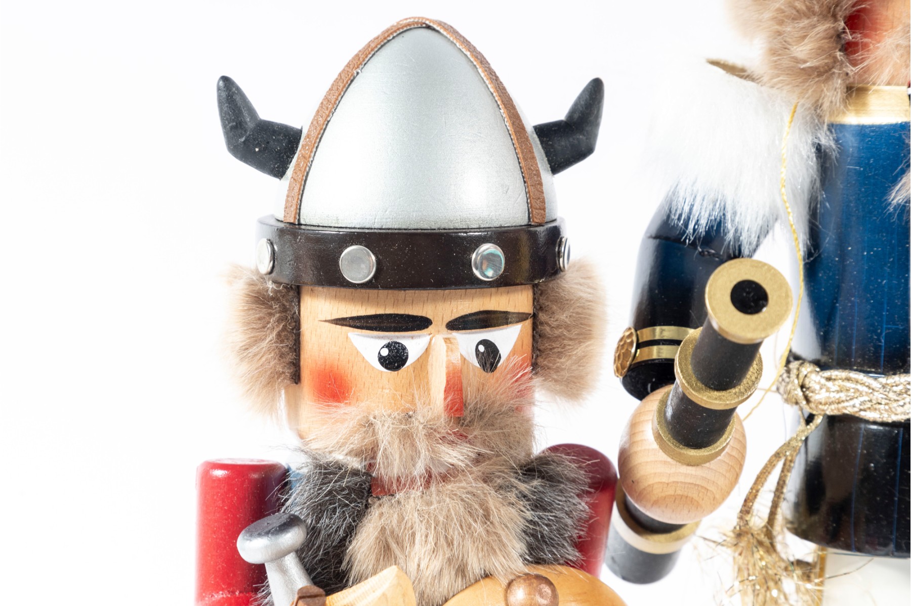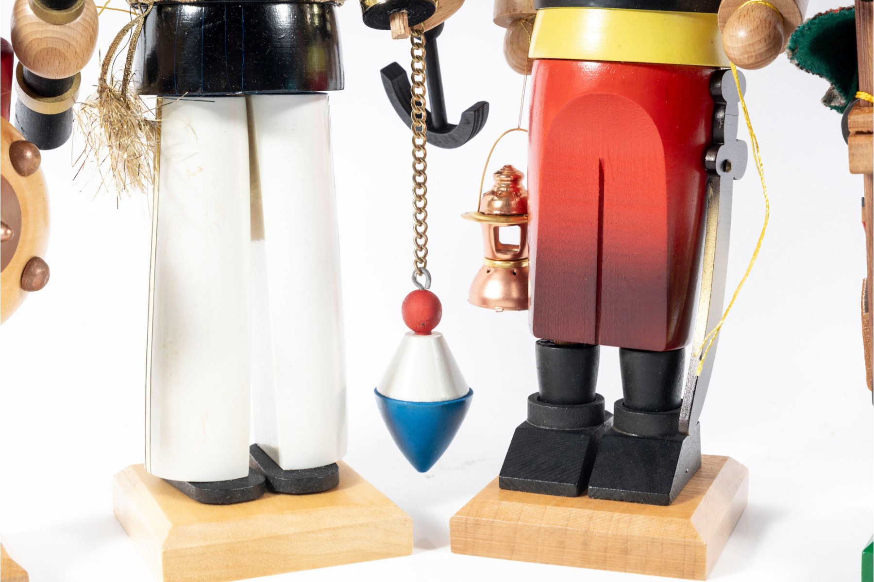 Four varied Steinbach Volkskunst nutcrackers from Marienberg, Germany. Steinbach is a manufacturer of the finest wooden works of art such as nutcrackers.