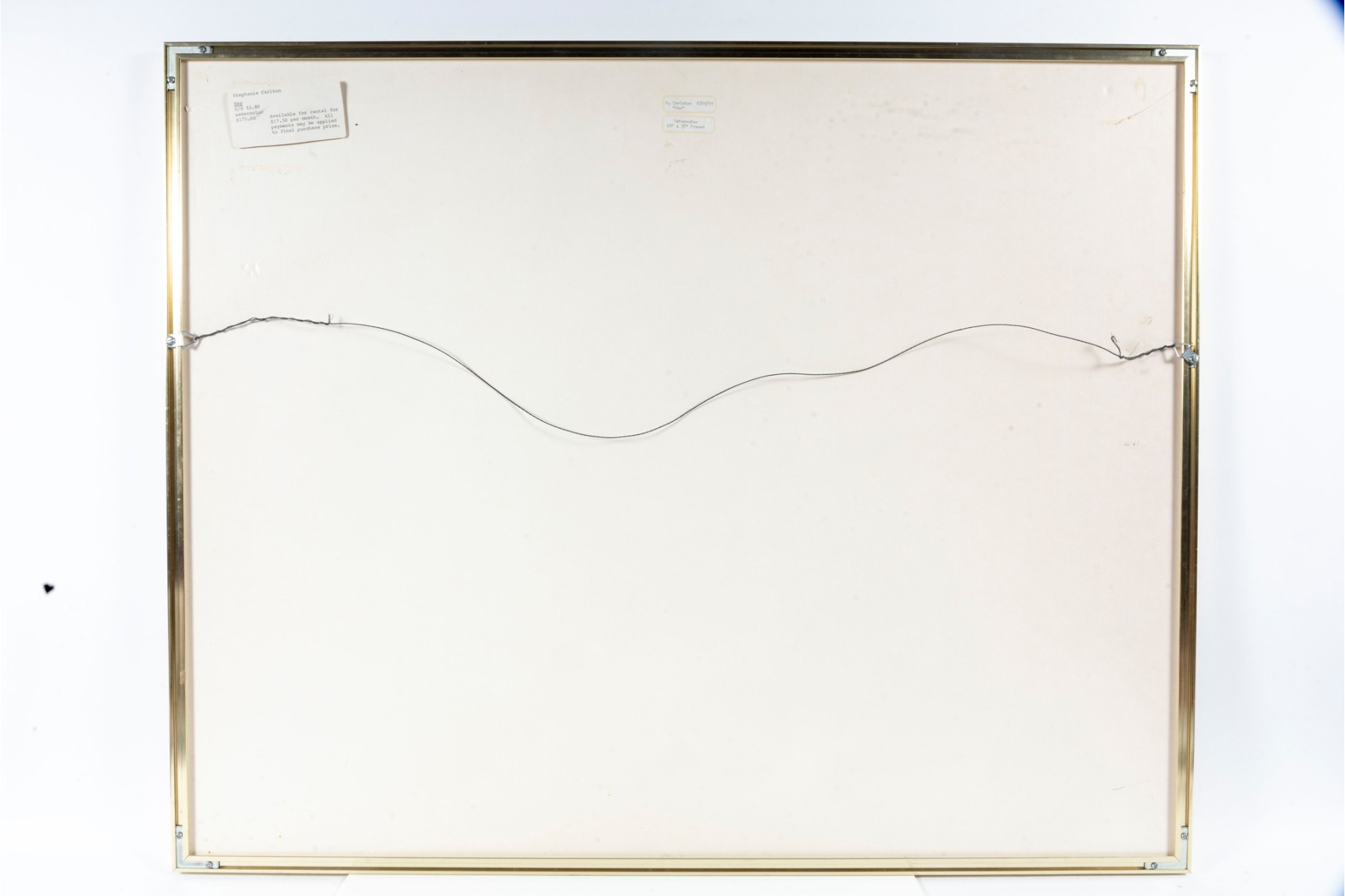The artwork is contained in a metallic frame, protected behind glass and accented with an off-white mat-border.