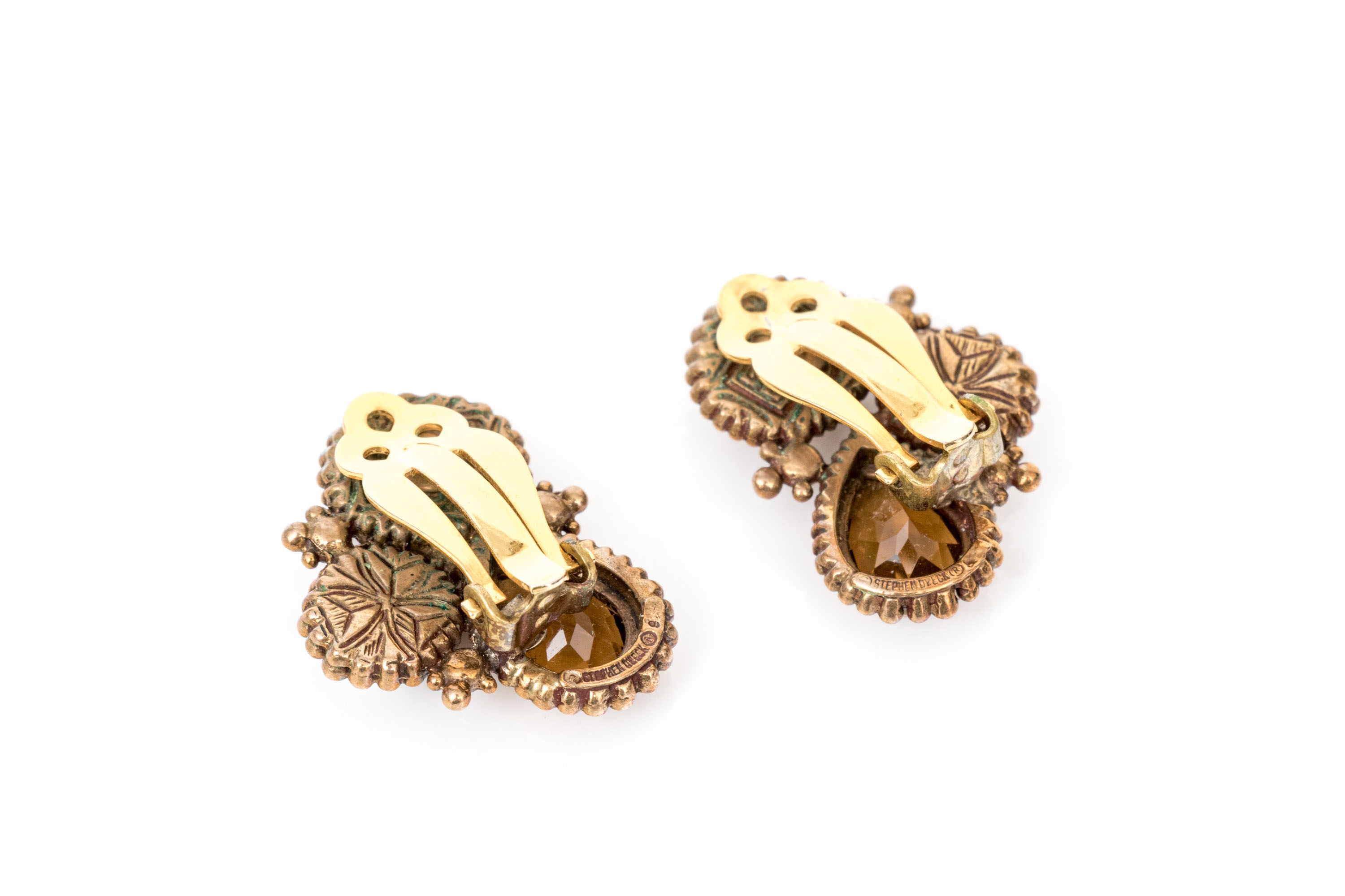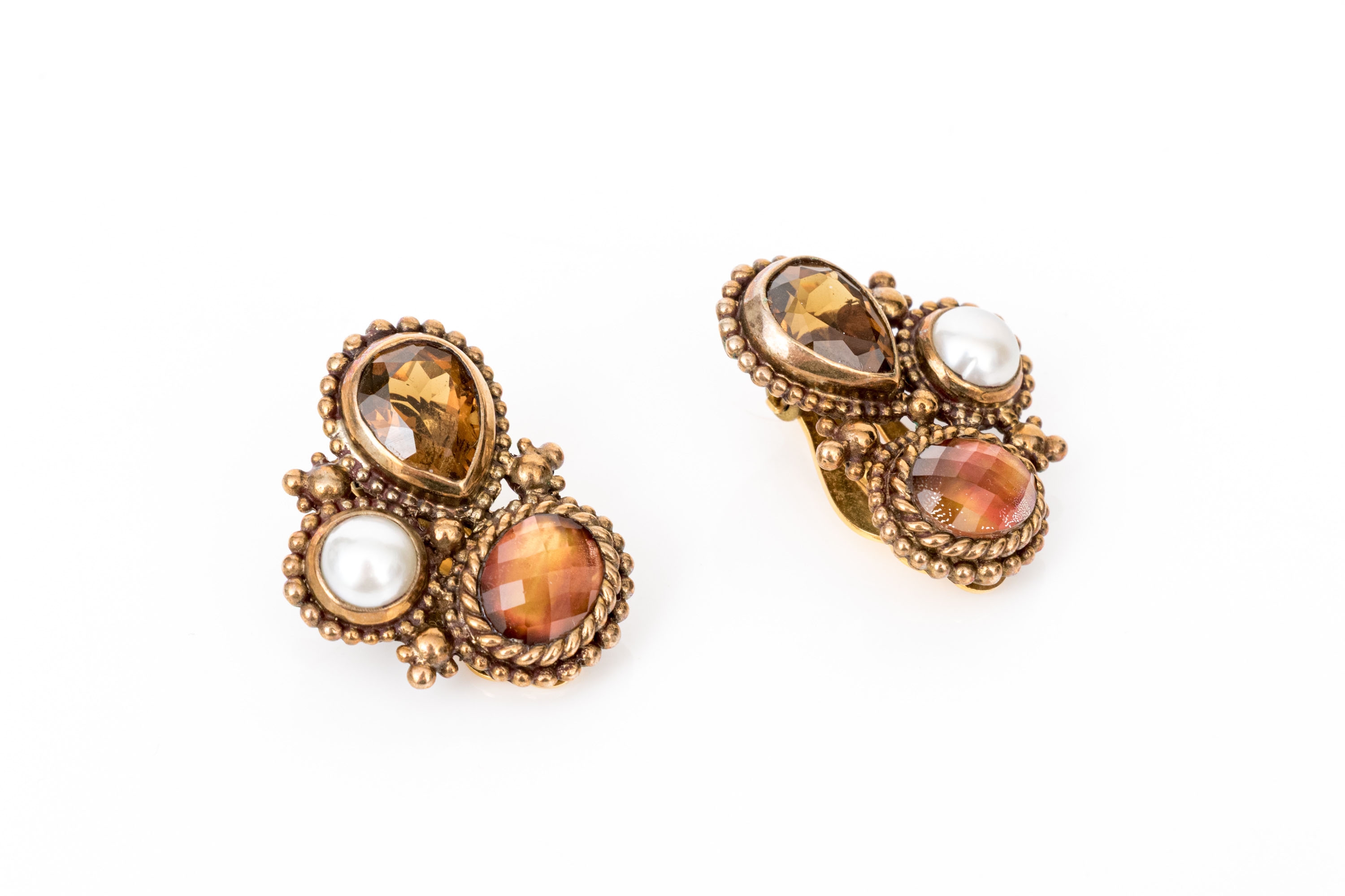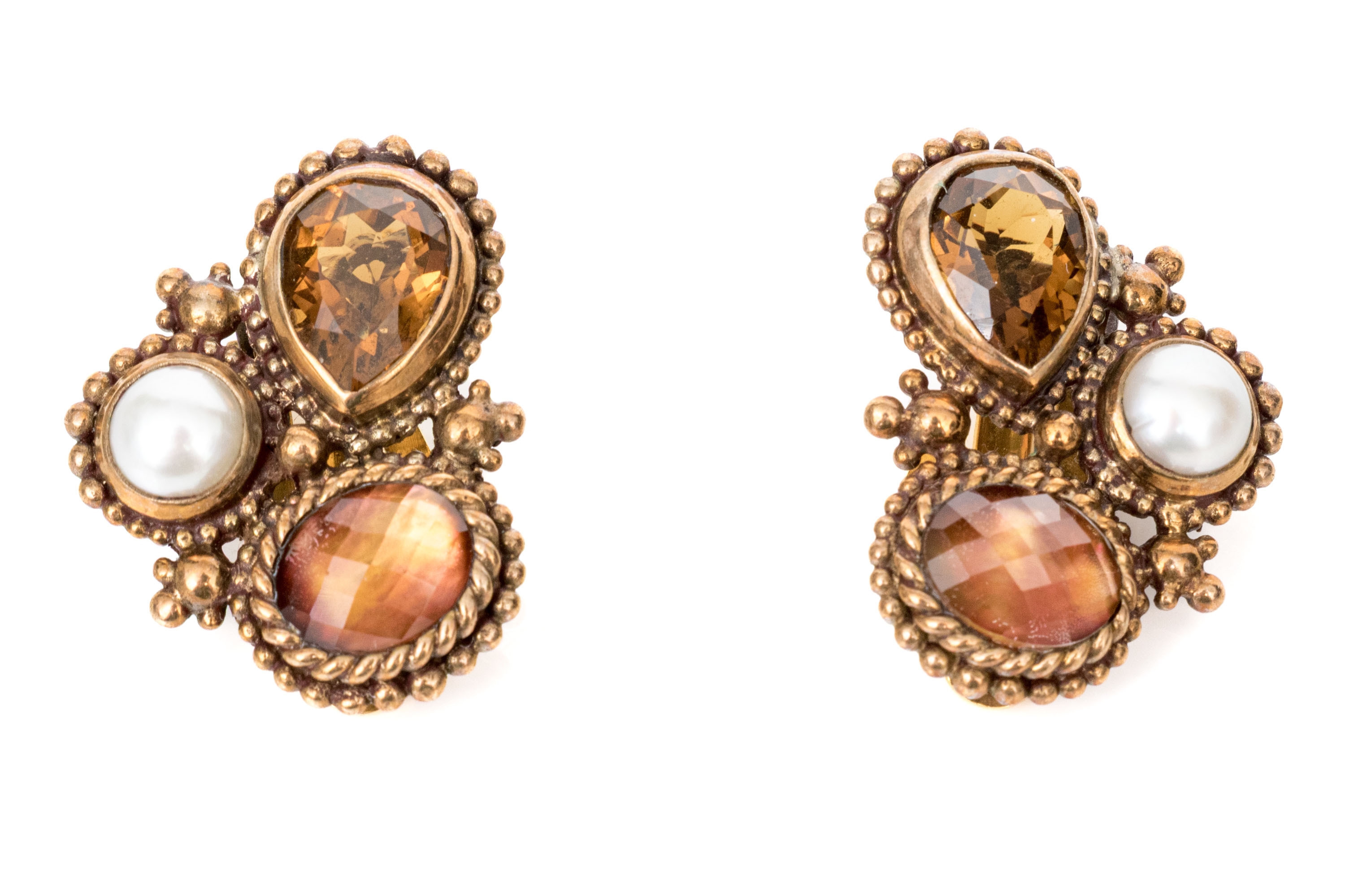 Stephen Dweck fabulous citrine, quartz and cultured freshwater pearl costume jewelry earrings, clip on style, no posts