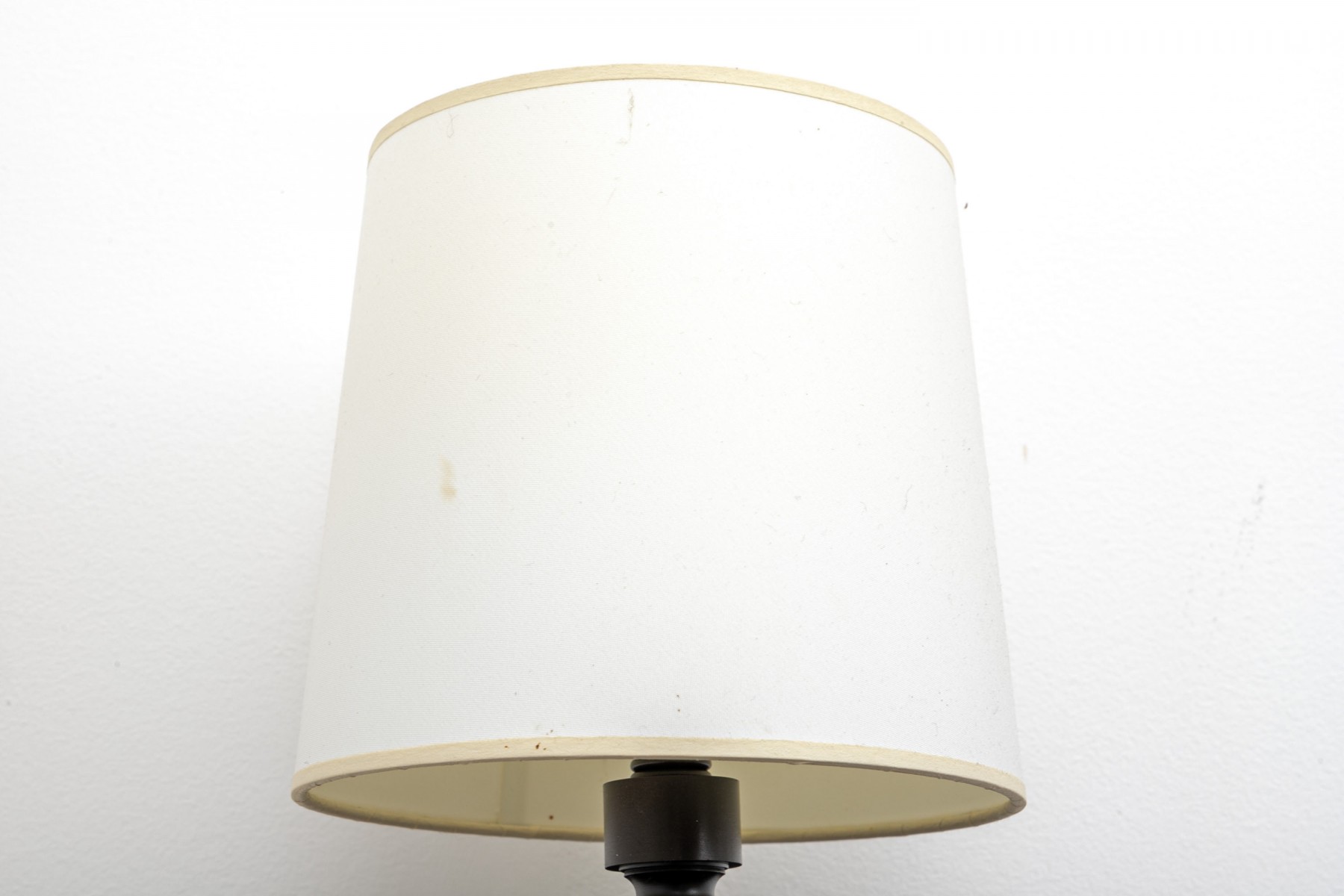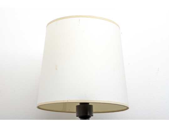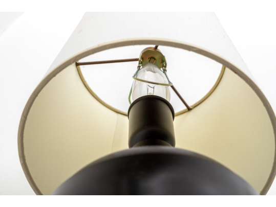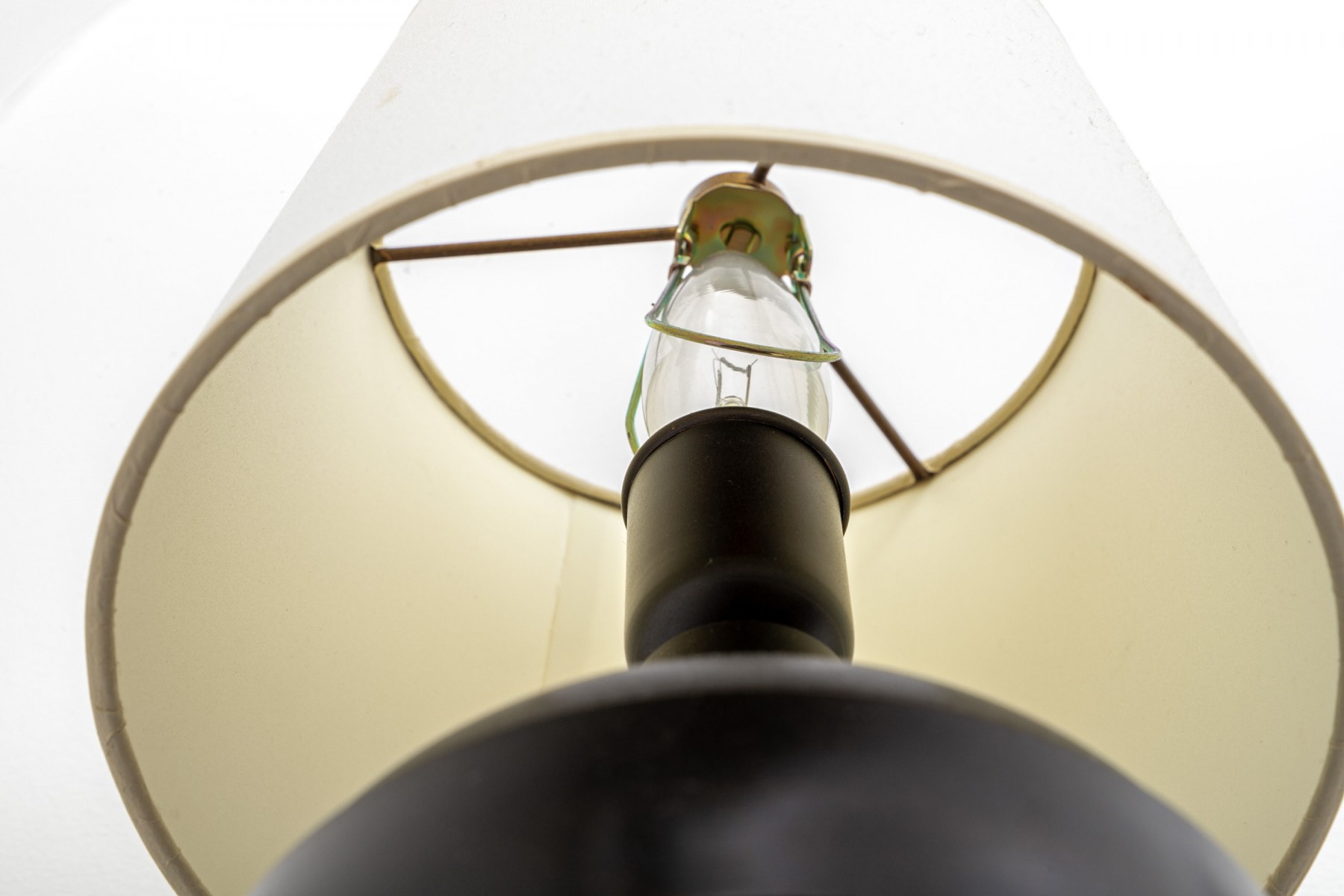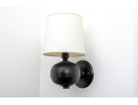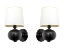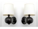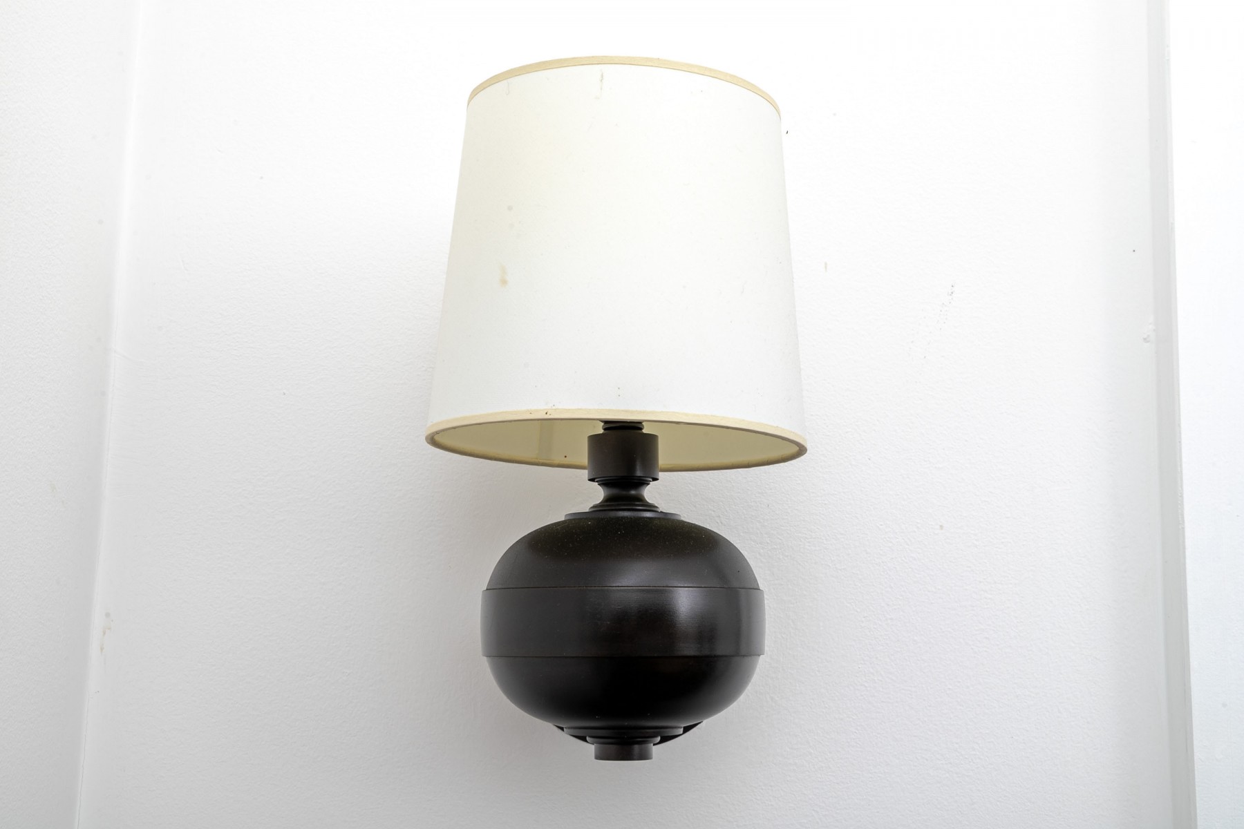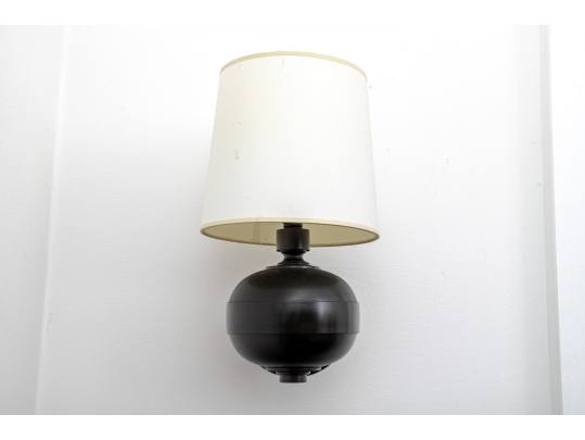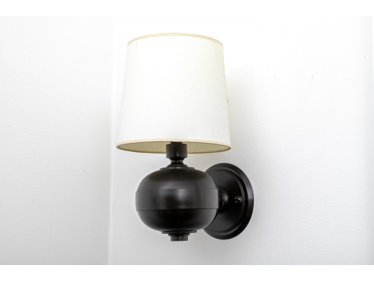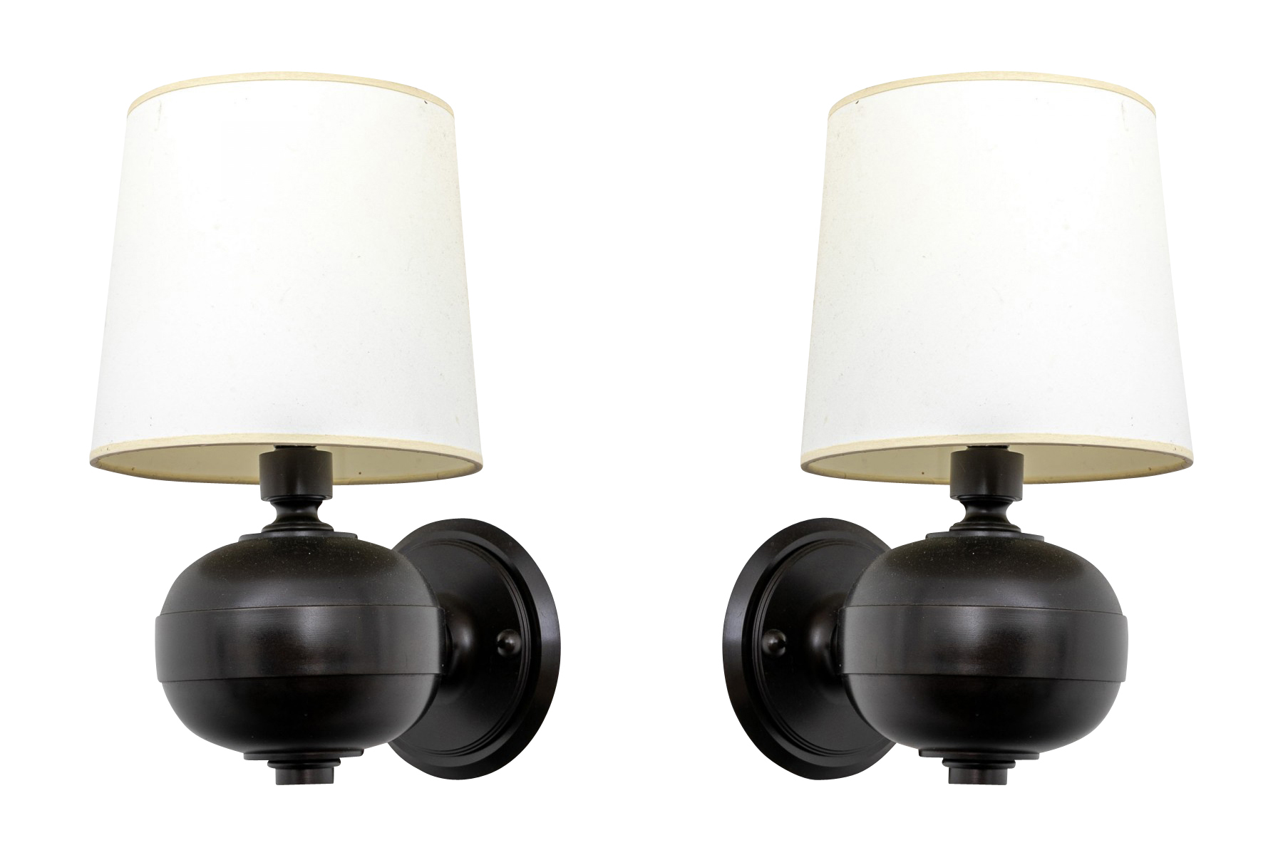 These sconces by Stephen Mc Kay have a substantial round lamp in a bronze finish. Each with an ecru shade to defuse the light. These cost $2400 new.