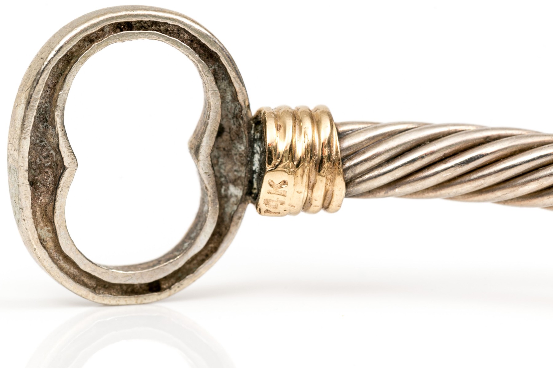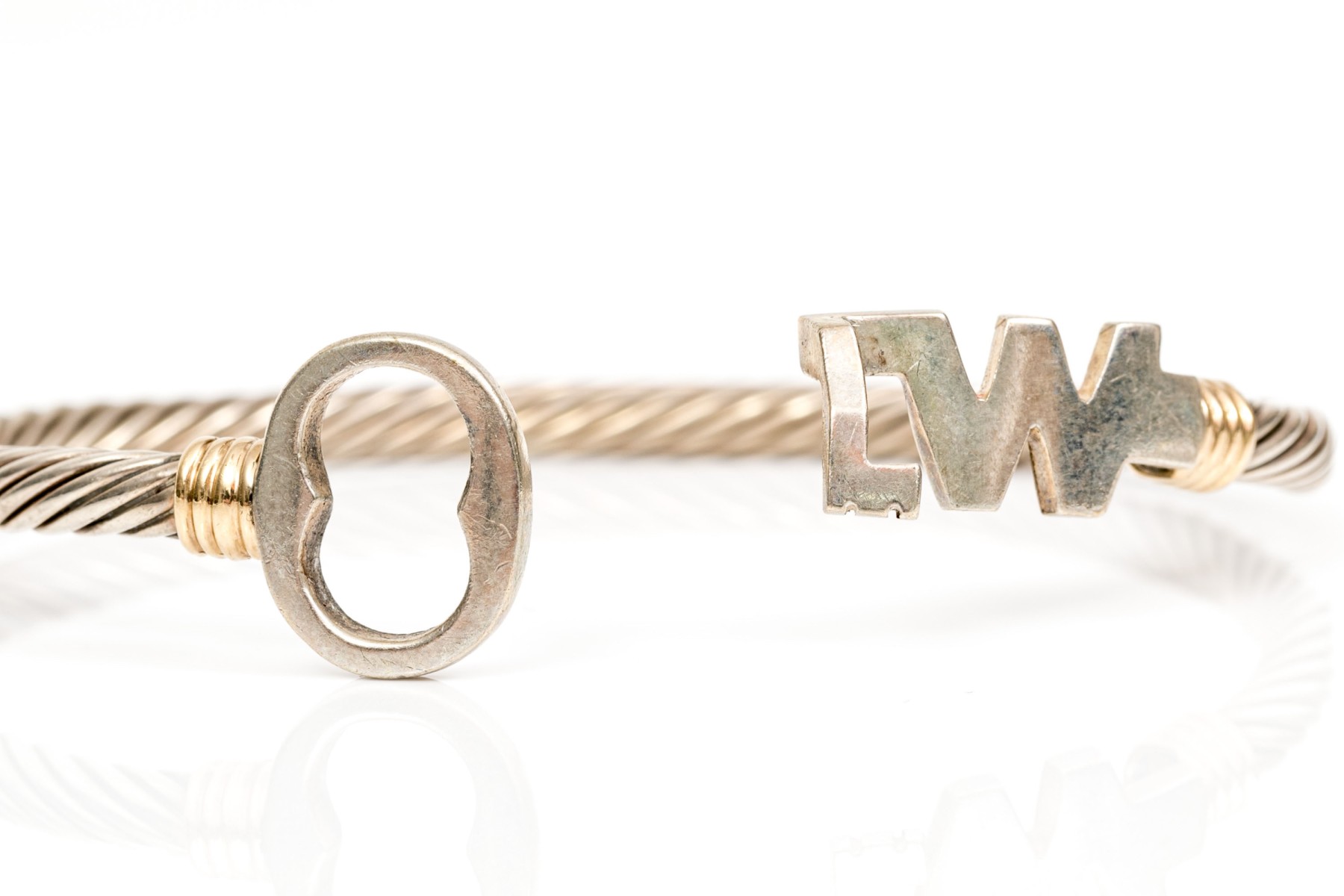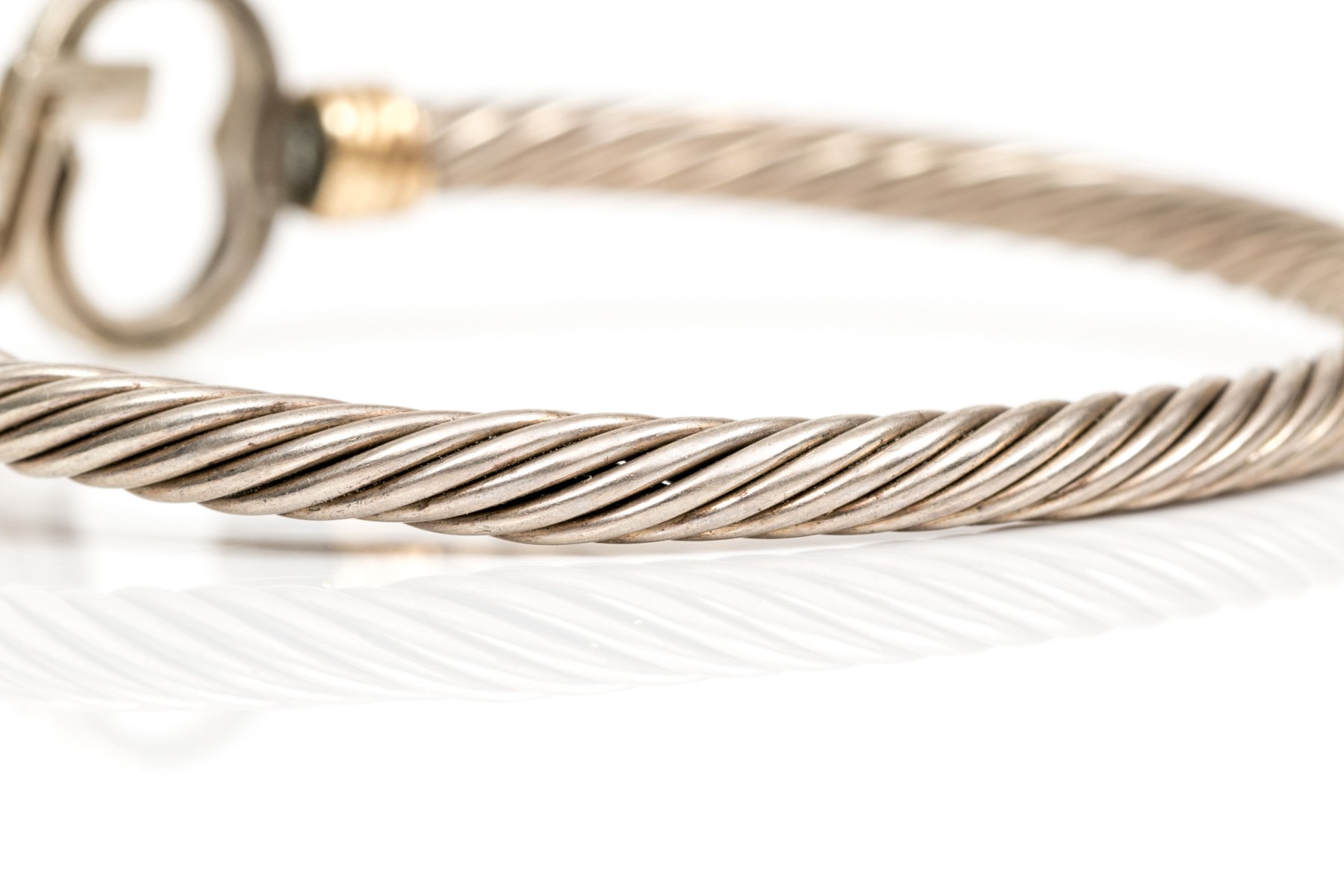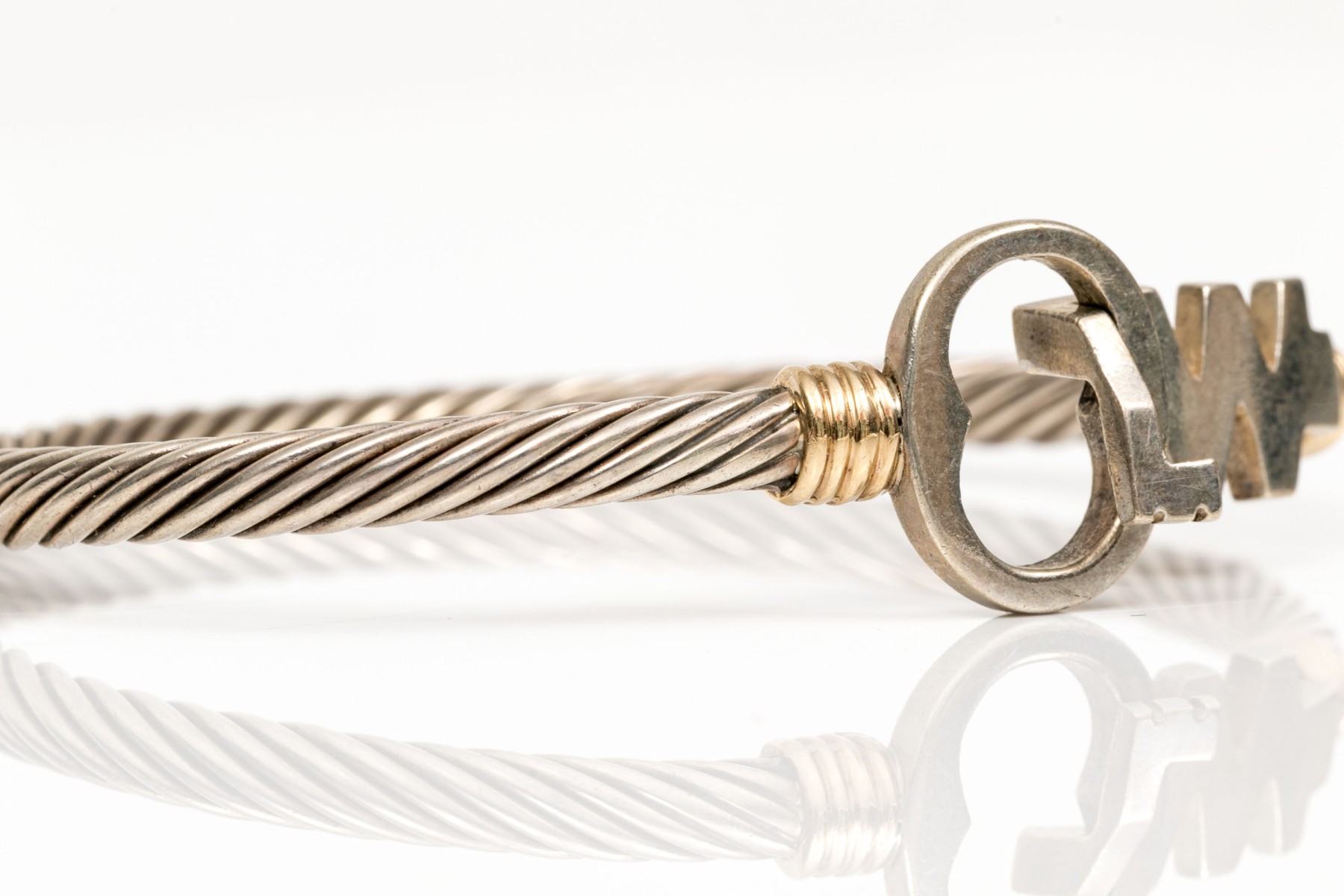 Sterling And 14k Unique Cable Cuff Bracelet With Retrofit Initial Clasp #330118. Black Rock Galleries provides high end estate liquidation services through online estate auctions and a 50,000 sq ft designer showroom. estate liquidator, estate sale, online auction, antiques, fine art, liquidation, clean outs, auction, consignment, interior design, fine jewelry, collectibles, appraisals, estate appraisals, estate services, decor, furniture, furniture consignment, antique center, consignment shop. We offer appraisal services and specialize in fine art, jewelry, antiques and decorative arts. Sell with us. Black Rock Galleries is the tri-state's largest estate liquidator serving New England and the greater New York City area. We are the trusted source for expert appraisals, auction services, estate sales, and consignments. Black Rock Galleries is the east coast's largest and most trusted estate liquidator, with locations in Connecticut, greater Boston, MA and Raleigh, NC, Fairfield, Southport, Apex, TX. We are the best source for expert appraisals, auction services, estate sales and consignments. We have served thousands of families and estates with compassion, professionalism and expertise. BRG works with attorneys, executors, realtors and families to bring the greatest return on personal and estate property in the current market. Our unique combination of services make us the easy choice to get the job done in a timely and stress-free manner. We are with you from the initial consultation to the final clean out. Our house-built online auction software platform offers clients a dynamic approach to liquidating their personal property. This venue is most successful in bringing the best return with the least amount of disruption for our clients. See our services page for a complete description of this offering. Sterling And 14k Unique Cable Cuff Bracelet With Retrofit Initial Clasp #330118