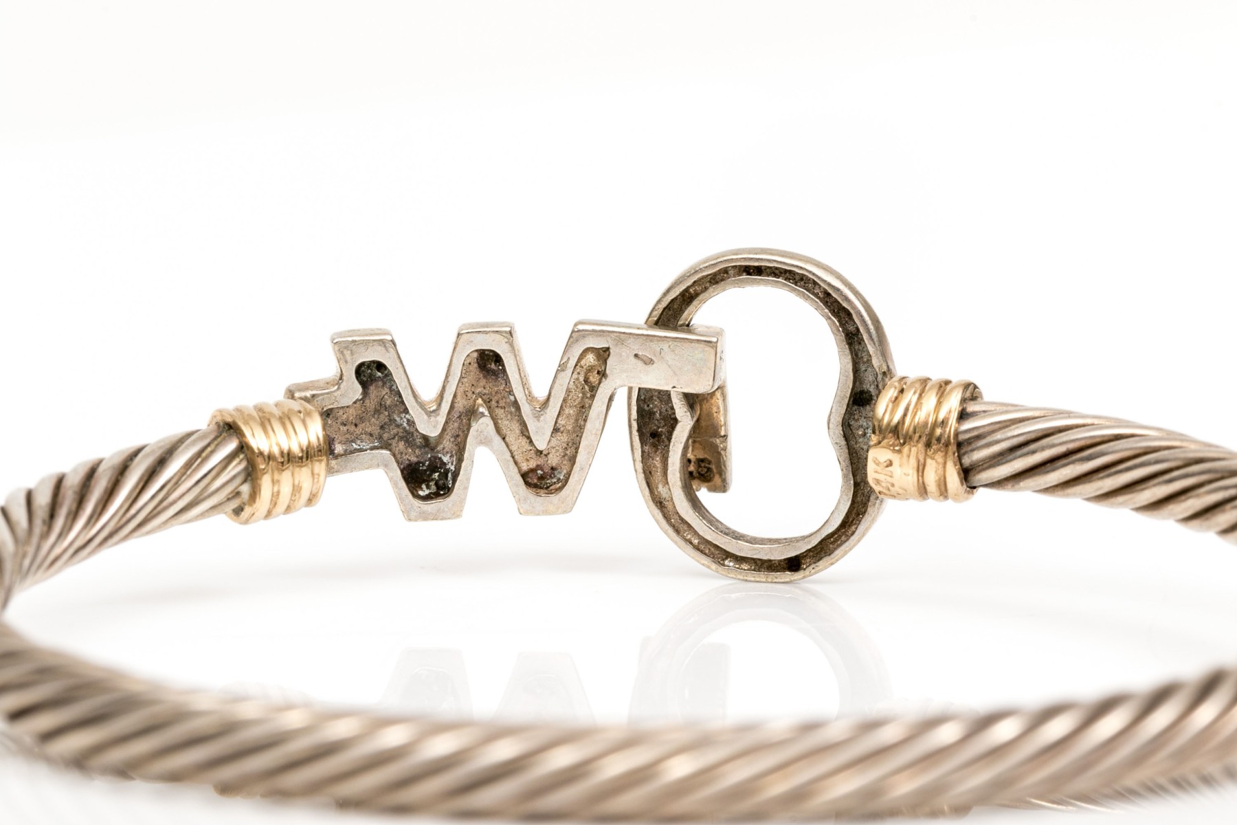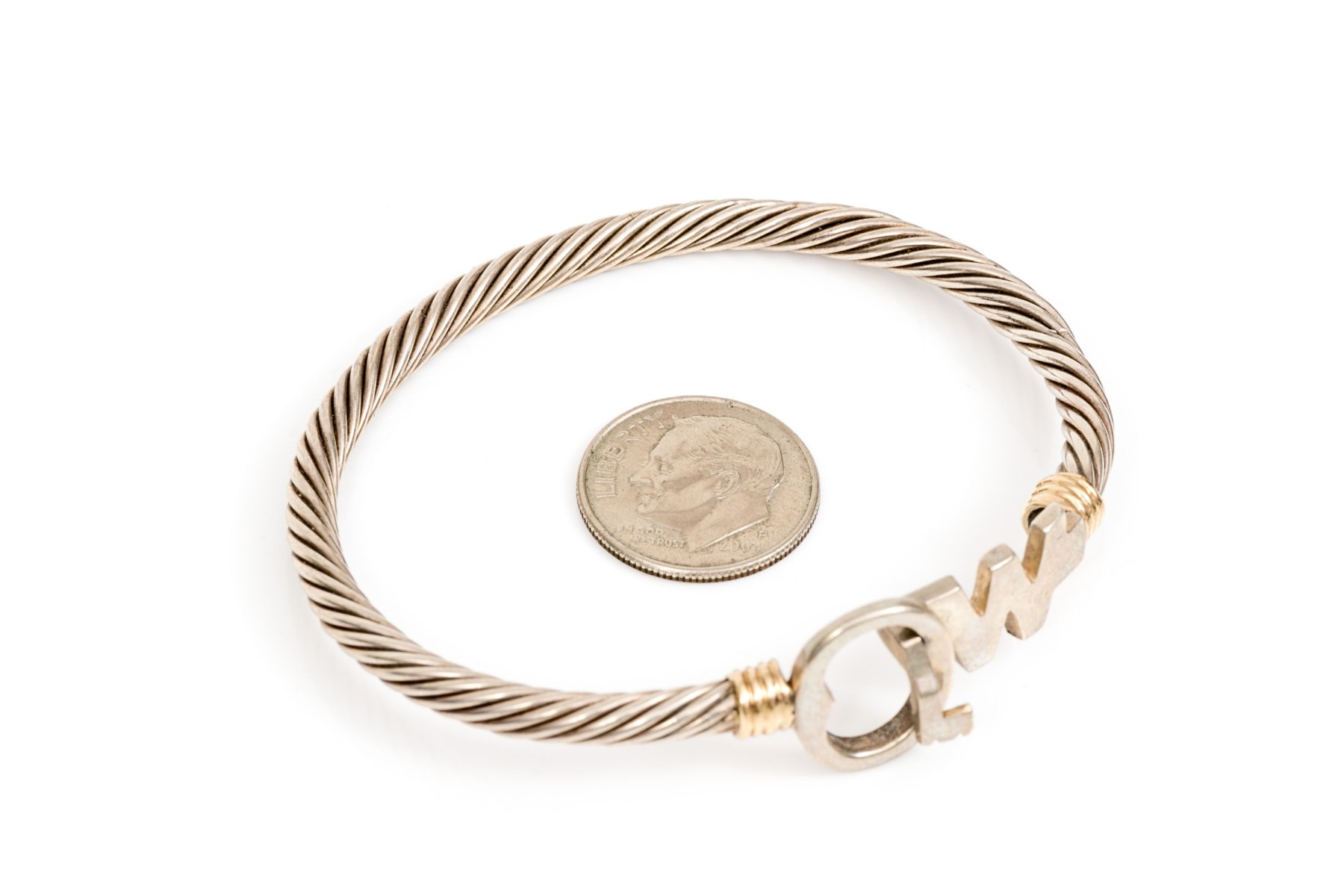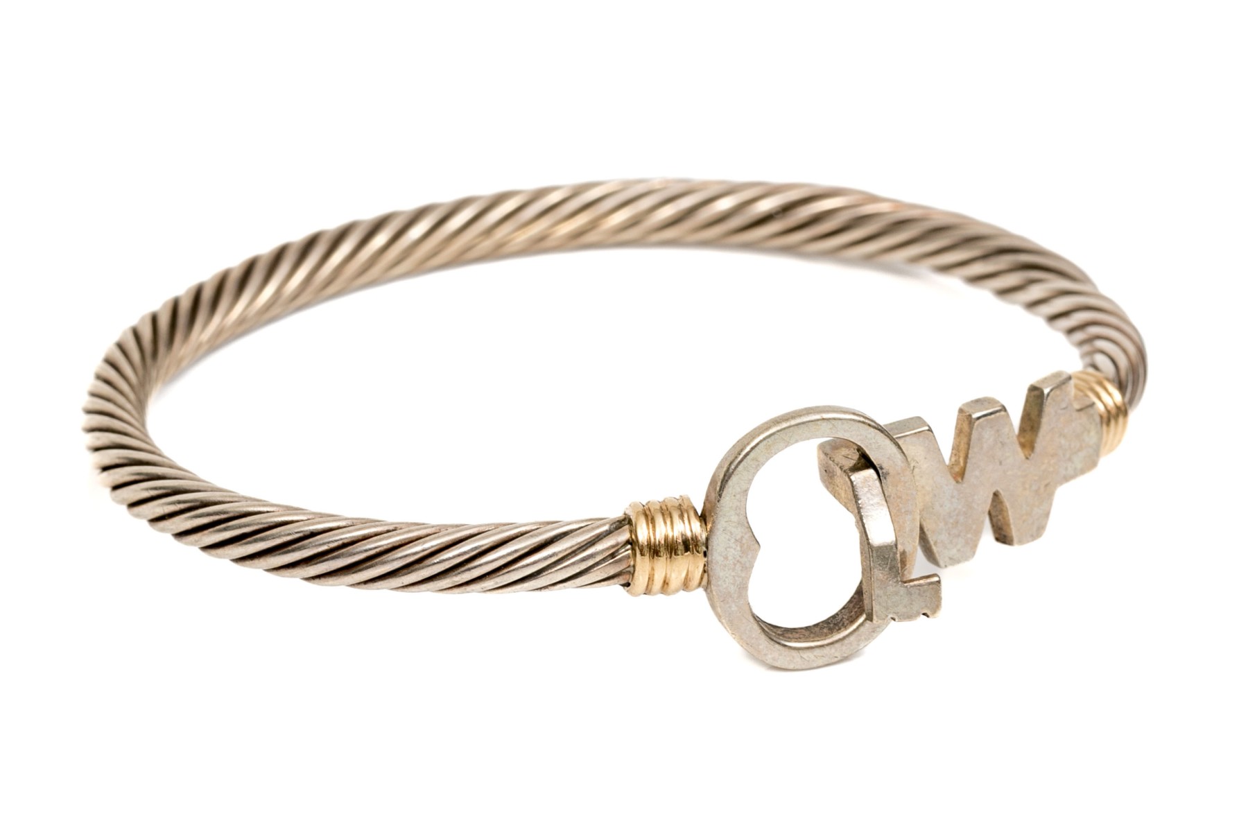 Sterling and 14k unique cable cuff bracelet with retrofit initial clasp