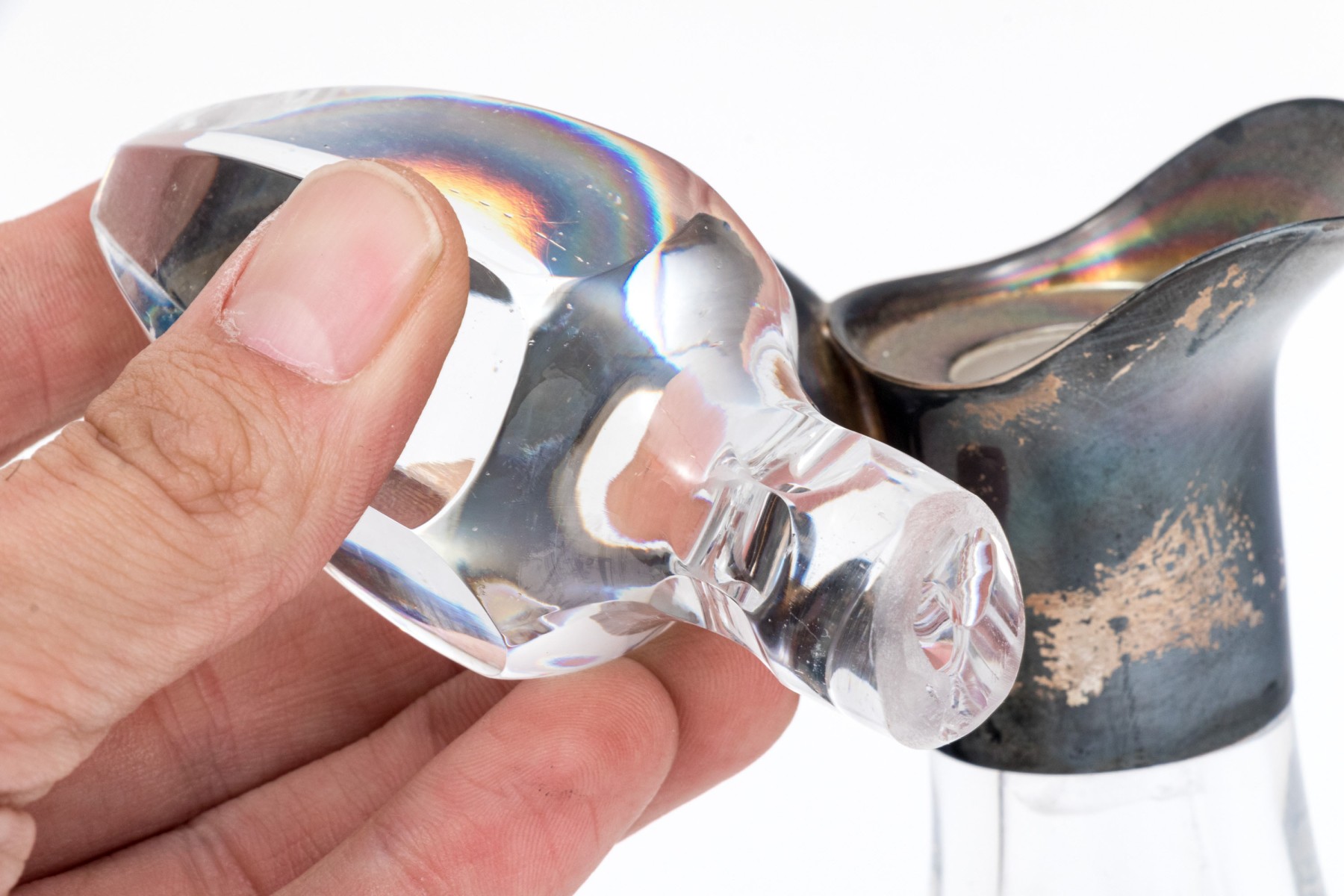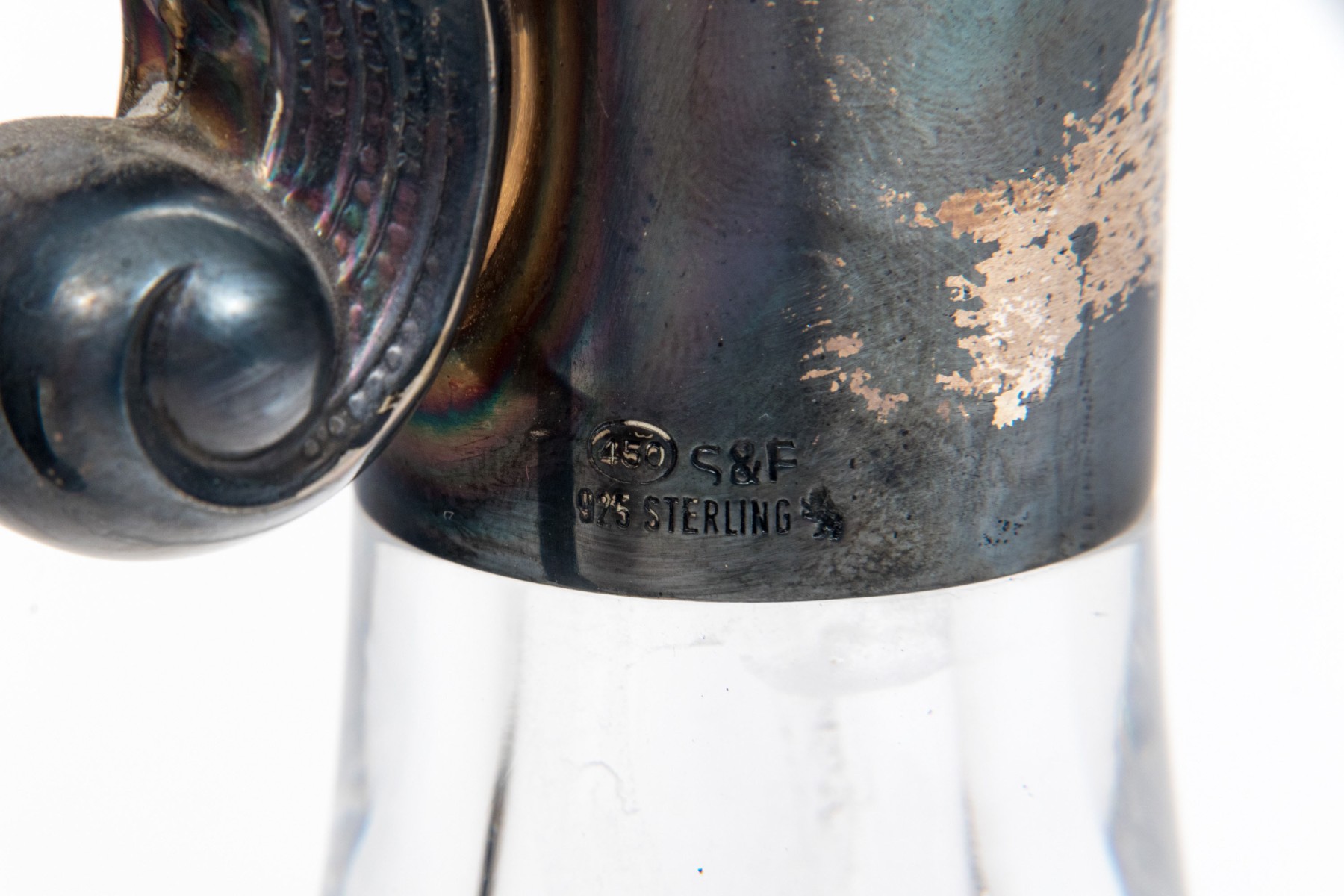 Condition: The sterling silver is tarnished. Some chips to the glass stopper.