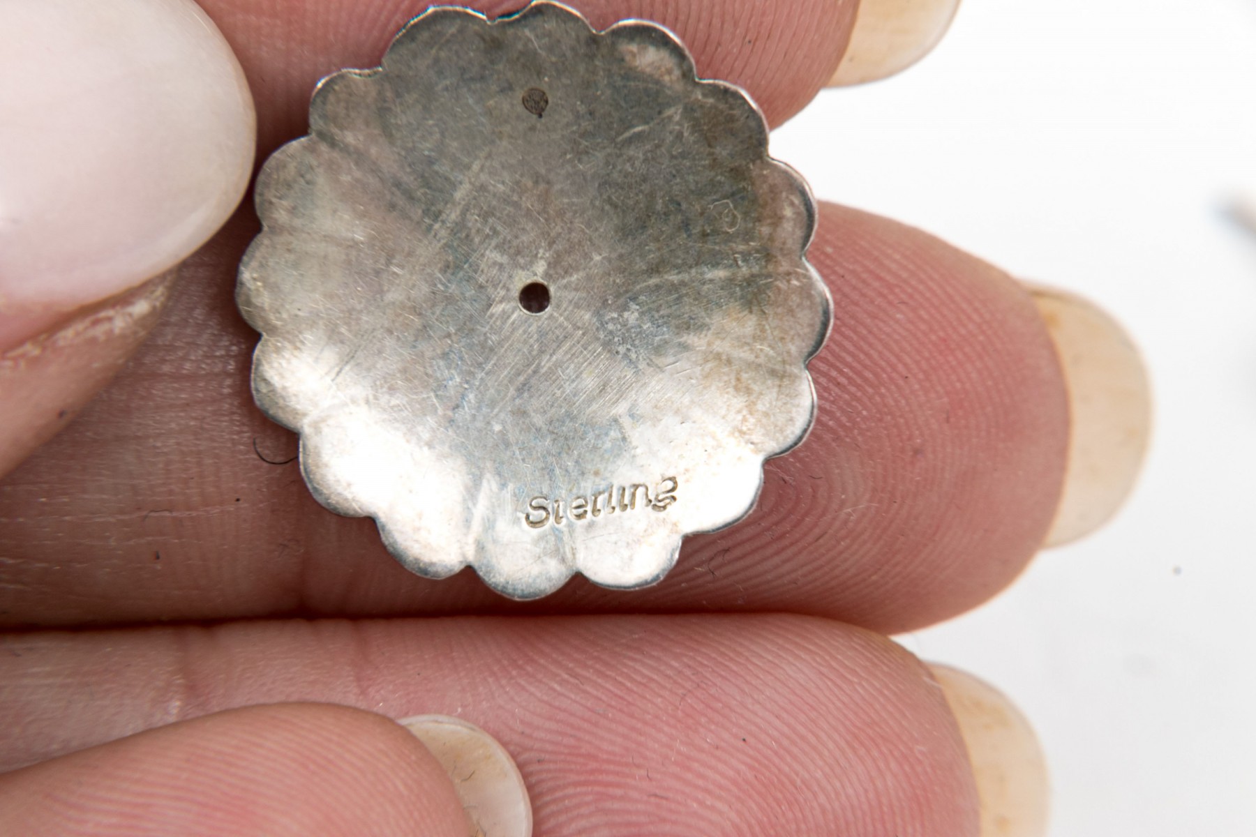 Dimensions: 2" Diameter-Brooch, 1/4" Diameter-Earrings, 7/8" Diameter-Earring Jackets