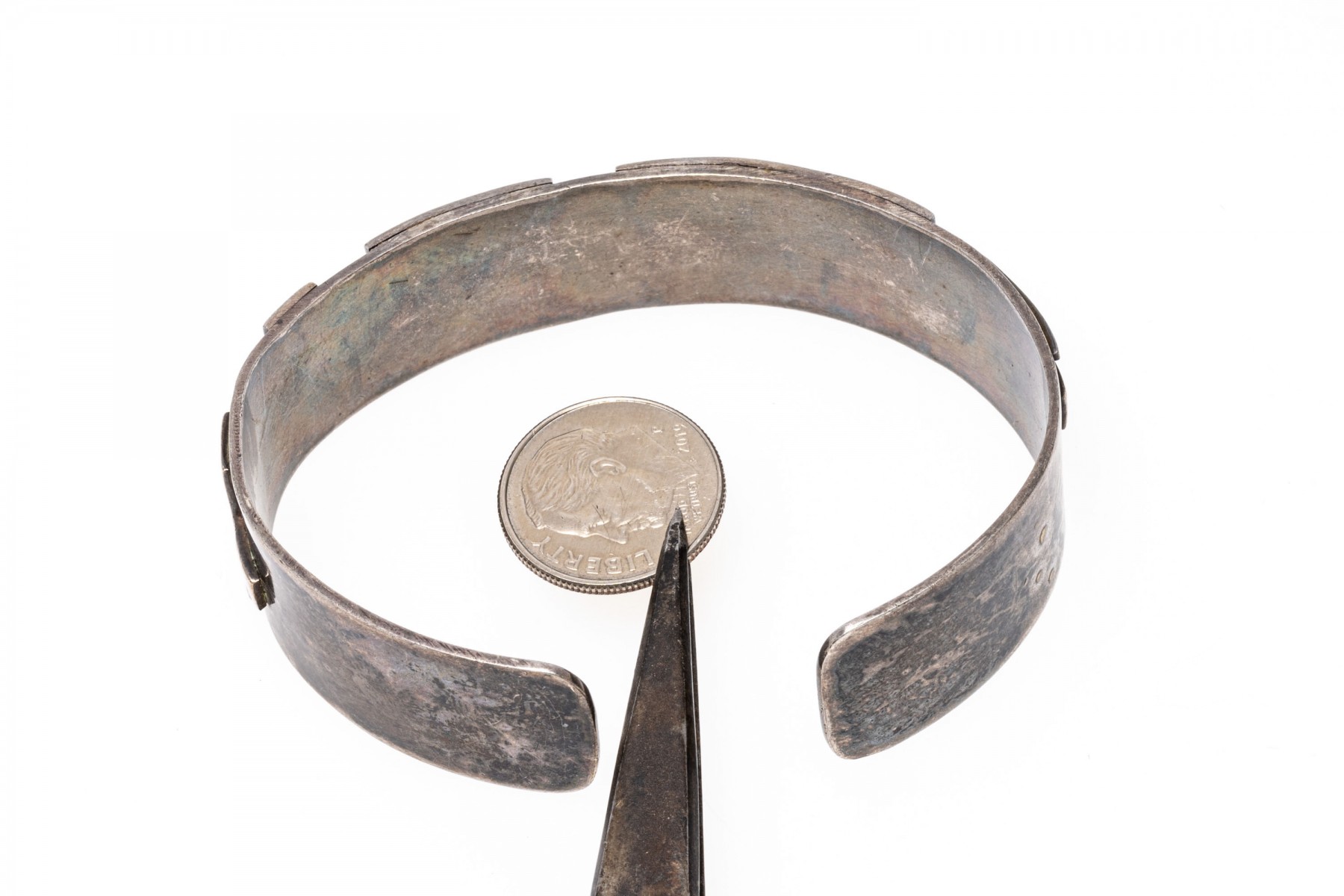 Condition: Tarnishing and the band is bent.