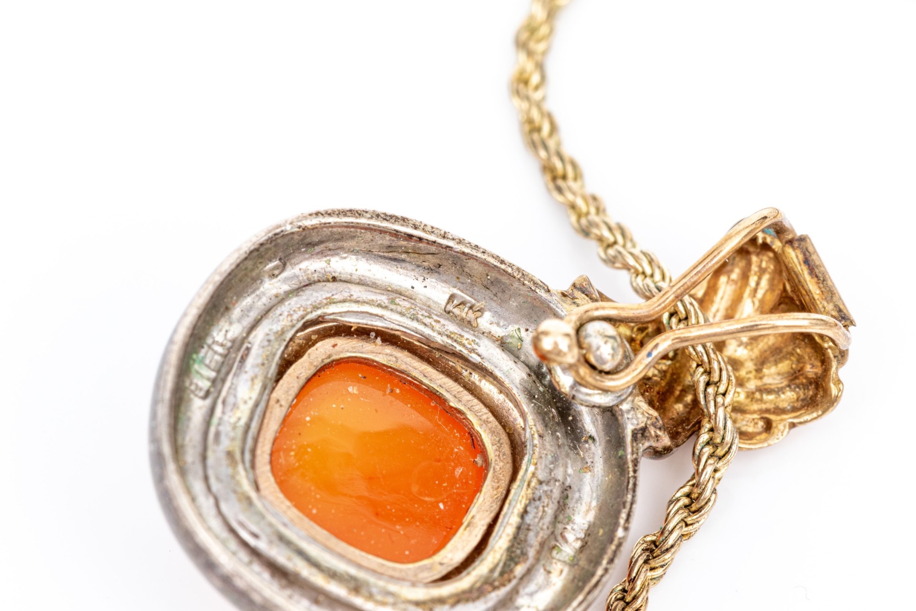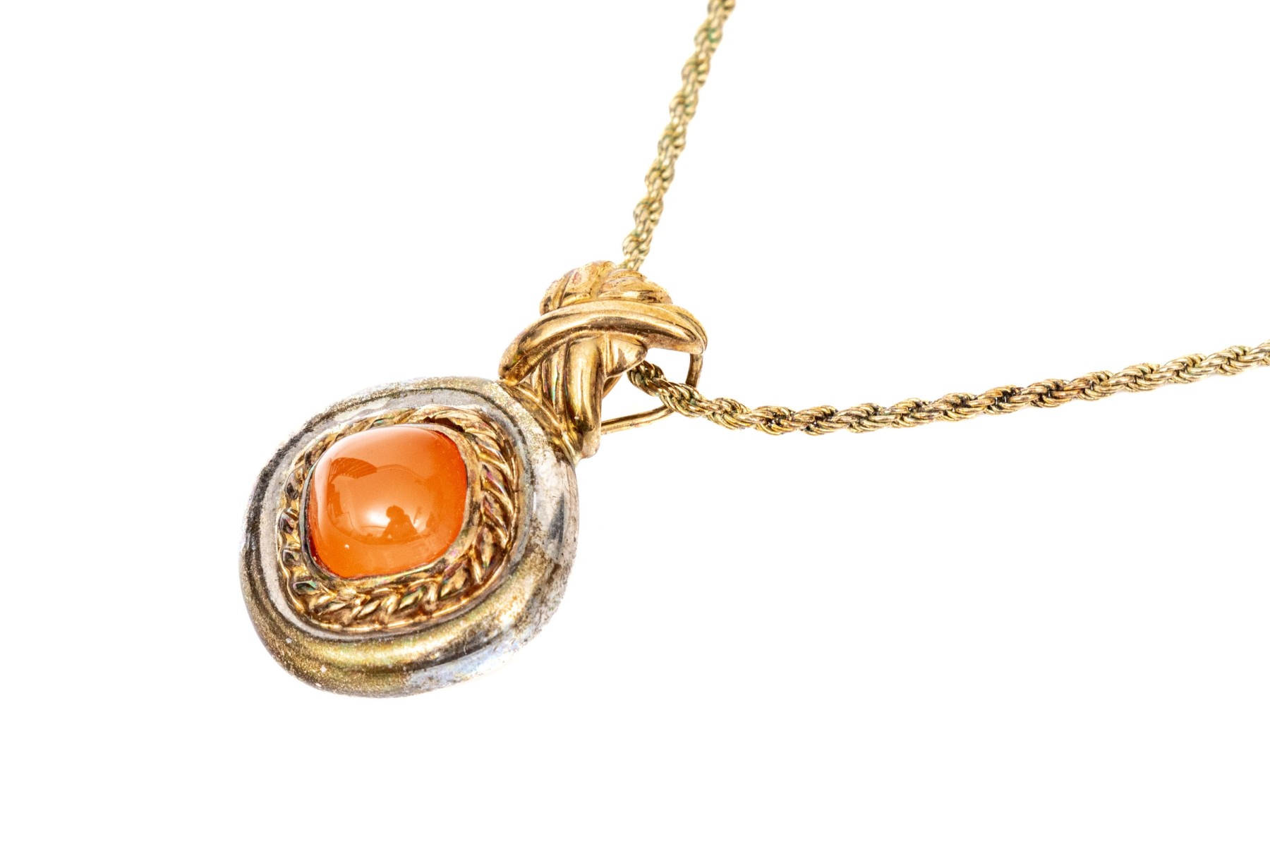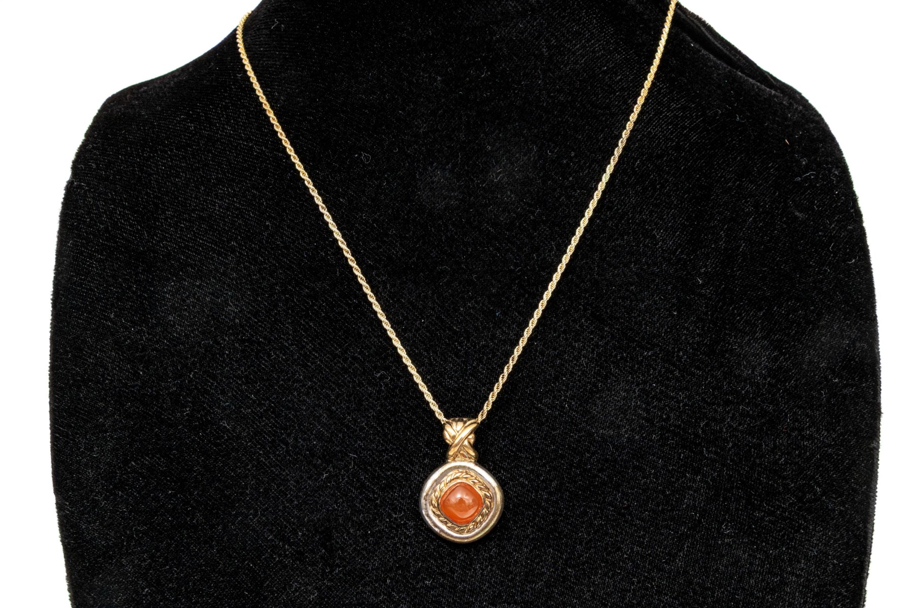 Sterling silver and 14k chunky carnelian pendant, with sterling chain