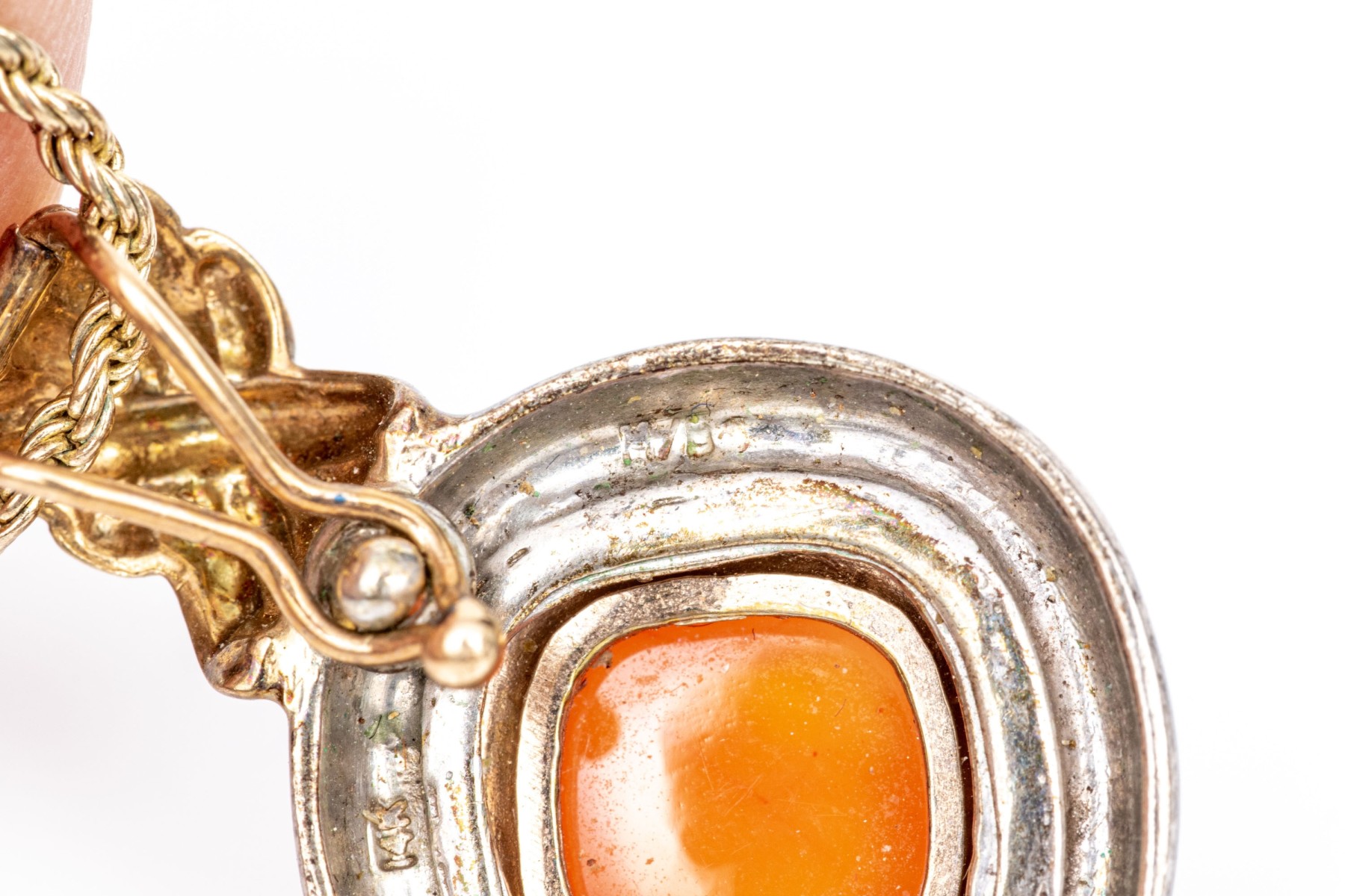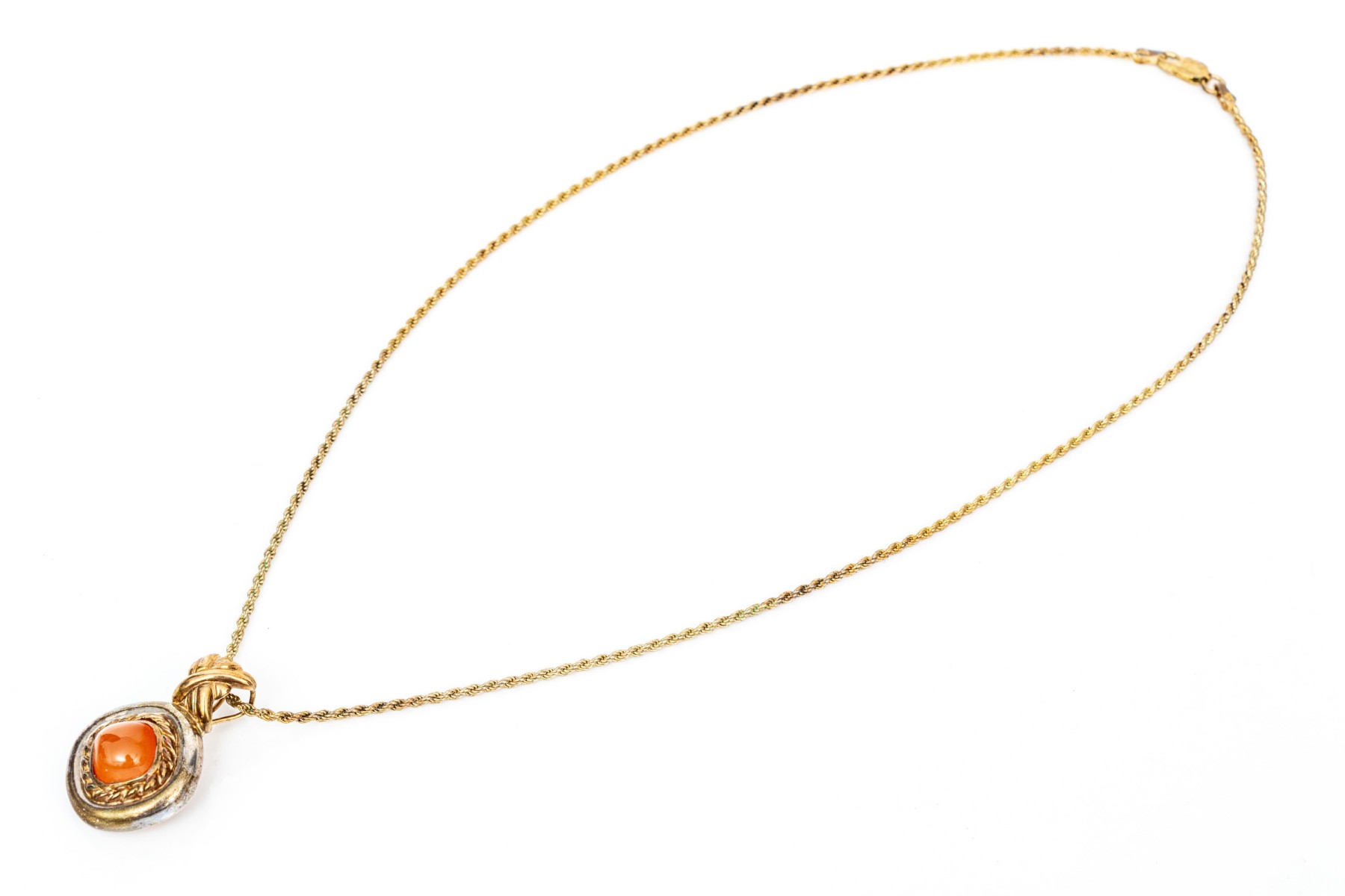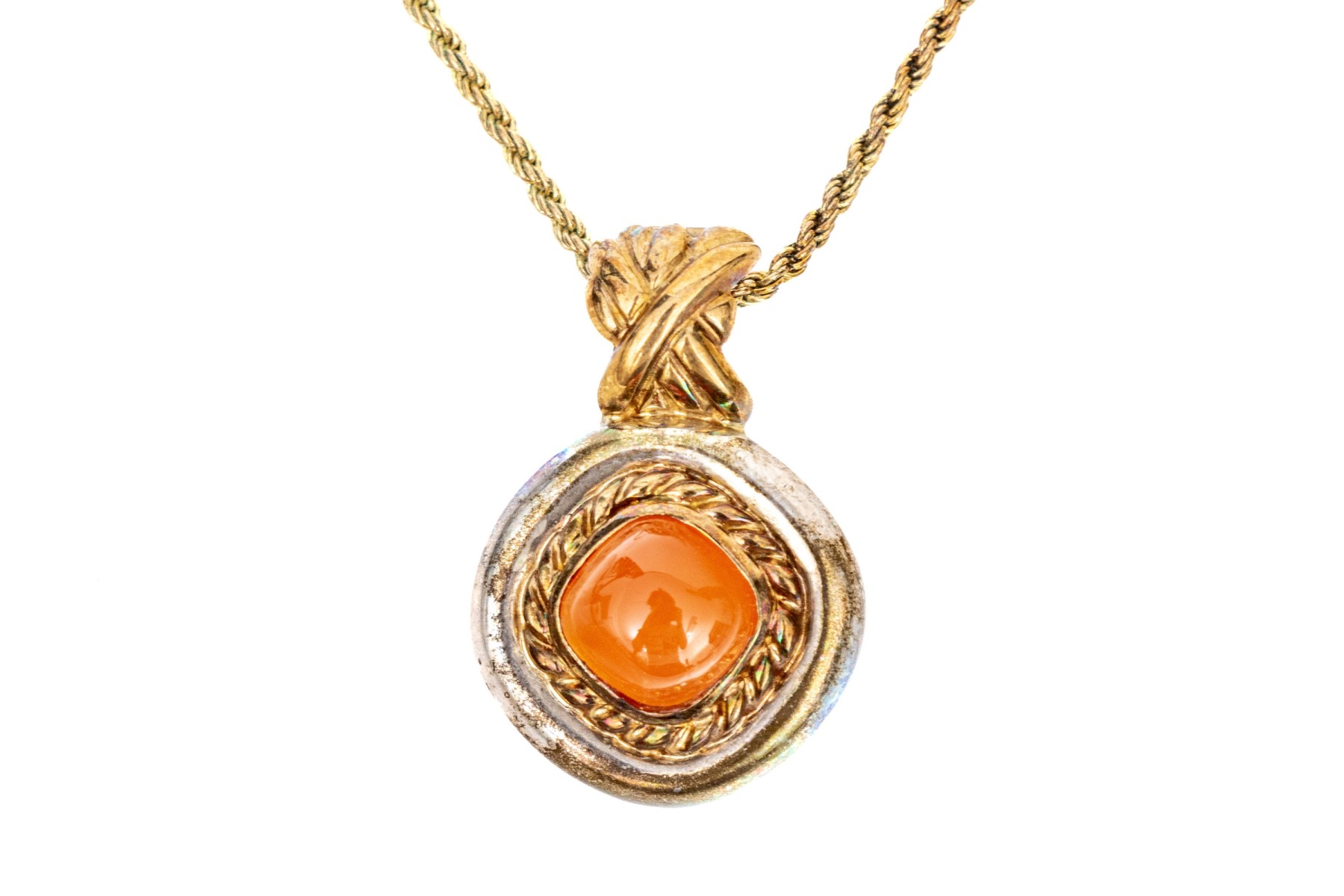 Sterling silver and 14k chunky carnelian pendant, with sterling chain
