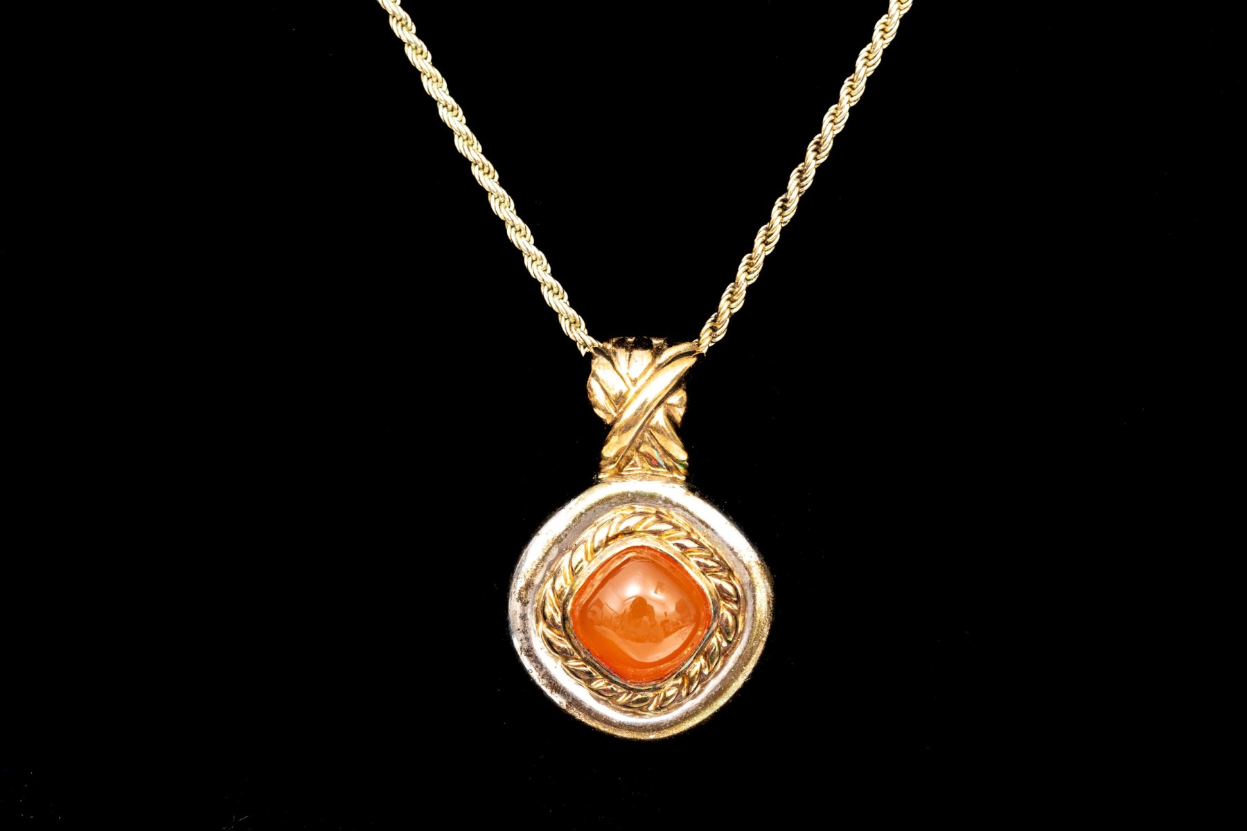 Sterling Silver And 14k Chunky Carnelian Pendant, With Sterling Chain #461533. Black Rock Galleries provides high end estate liquidation services through online estate auctions and a 50,000 sq ft designer showroom. estate liquidator, estate sale, online auction, antiques, fine art, liquidation, clean outs, auction, consignment, interior design, fine jewelry, collectibles, appraisals, estate appraisals, estate services, decor, furniture, furniture consignment, antique center, consignment shop. We offer appraisal services and specialize in fine art, jewelry, antiques and decorative arts. Sell with us. Black Rock Galleries is the tri-state's largest estate liquidator serving New England and the greater New York City area. We are the trusted source for expert appraisals, auction services, estate sales, and consignments. Black Rock Galleries is the east coast's largest and most trusted estate liquidator, with locations in Connecticut, greater Boston, MA and Raleigh, NC, Fairfield, Southport, Apex, TX. We are the best source for expert appraisals, auction services, estate sales and consignments. We have served thousands of families and estates with compassion, professionalism and expertise. BRG works with attorneys, executors, realtors and families to bring the greatest return on personal and estate property in the current market. Our unique combination of services make us the easy choice to get the job done in a timely and stress-free manner. We are with you from the initial consultation to the final clean out. Our house-built online auction software platform offers clients a dynamic approach to liquidating their personal property. This venue is most successful in bringing the best return with the least amount of disruption for our clients. See our services page for a complete description of this offering. Sterling Silver And 14k Chunky Carnelian Pendant, With Sterling Chain #461533