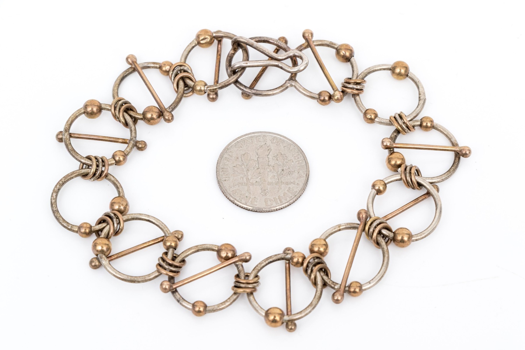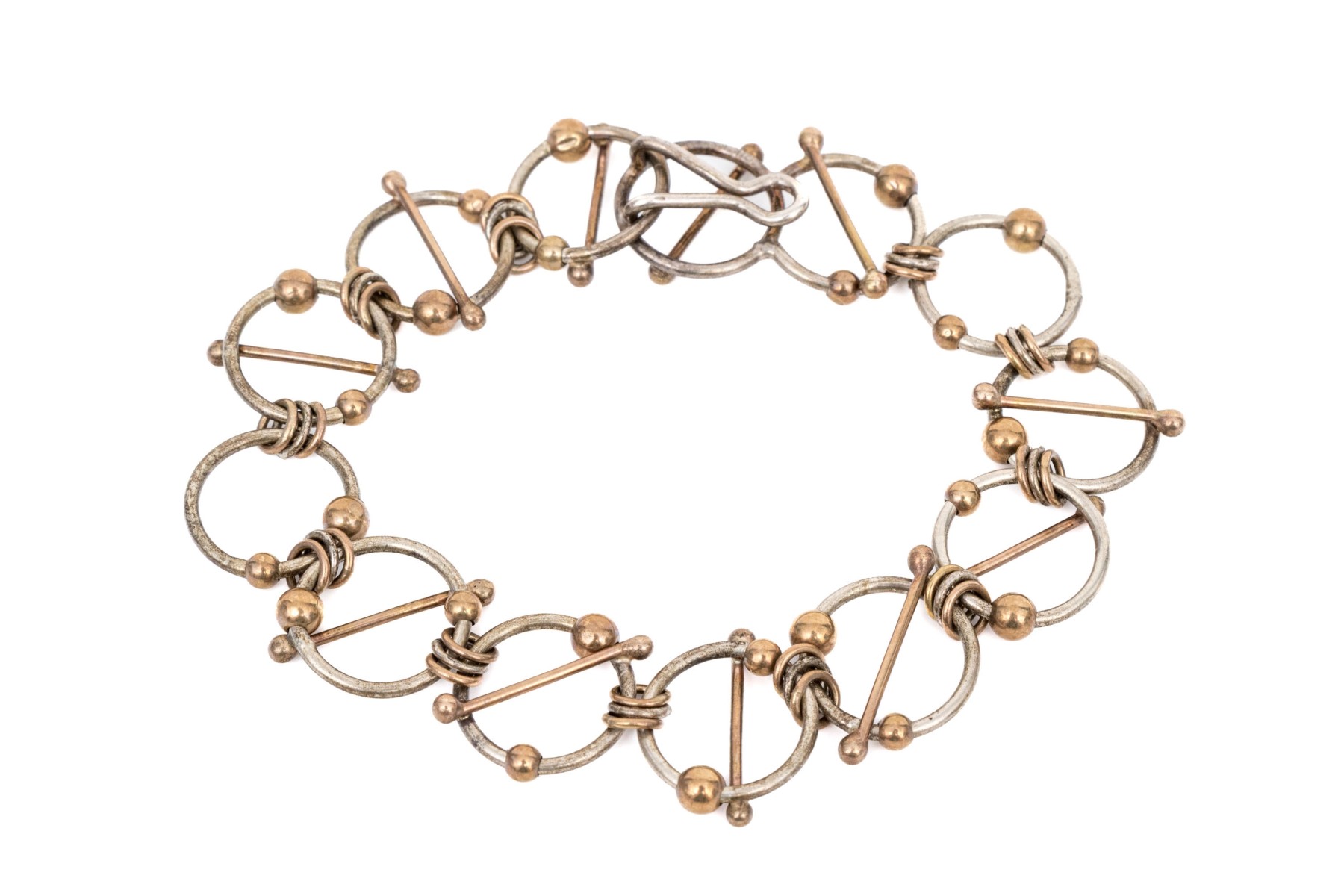 Sterling silver and 14k yellow gold fun contemporary open circle motif bracelet