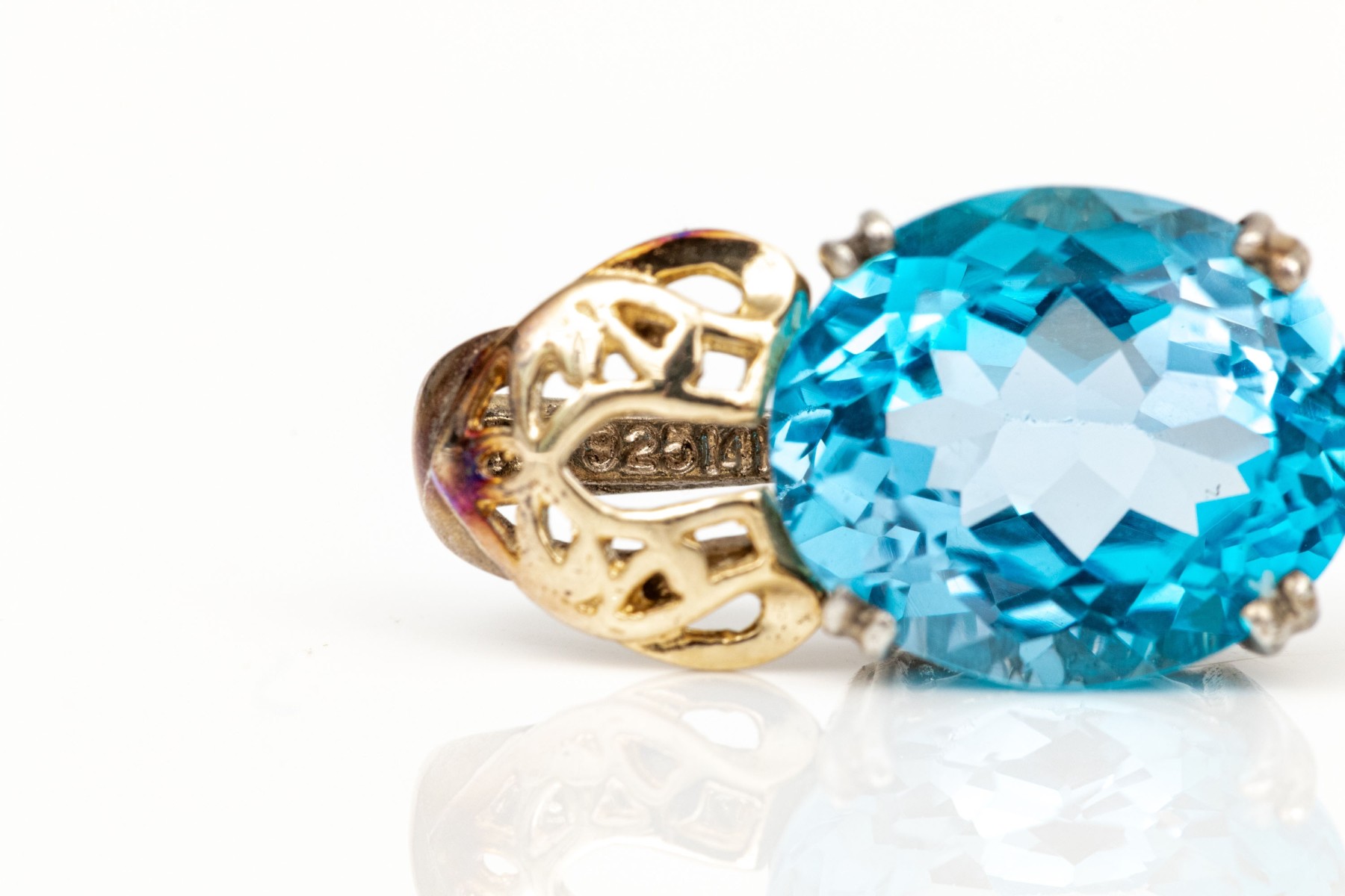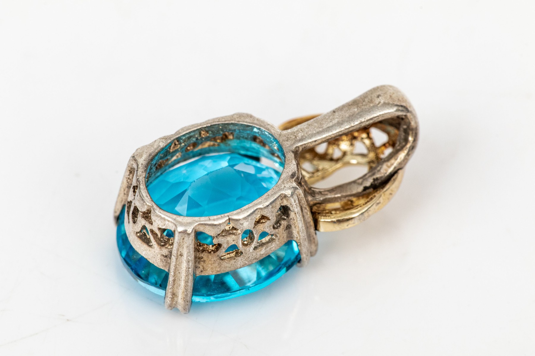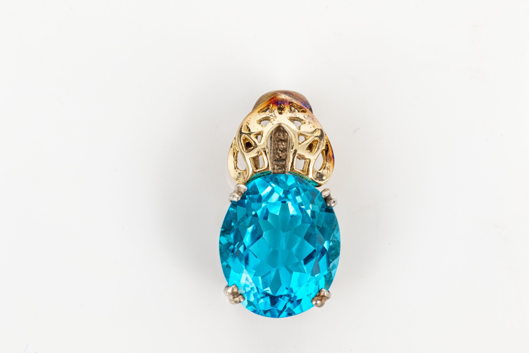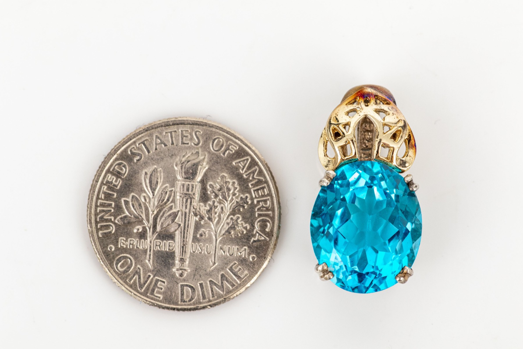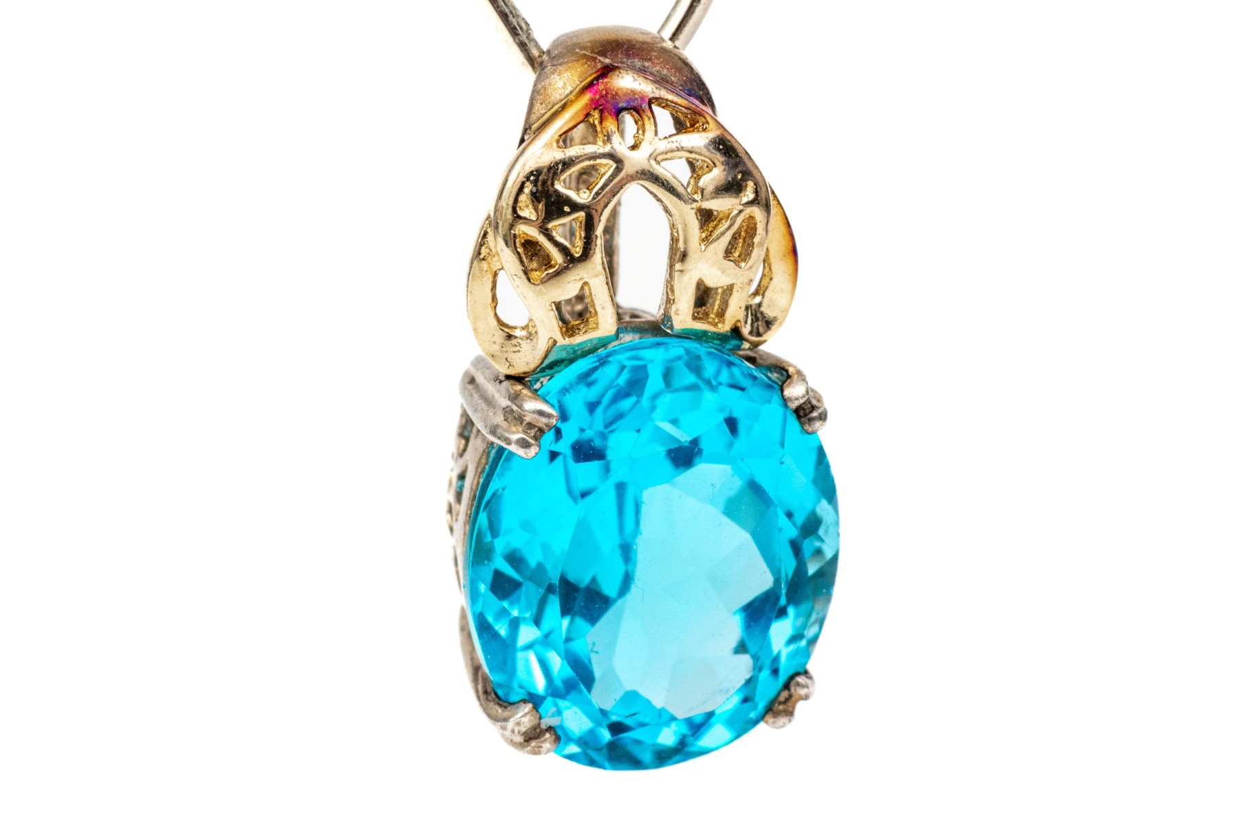 Sterling silver and 14k yellow gold striking blue topaz pendant, app. 5.63 CTS