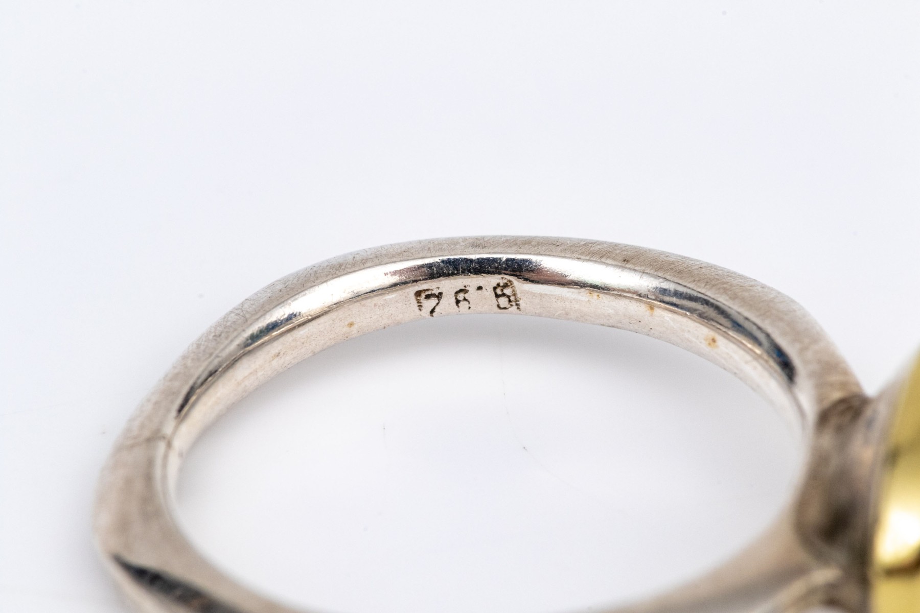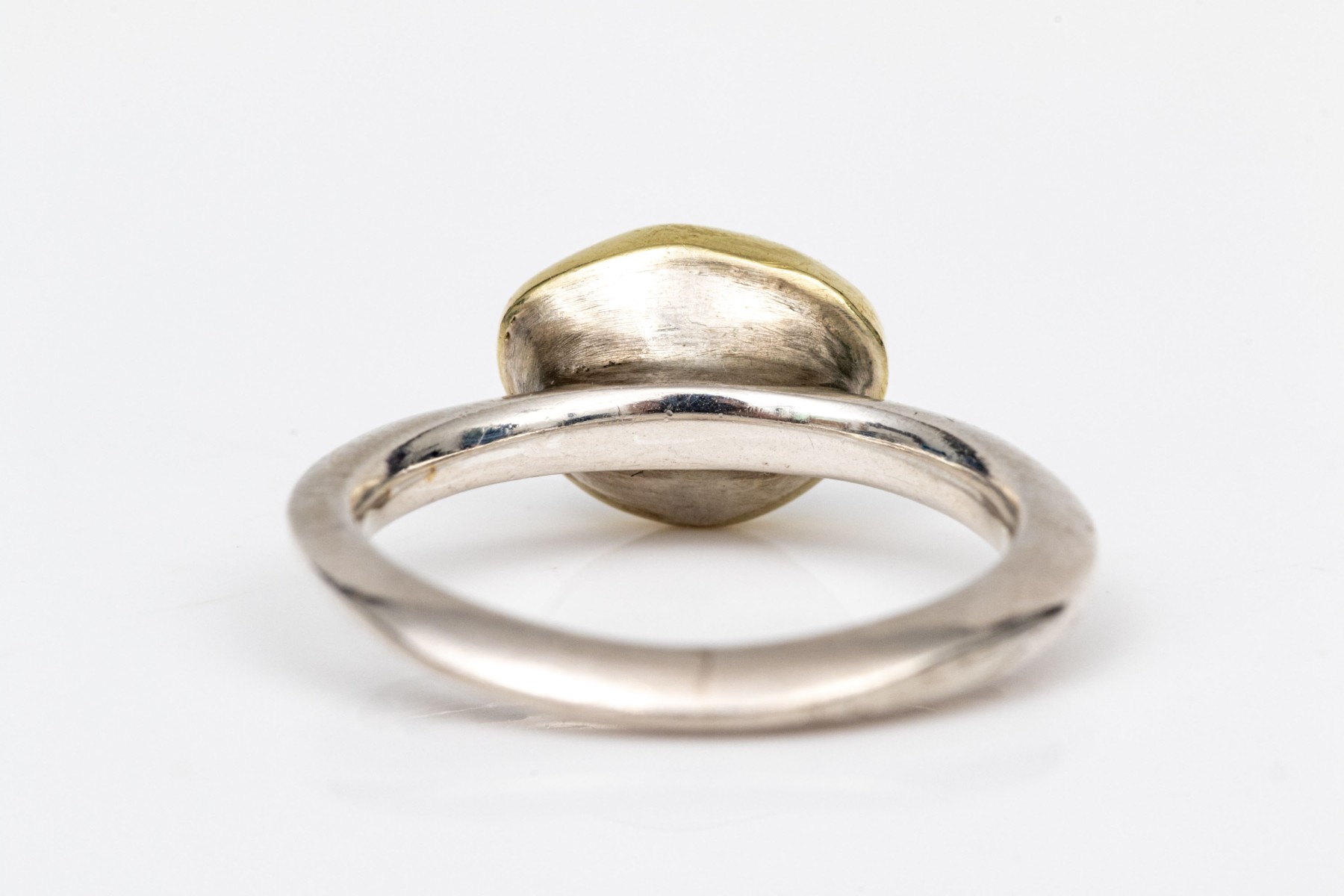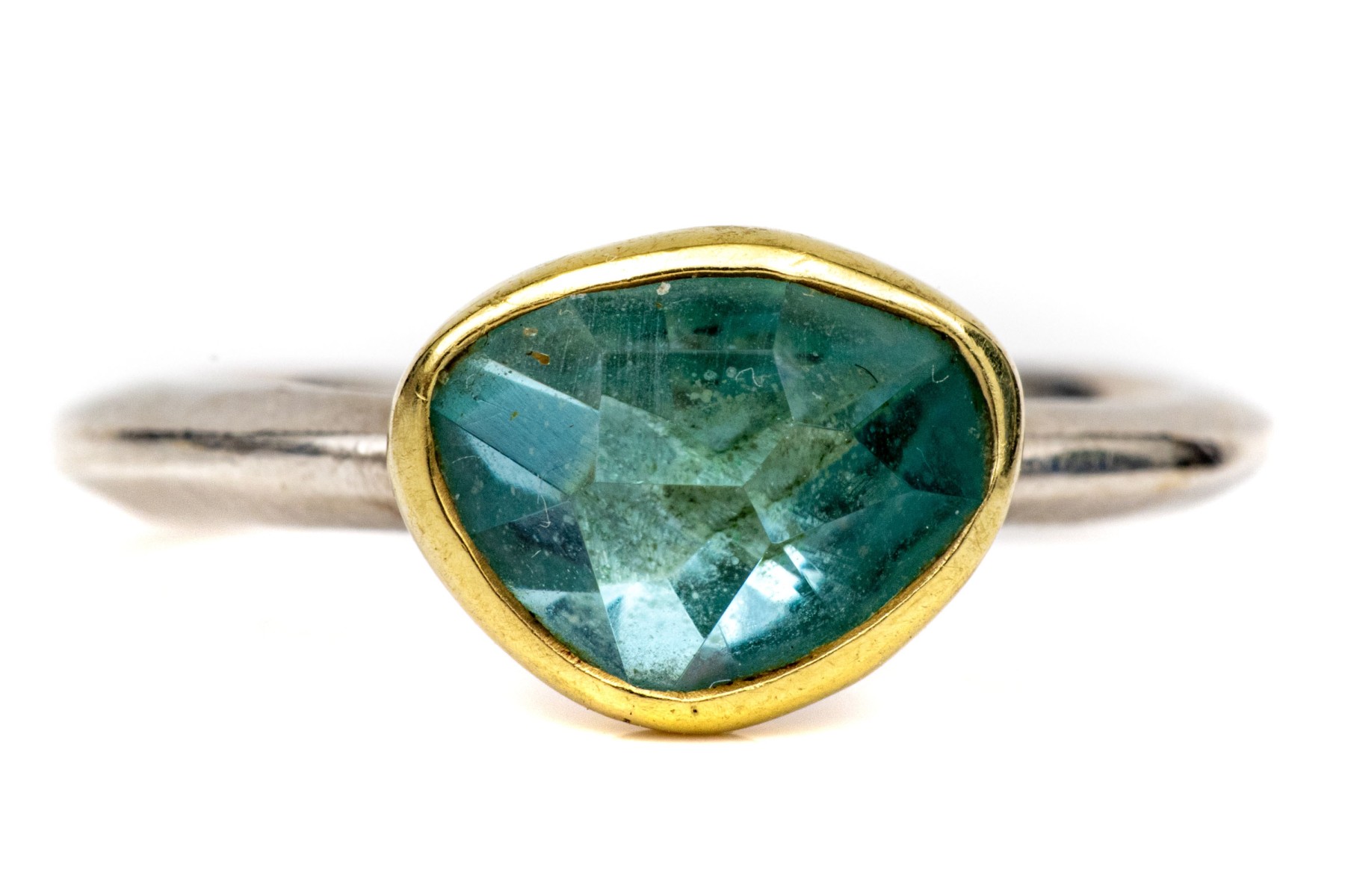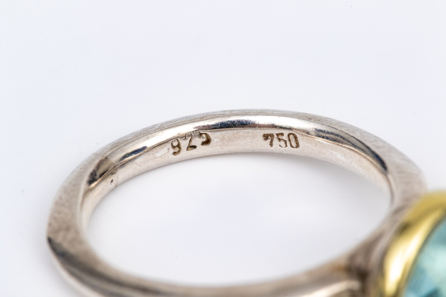 Sterling silver and 18k striking bezel set blue topaz ring, size 6.25-