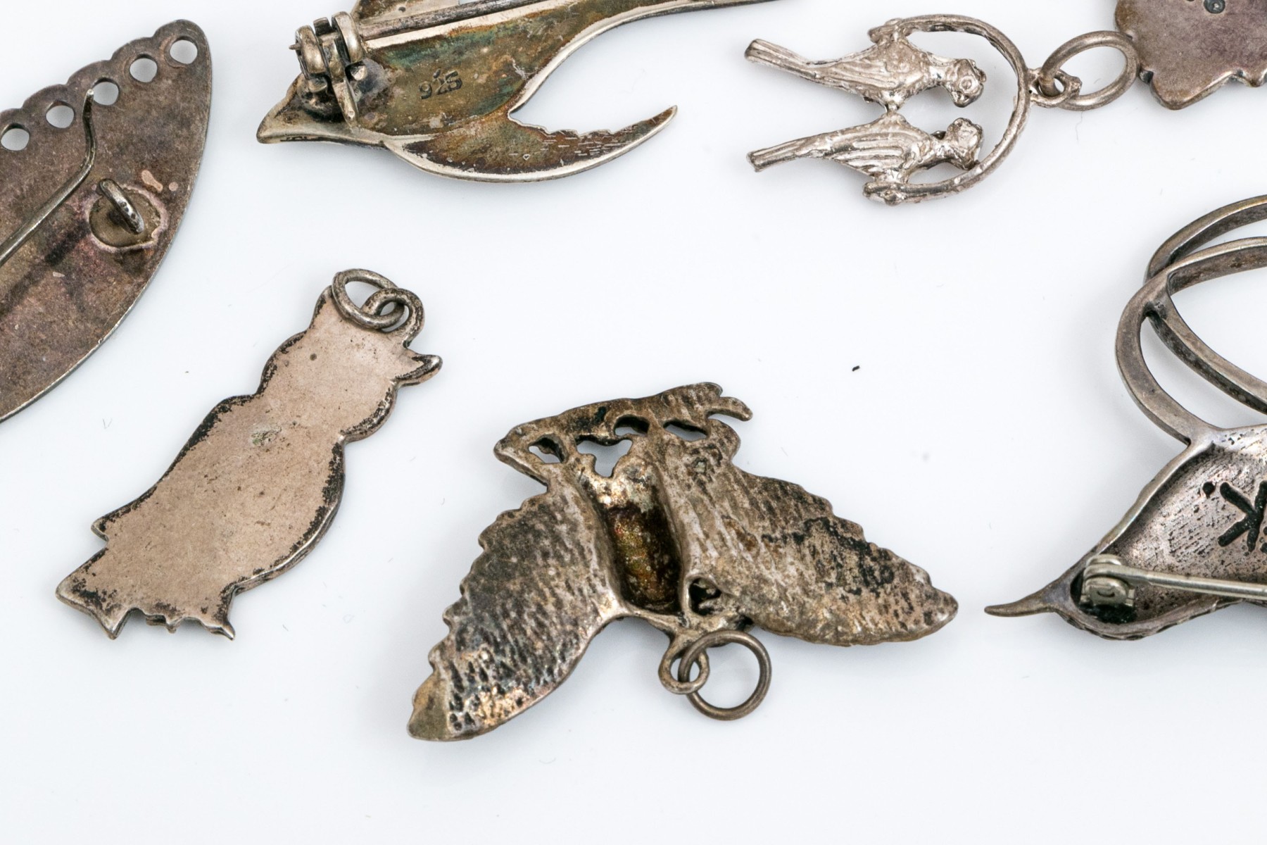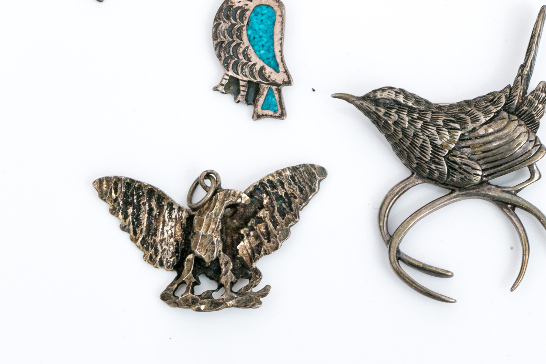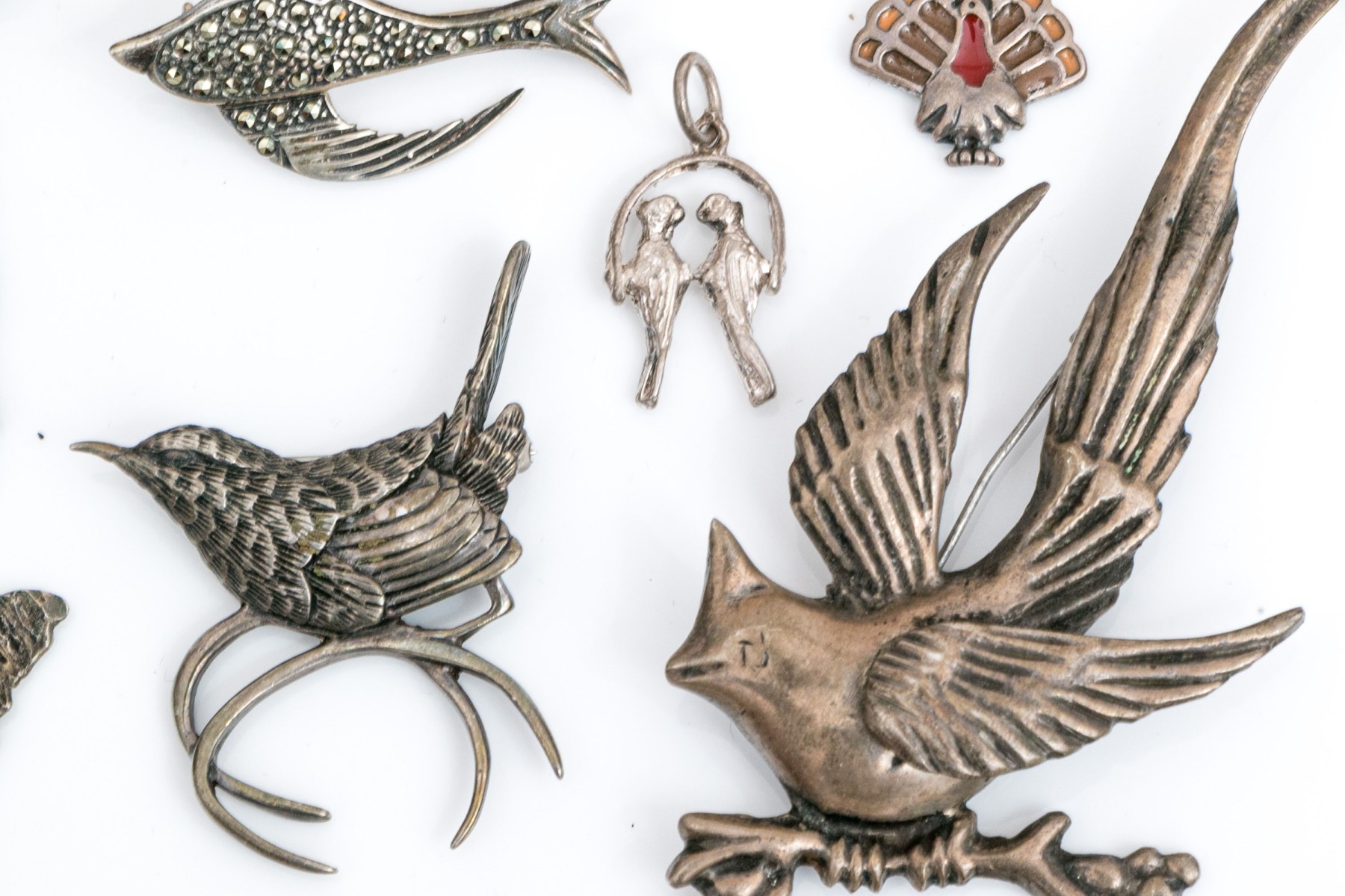 Sterling silver and 800 silver collection of assorted bird motif charms jewelry pieces