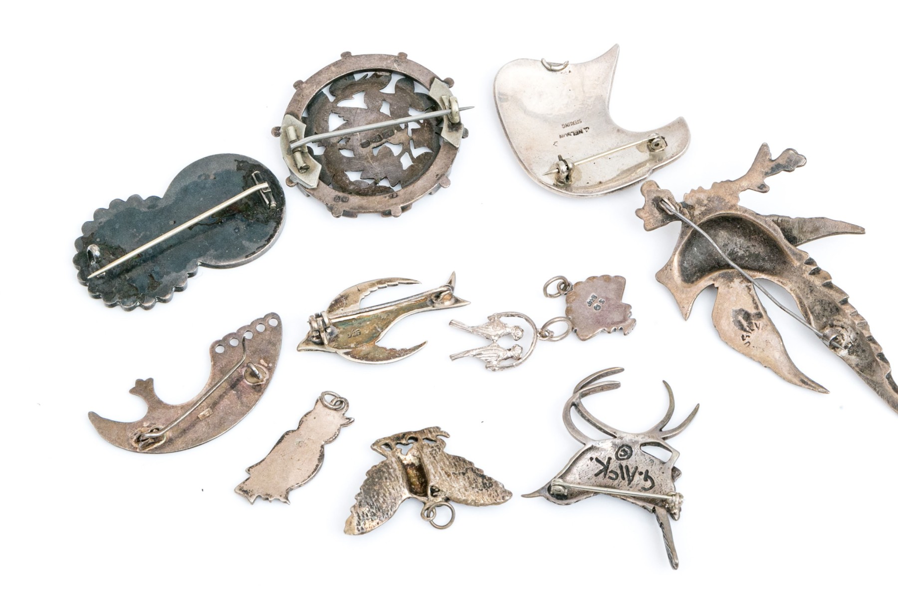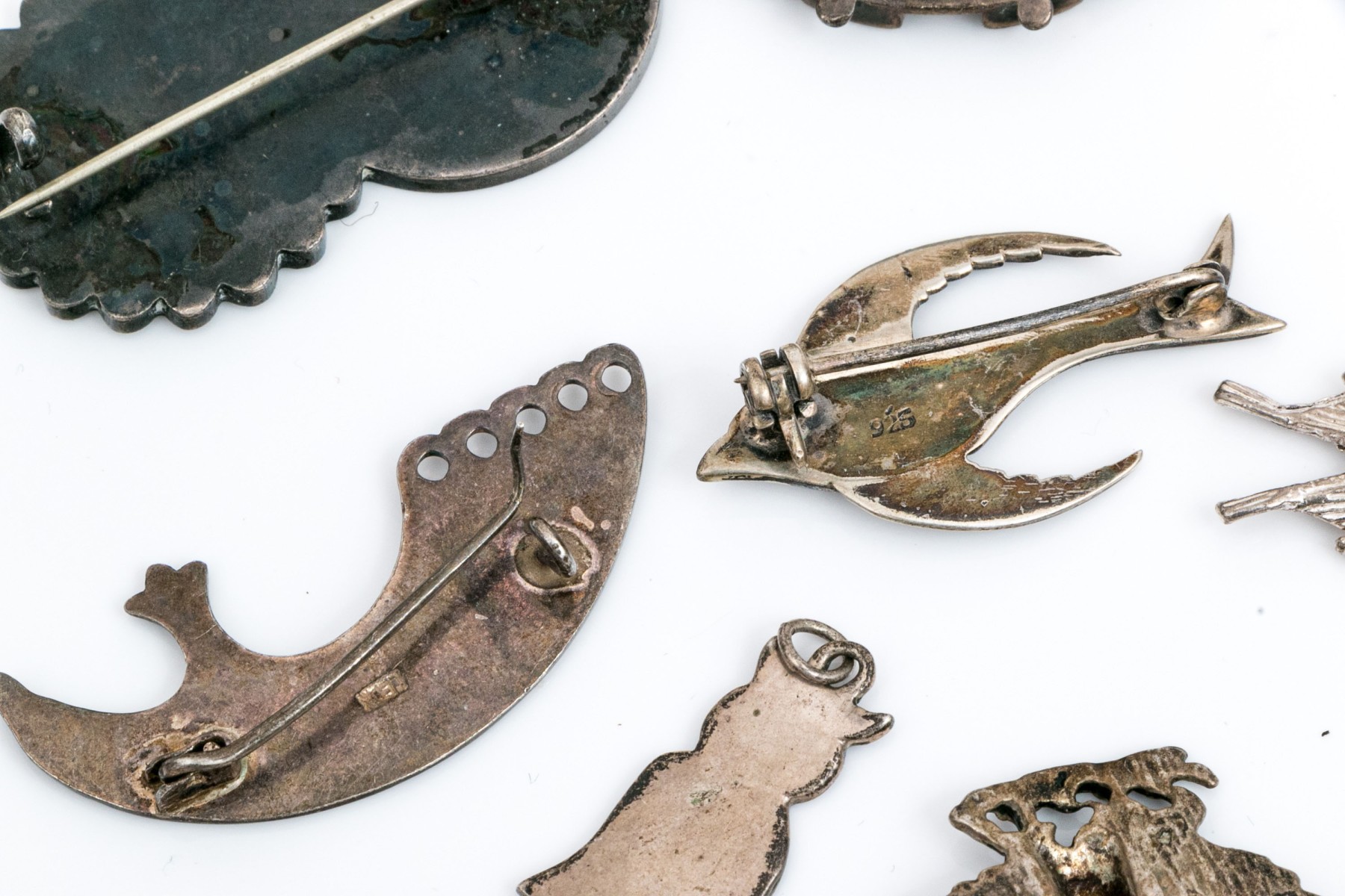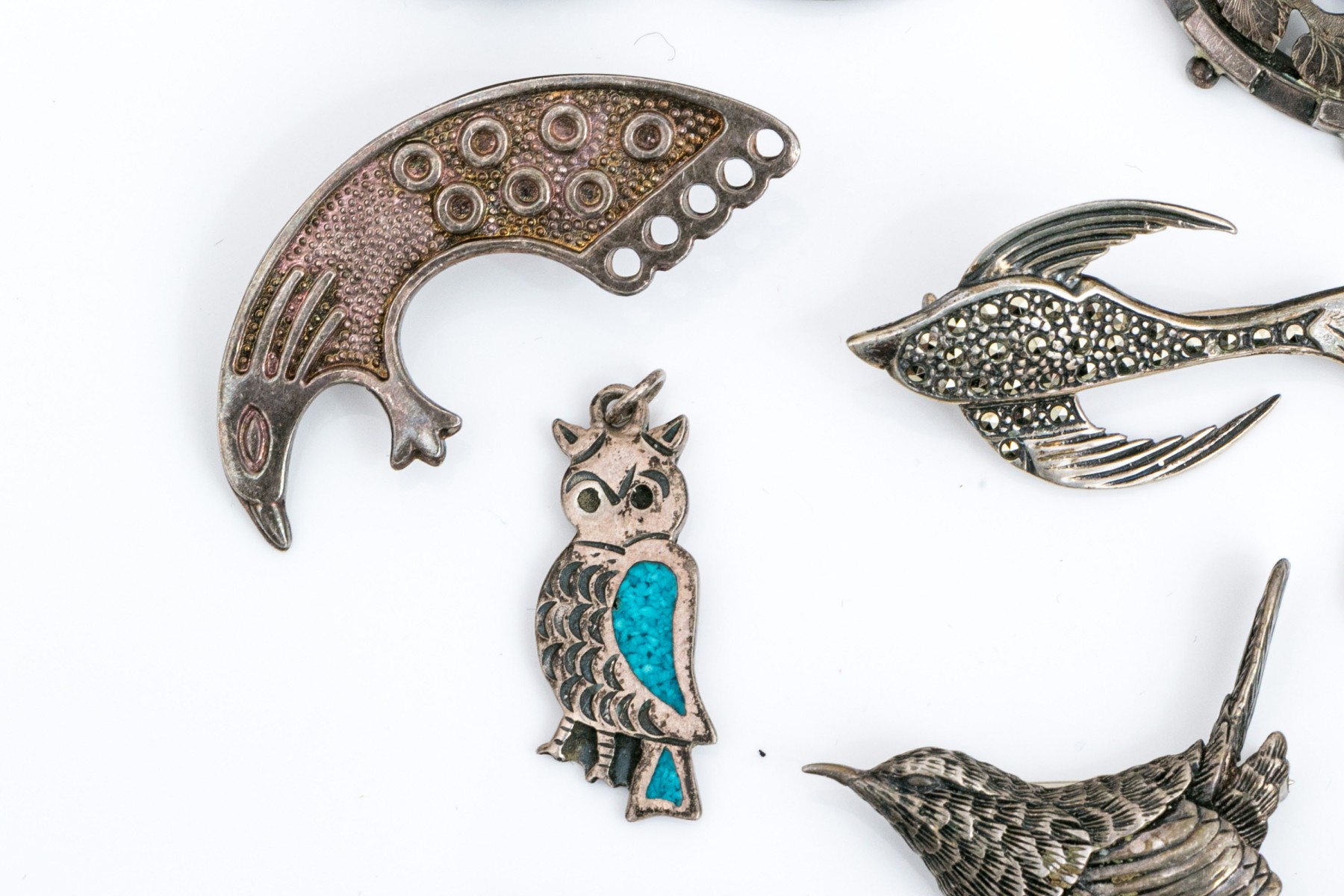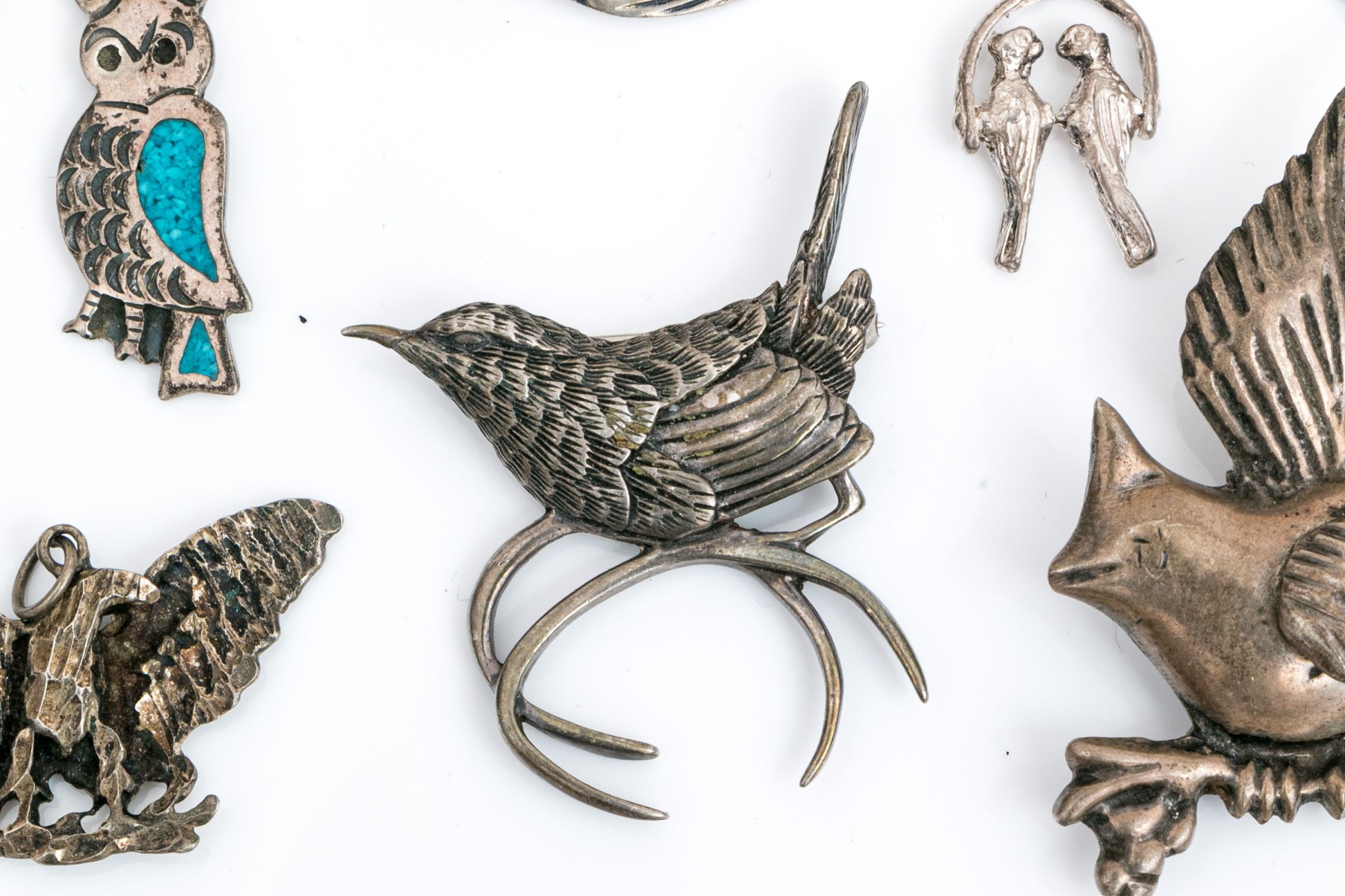 Sterling silver and 800 silver collection of assorted bird motif charms jewelry pieces