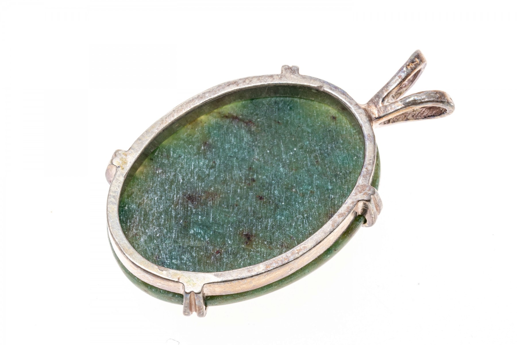 A sterling silver pendant. Set into the pendant is an oval cabochon cut dragon blood stone, 25mm x 17.9mm. The dragon blood stone has been used to improve creativity and boost strengths.