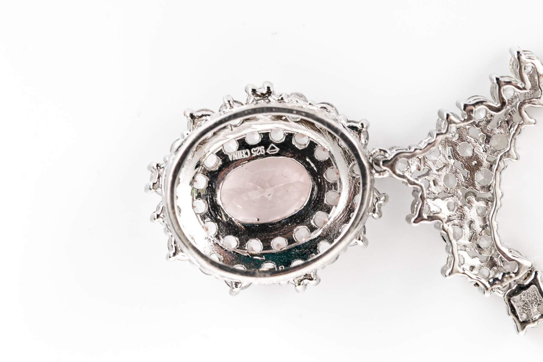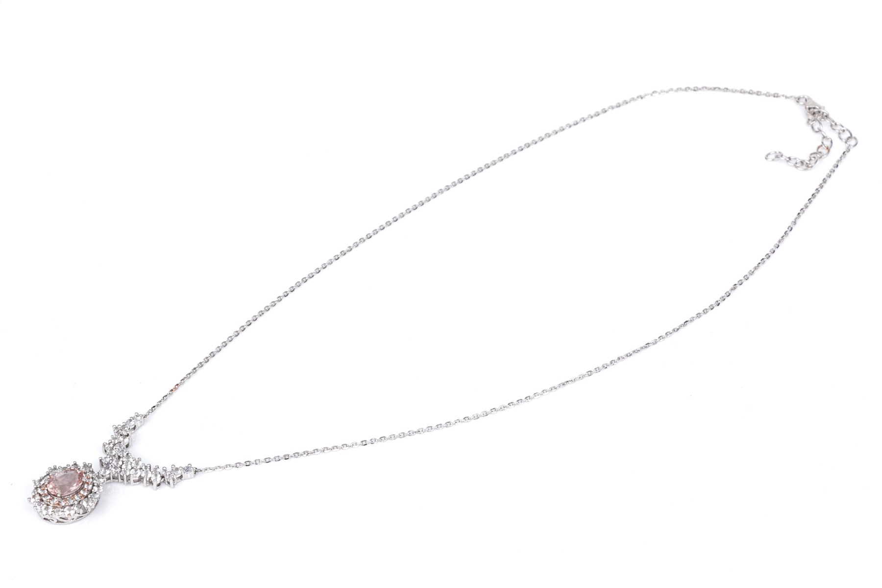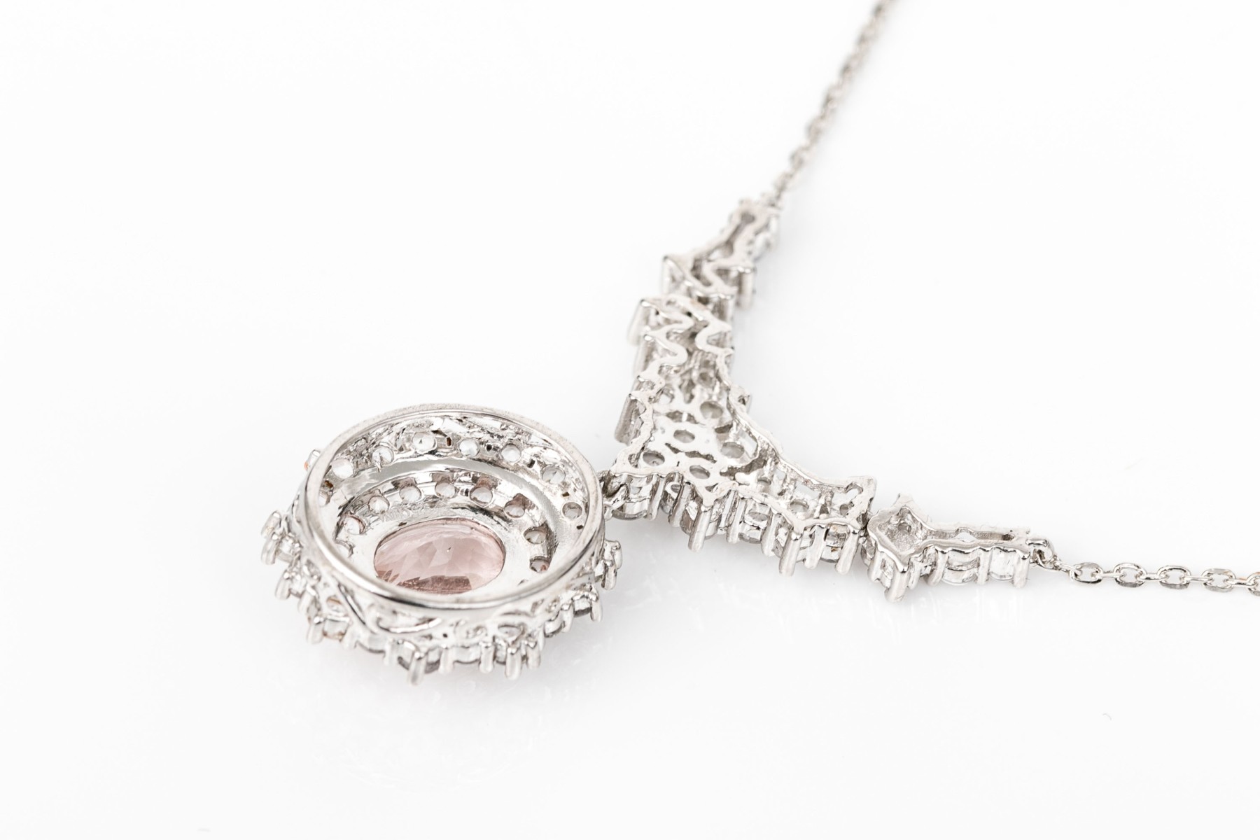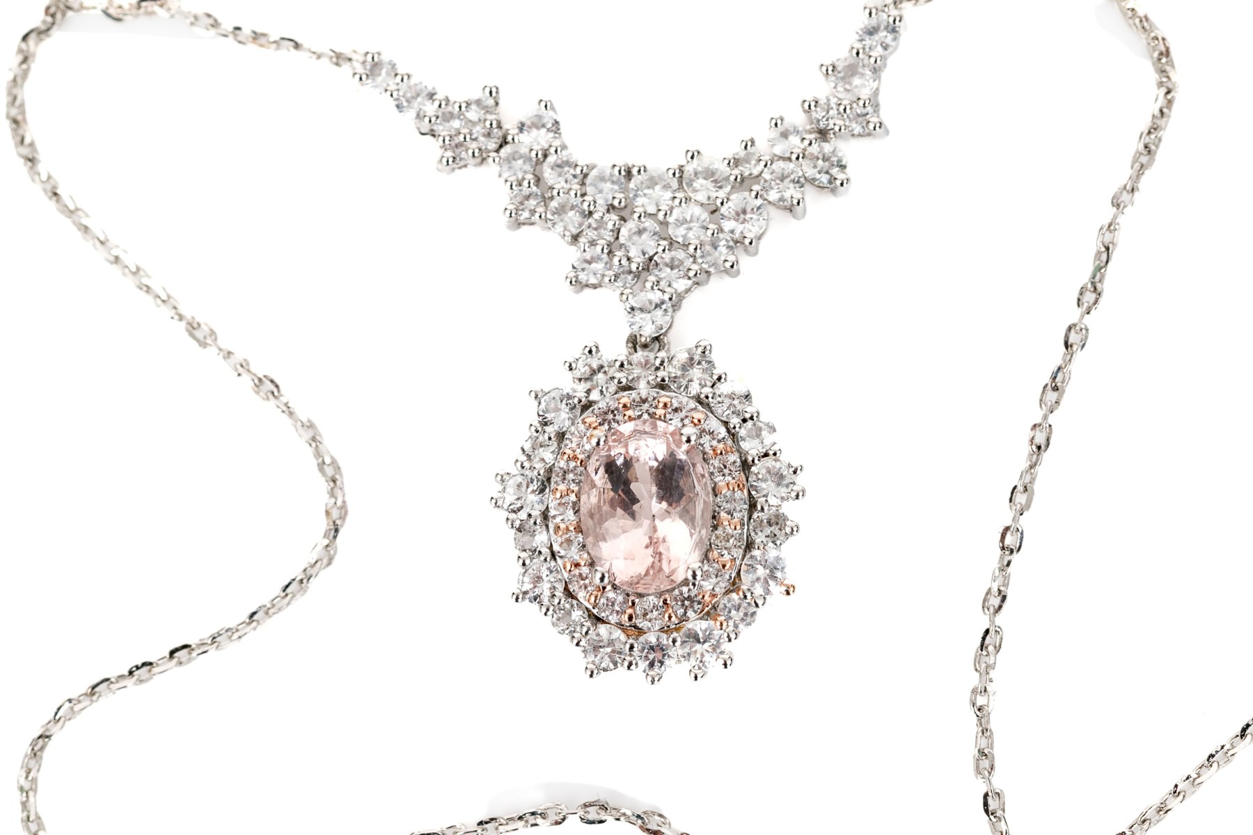 Sterling silver and vermeil pretty pink morganite and white topaz halo cluster necklace, finished with a cable chain and lobster claw style clasp
