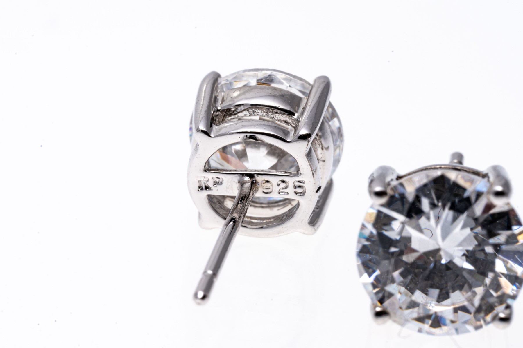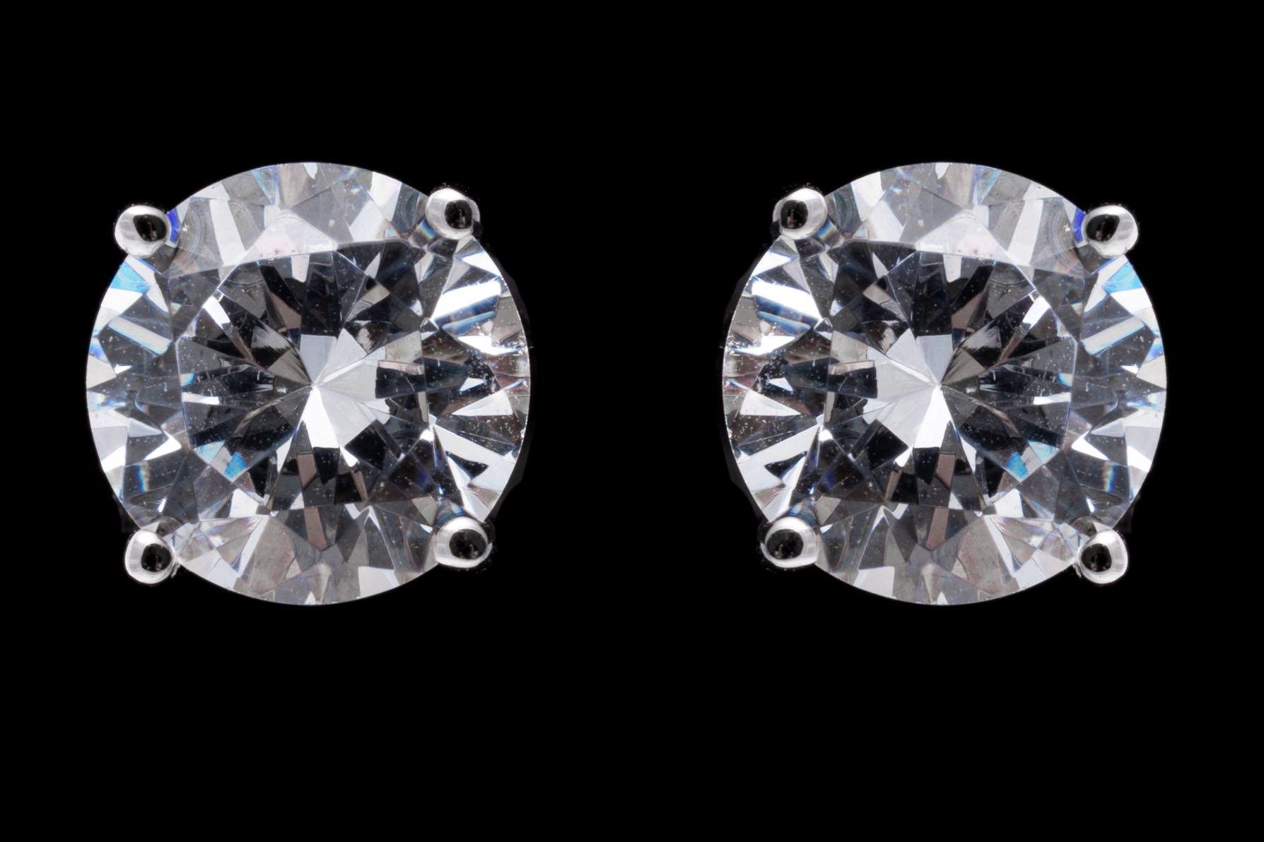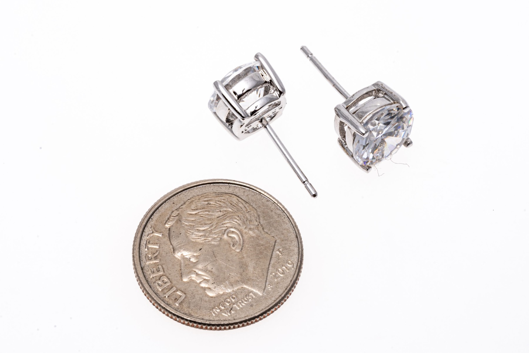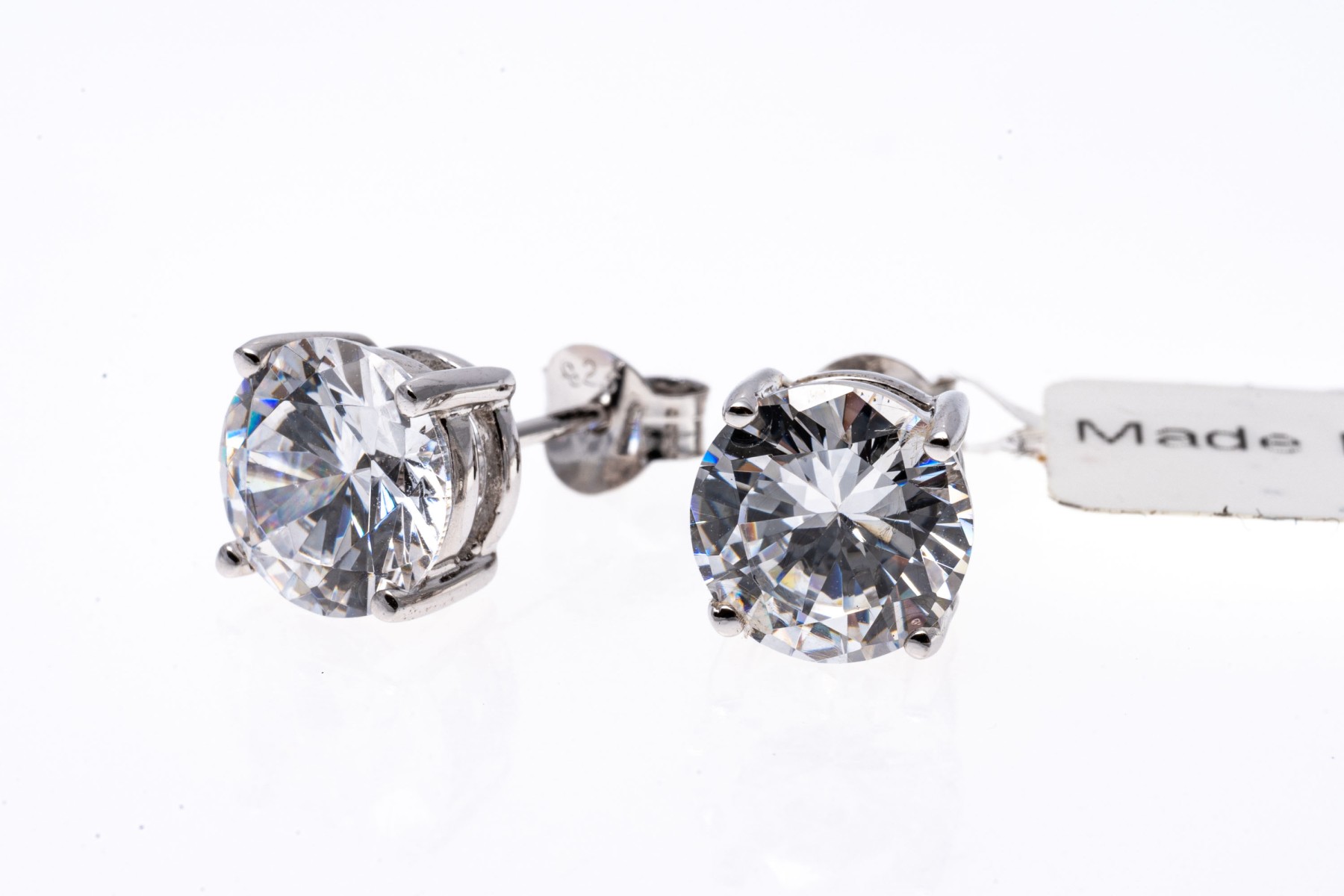 This dazzling pair of sterling silver stud earrings is set with round cut and bright white cubic zirconia. Post and clutch backings. bright white