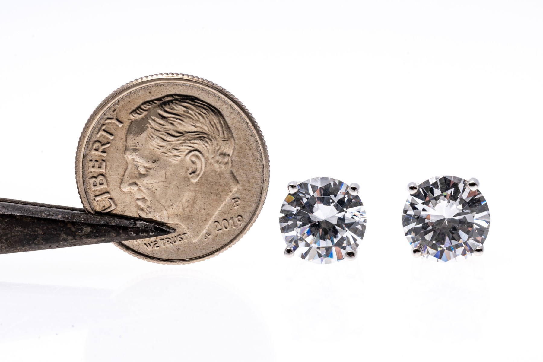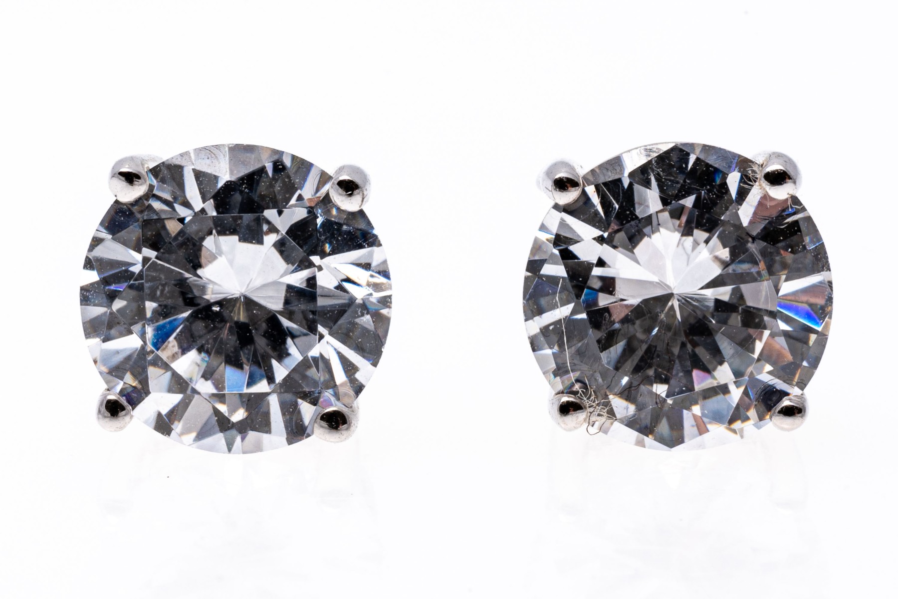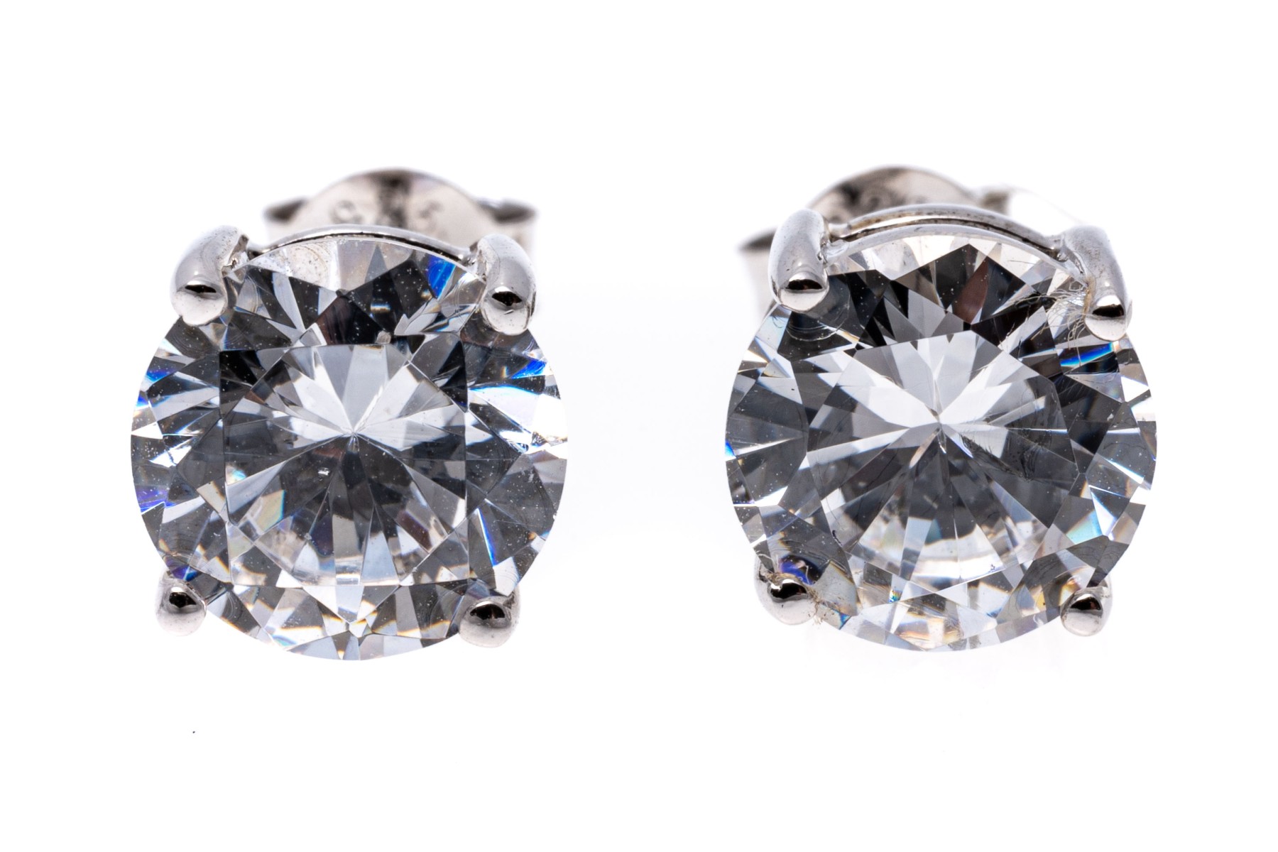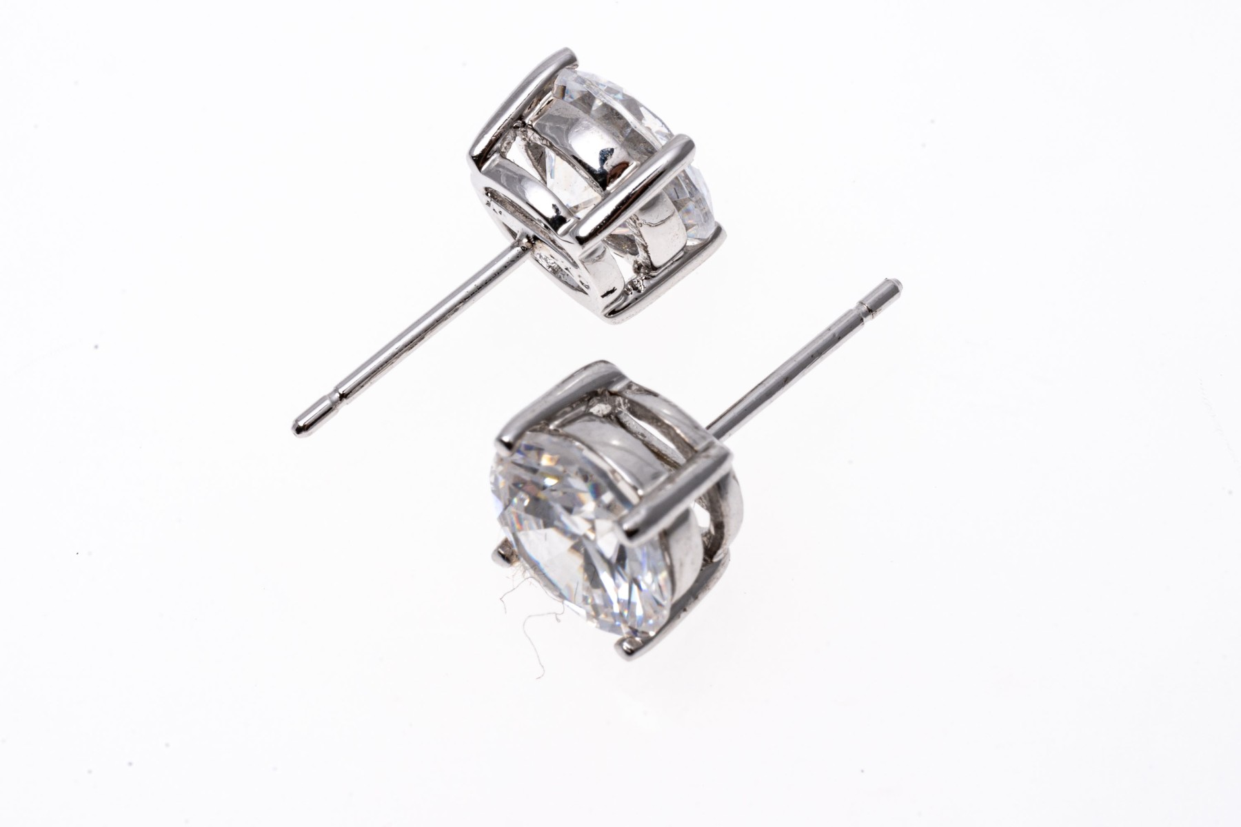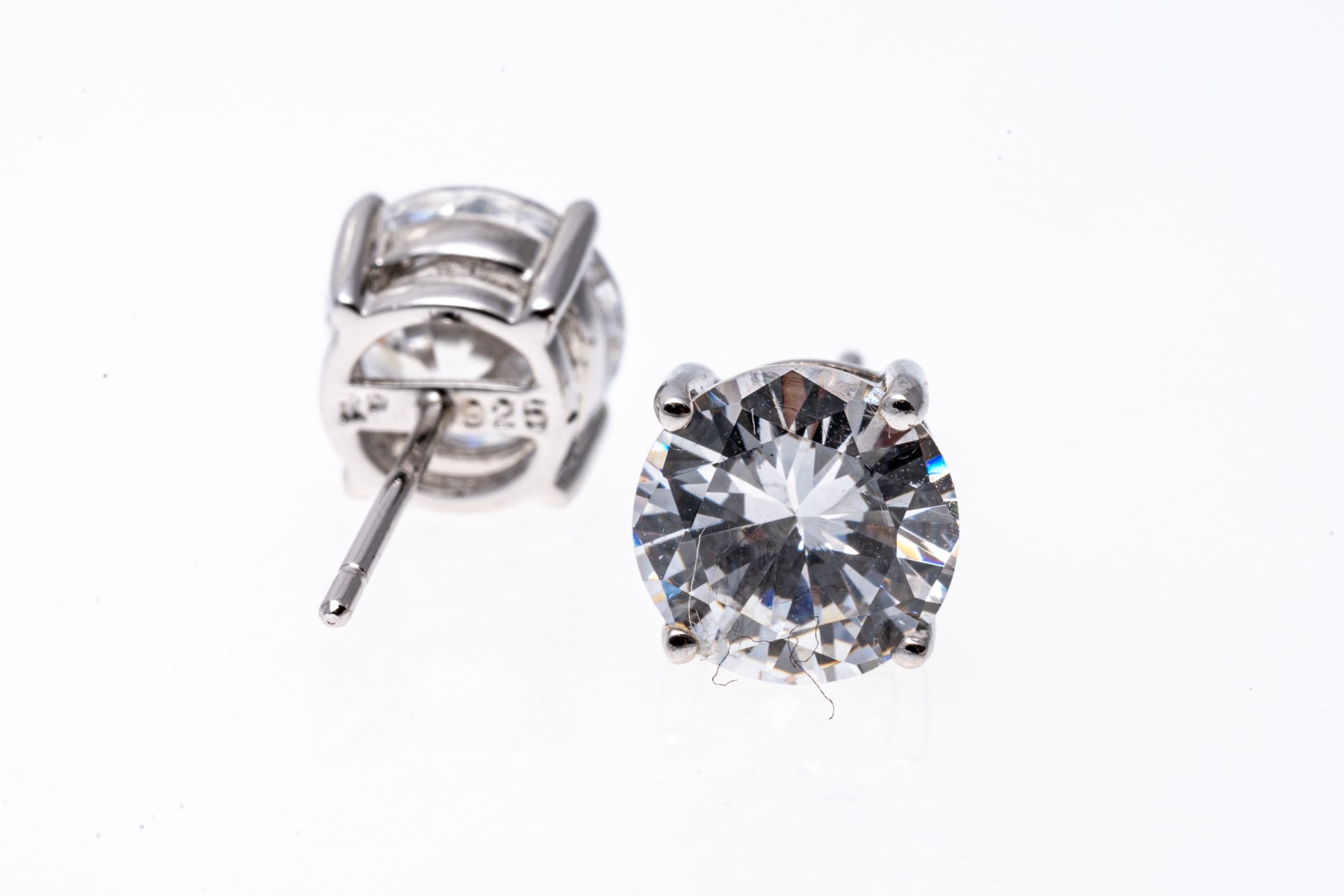 This dazzling pair of sterling silver stud earrings is set with round cut and bright white cubic zirconia. Post and clutch backings. bright white