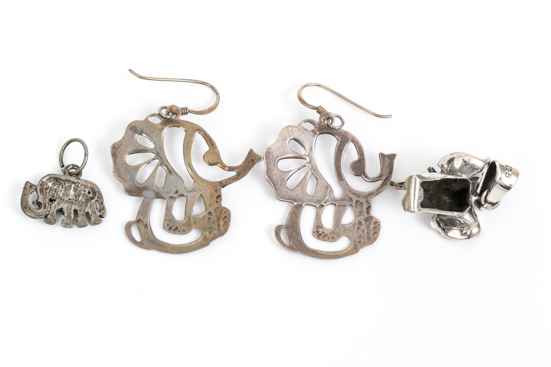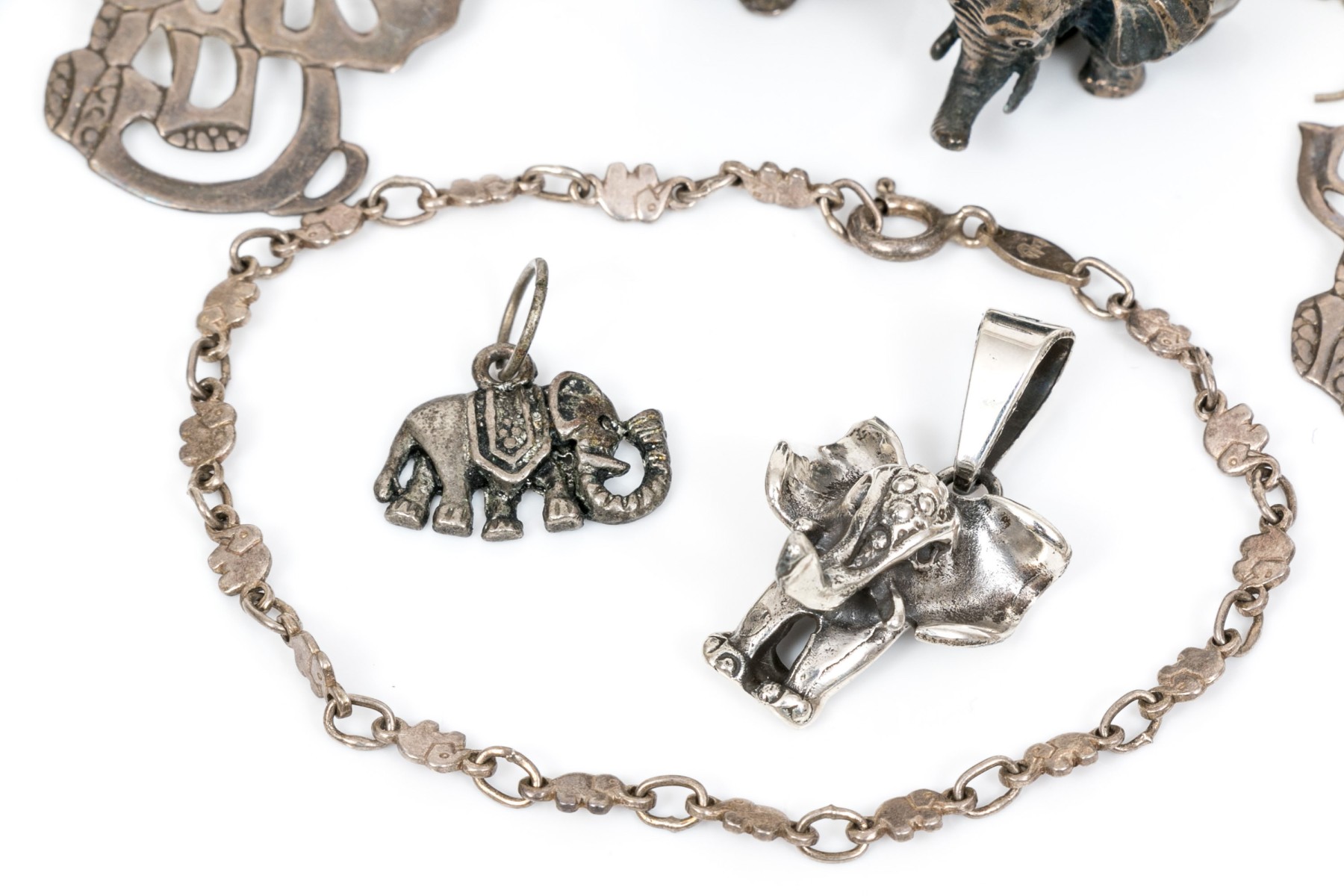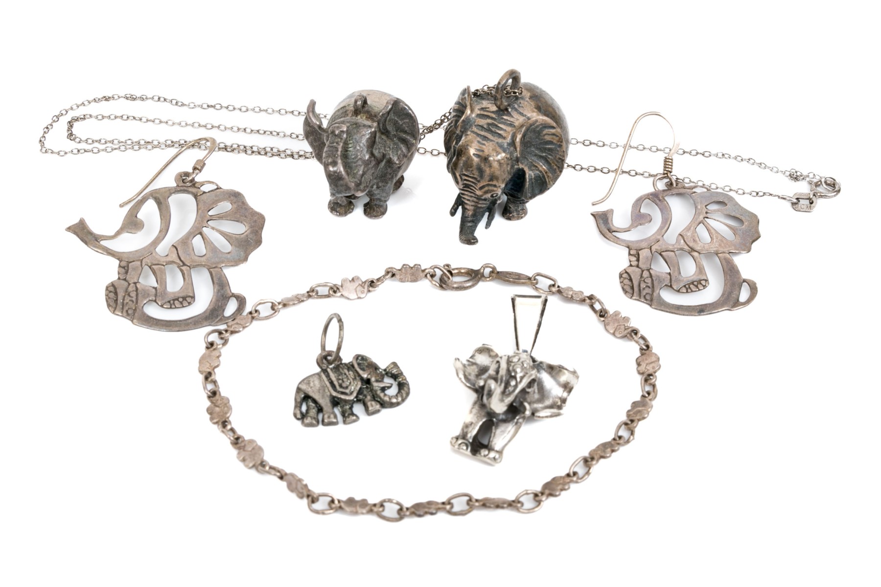 Sterling silver assorted lot of charming elephant motif jewelry pieces